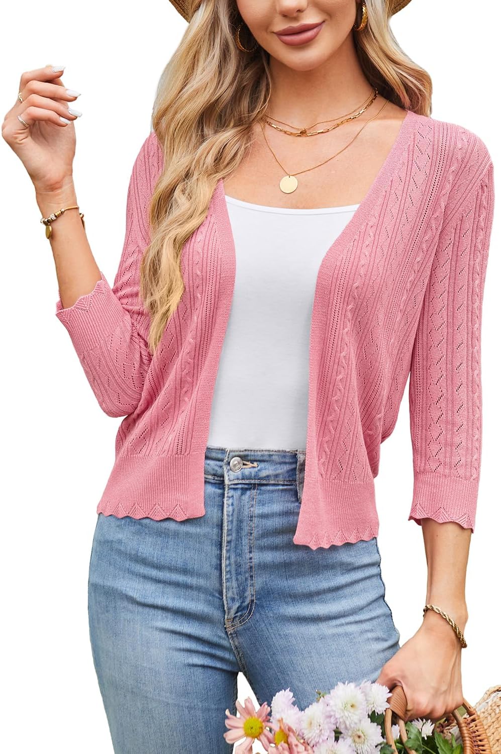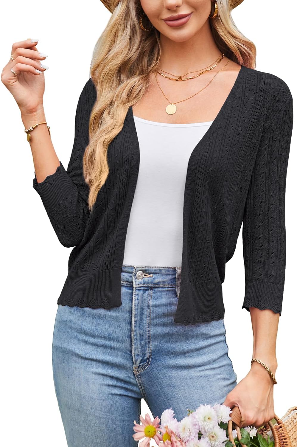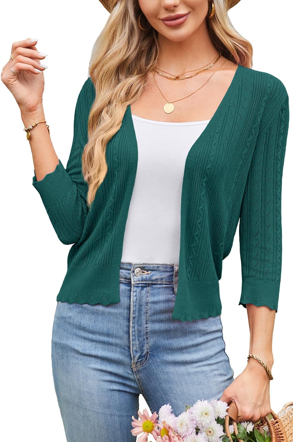 3/4 Sleeve Open Front Cropped Cardigan Sweater Elegant Shrugs For Women