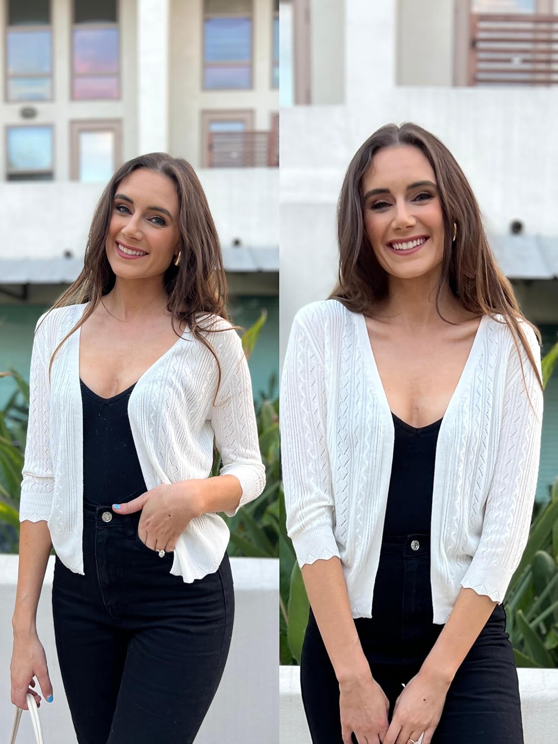 Women's 3/4 Sleeve Cropped Cardigan Sweater Elegant Casual Shrug