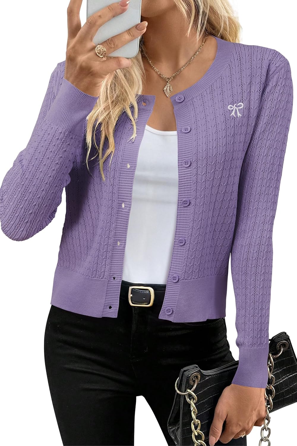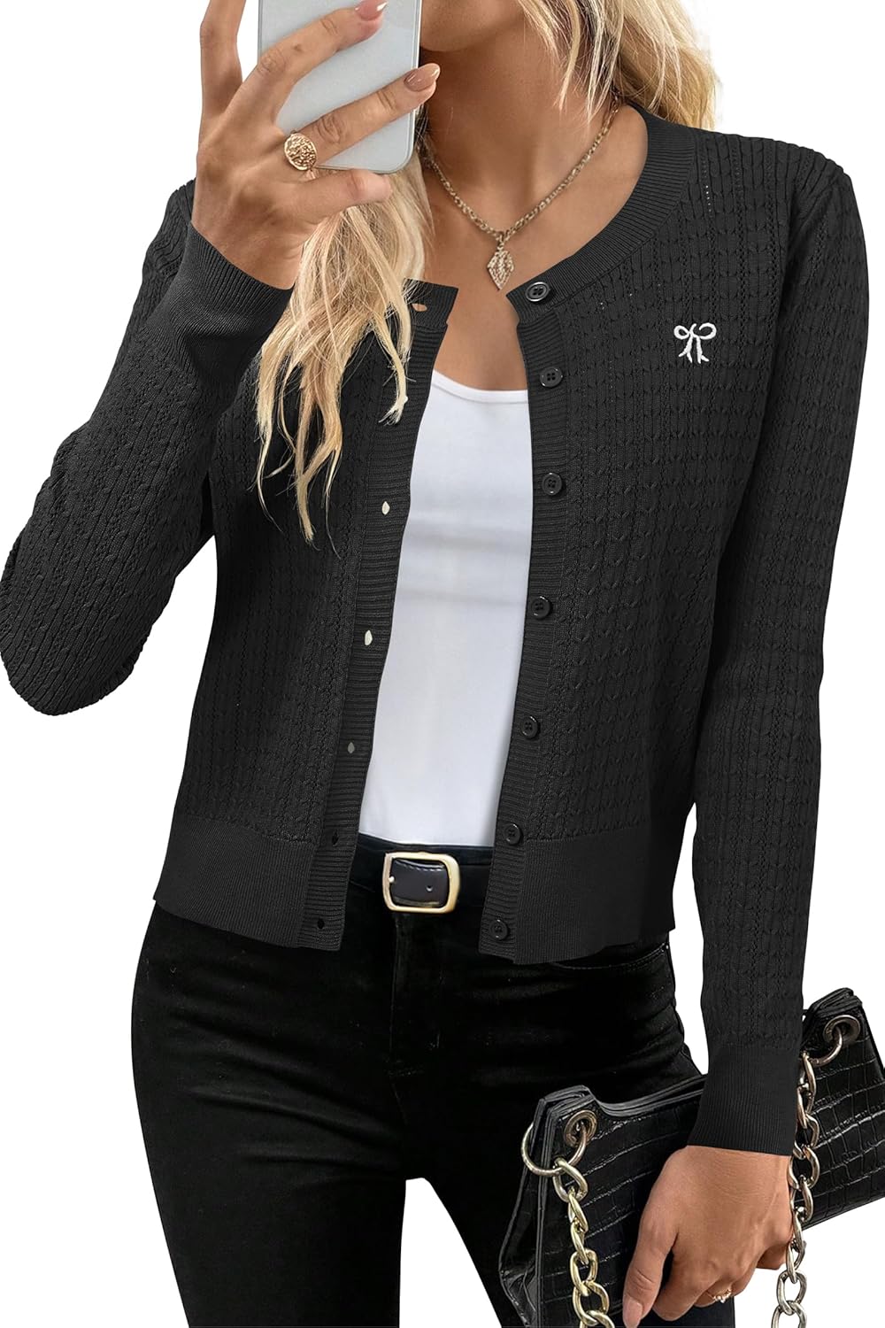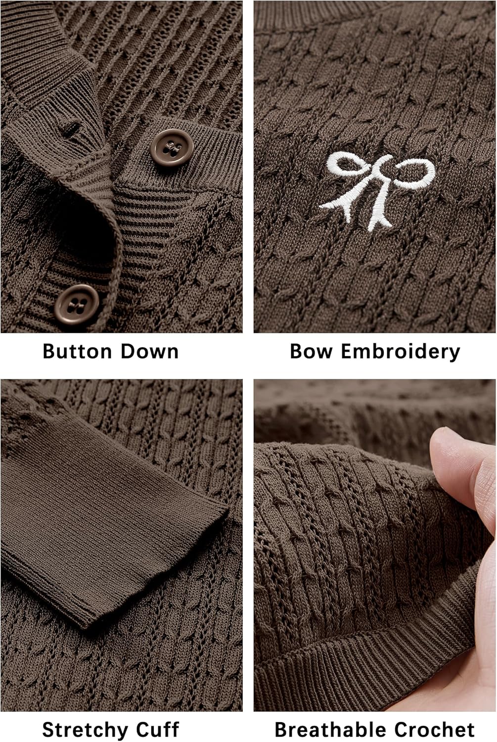 2025 New Design--Bow Embroidery Cropped Cardigan Sweater