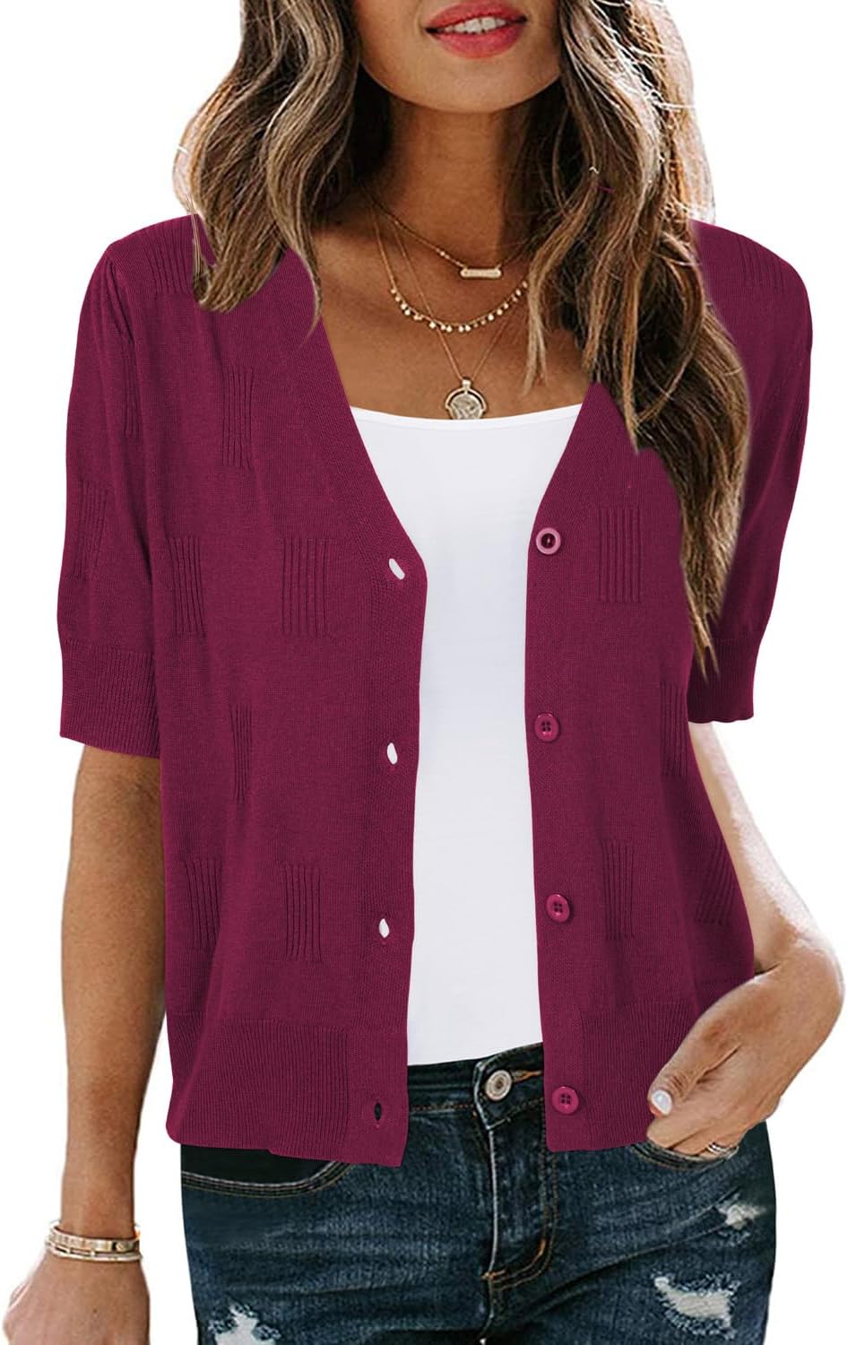 Arach&Cloz Womens Cardigans Summer Cropped Short Sleeve Tops Bolero Shrugs Red Sweater Cozy Clouds