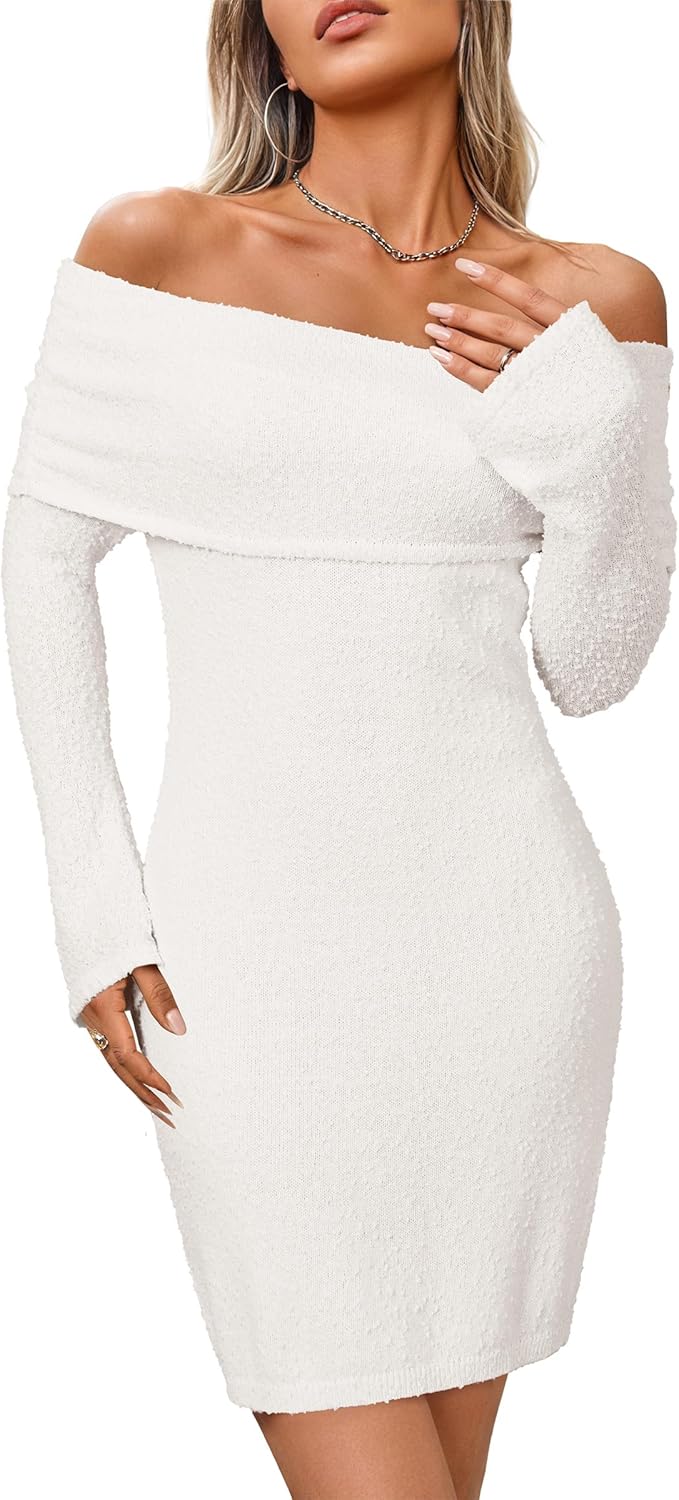 Arach&Cloz Womens Early Fall Sweater Bodycon Dress Cocktail Outfit Party Clothes