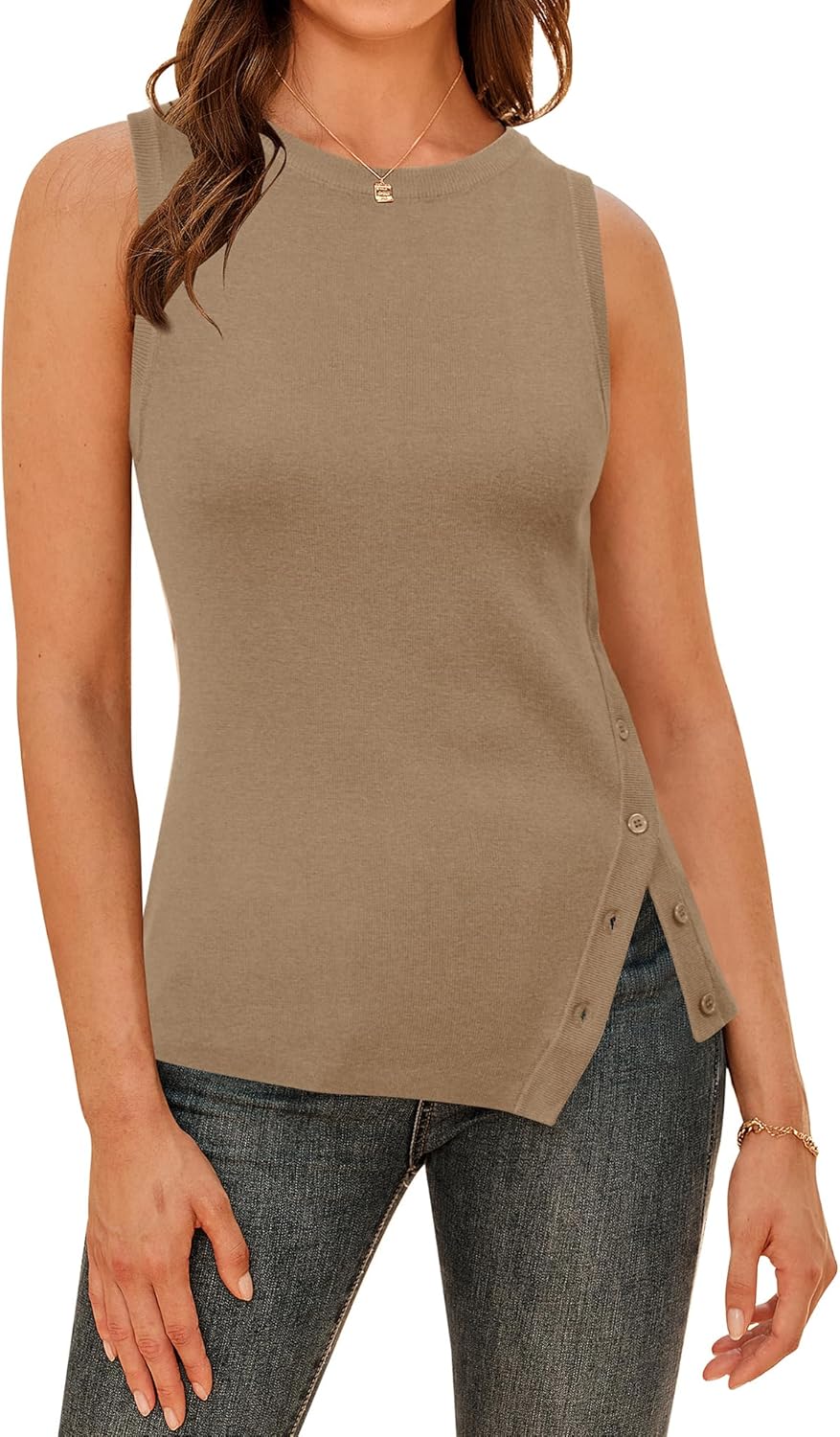 Arach&Cloz Women's Wool Blend Slit Sweater Tank