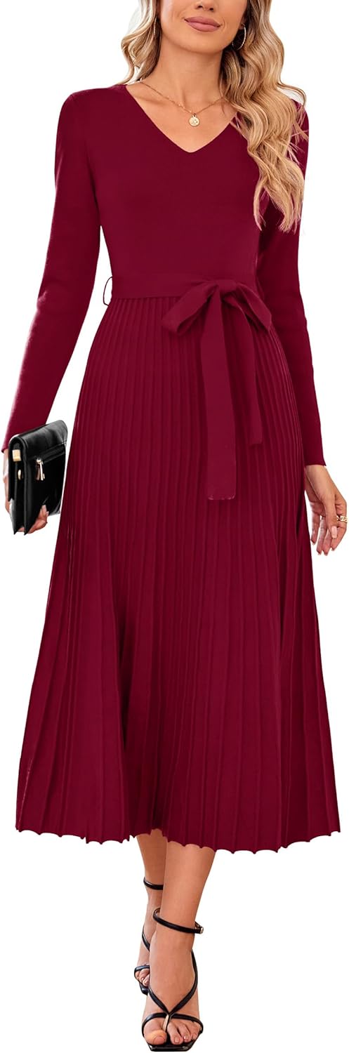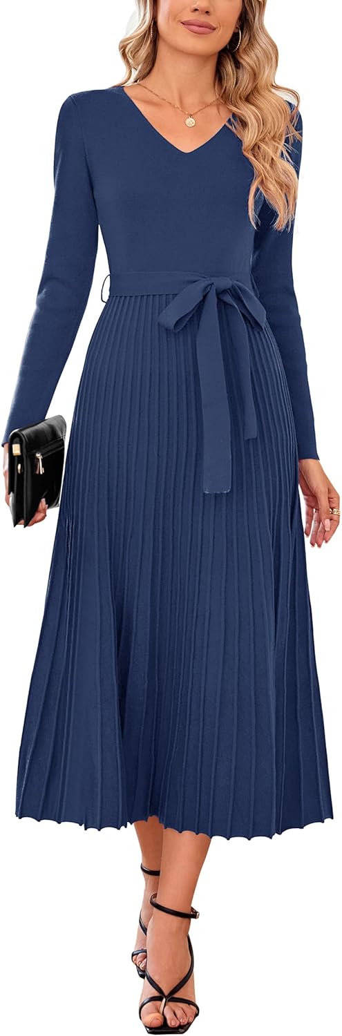 Arach&Cloz Women's Wool Blend Elegant Going Out Dress Cocktail Party Midi Dress