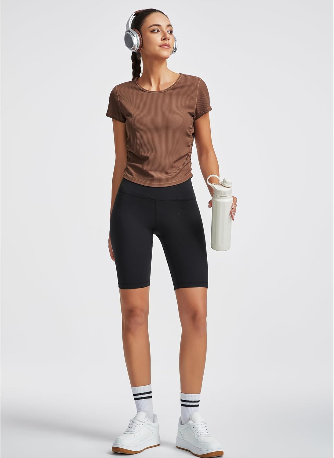 KAKOLA Fitted Ribbed Short Sleeve Crop Tops for Women