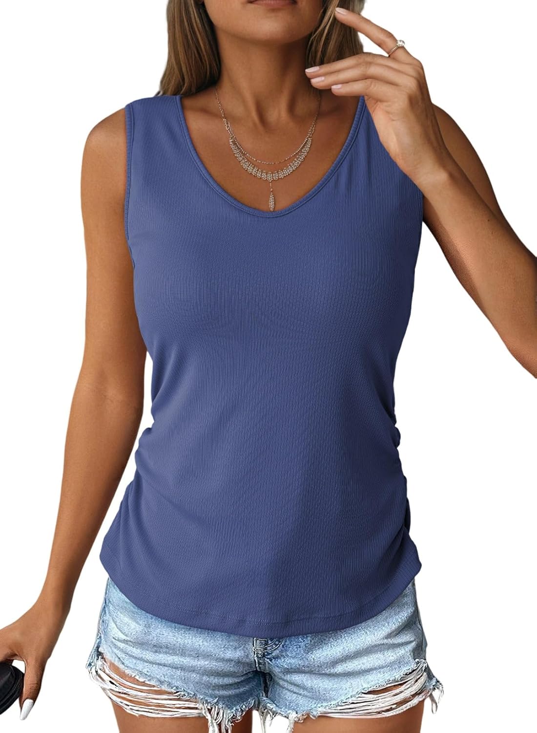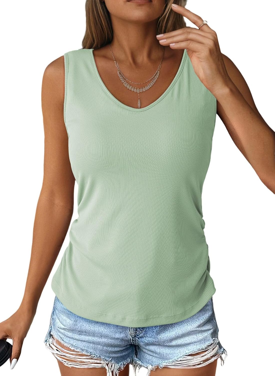 Dokotoo Tank Top with Built in Bra for Women Summer Ruched Sleeveless Shirts