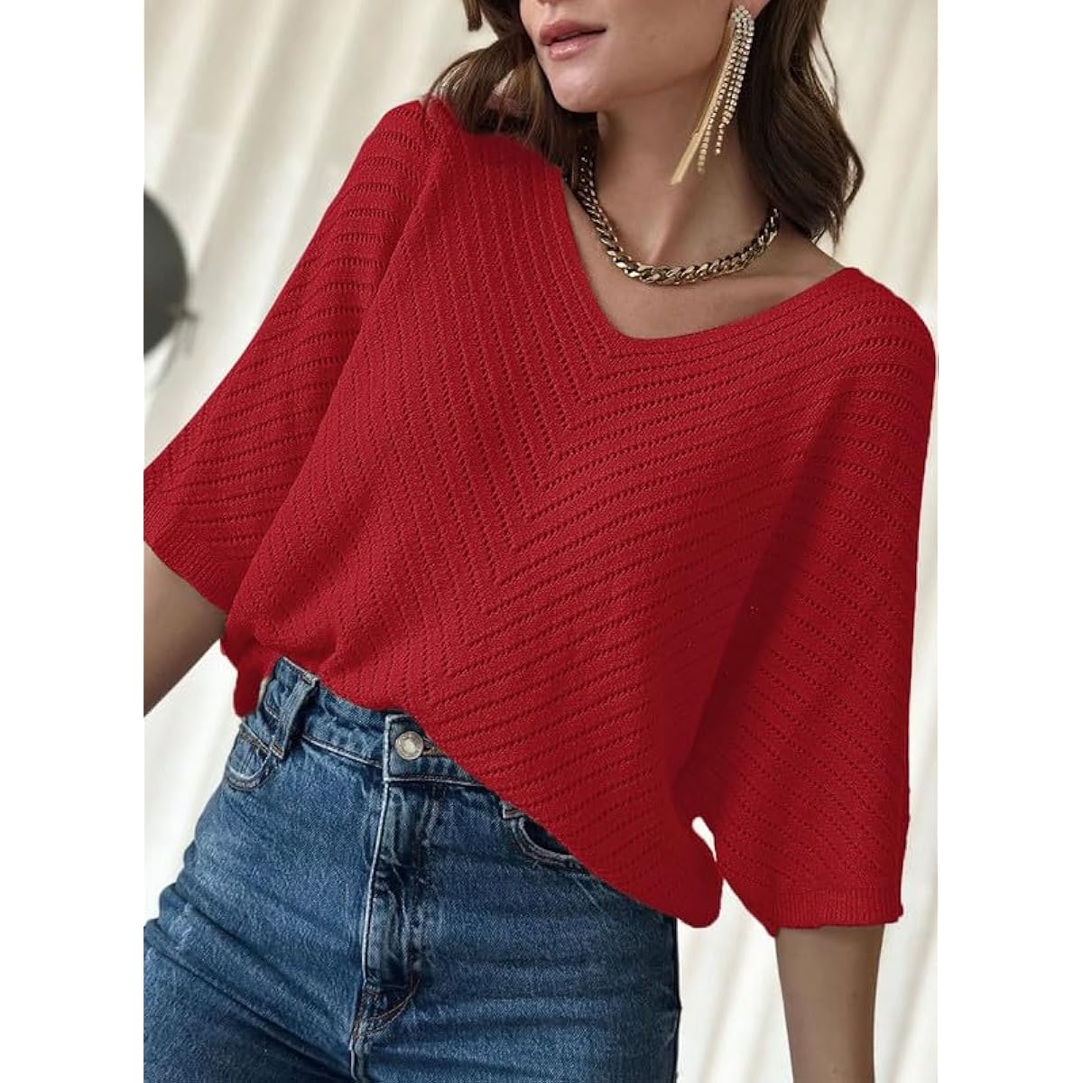Dokotoo Summer Spring Casual 3/4 Short Sleeve Sweaters for Women