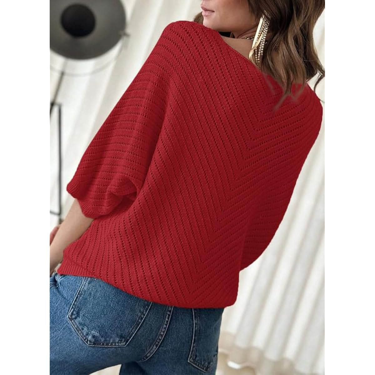 Dokotoo Women's 2025 V Neck 3/4 Sleeve Loose Pullover Knit Sweaters Tops