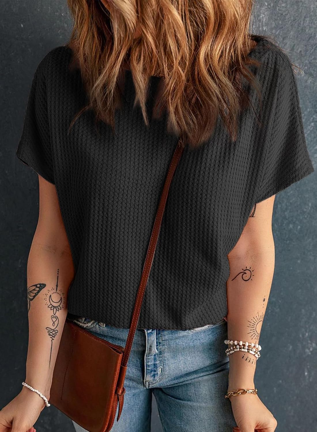 Dokotoo Women's Causual Boat Neck Short Sleeve Waffle Knit Shirts