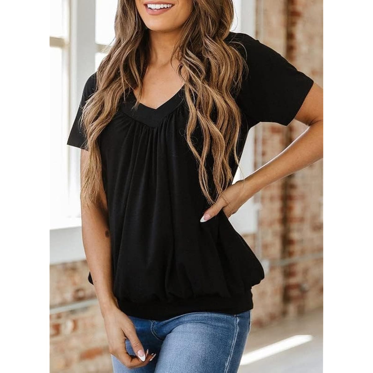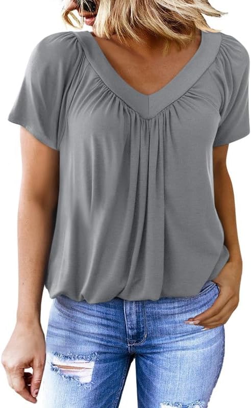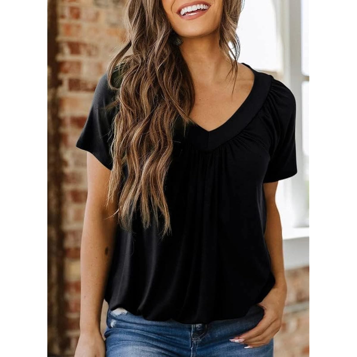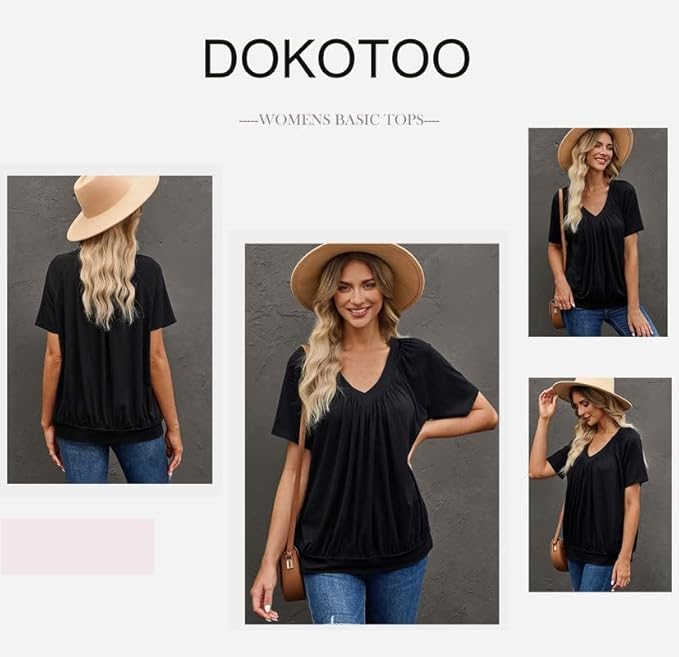 Dokotoo Womens Summer Short Sleeve Shirts Casual V Neck Loose Fit TShirts
