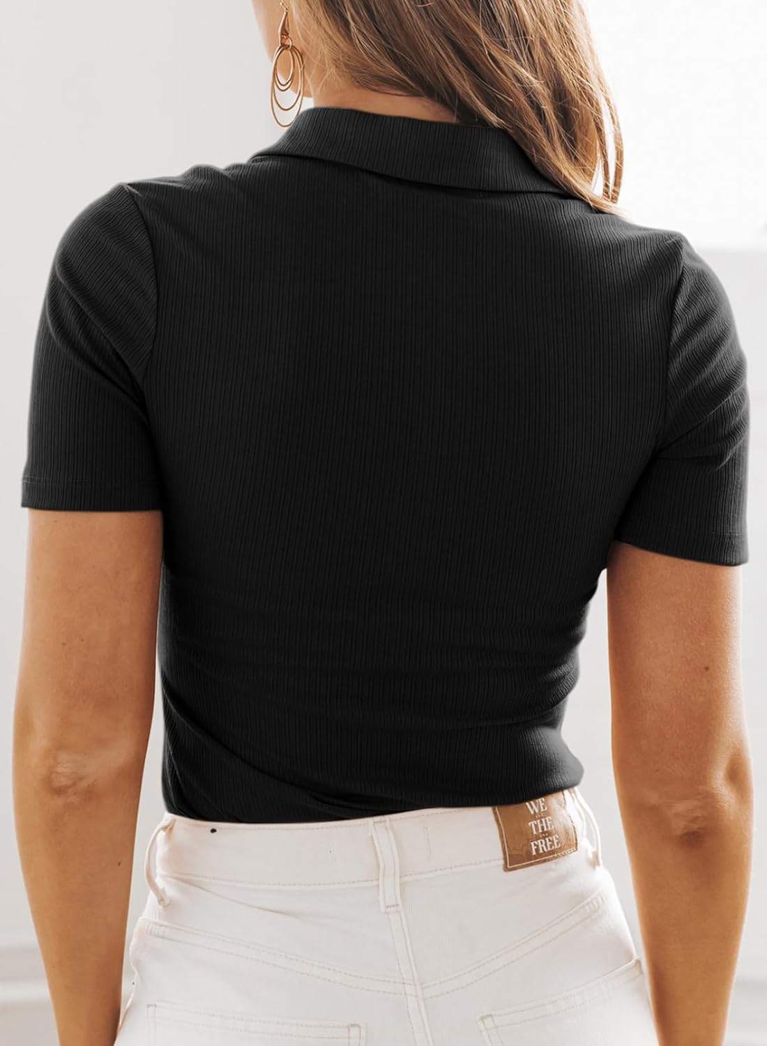 • Dokotoo Womens Polo Shirts Short Sleeve Collared V Neck T Shirts Summer Blouses Business Casual Tops