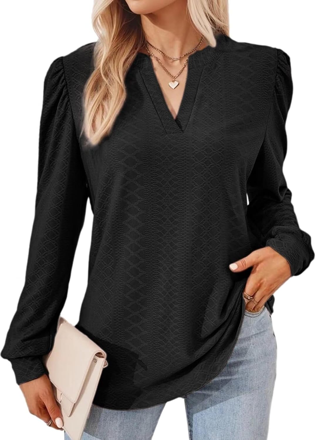 Dokotoo Womens Spring Fashion 2025 Long Sleeve Tops Dressy Casual Blouses Trendy V Neck Puff Sleeve Shirts Business Outfits