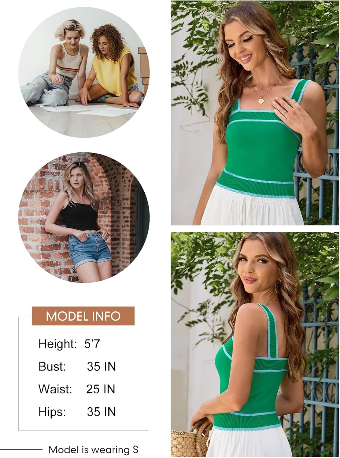 �� Unique Square neckline design, fitting and cropped style shows your chic and sexy in the crowds, this knit tank tops are never out of date.