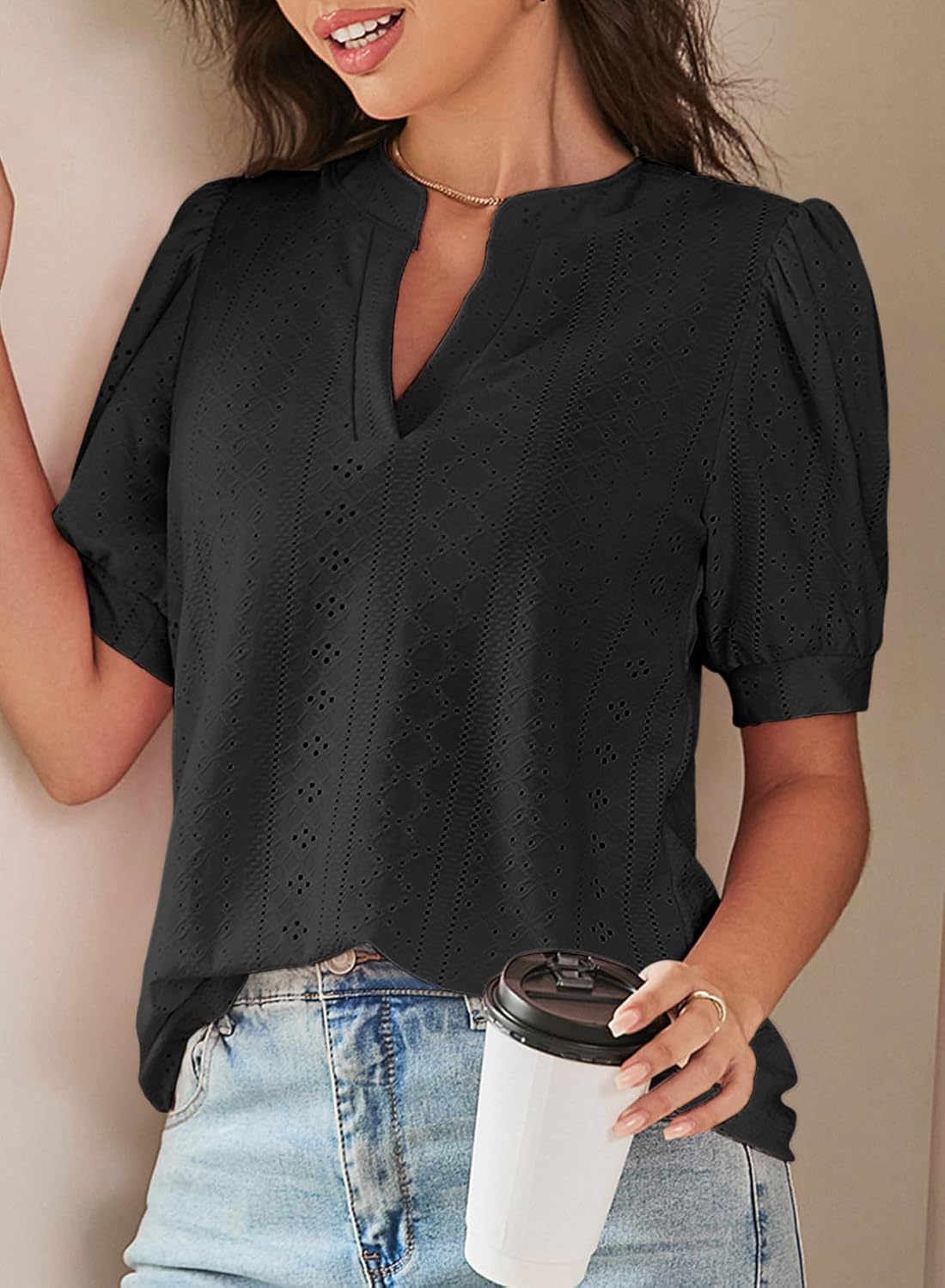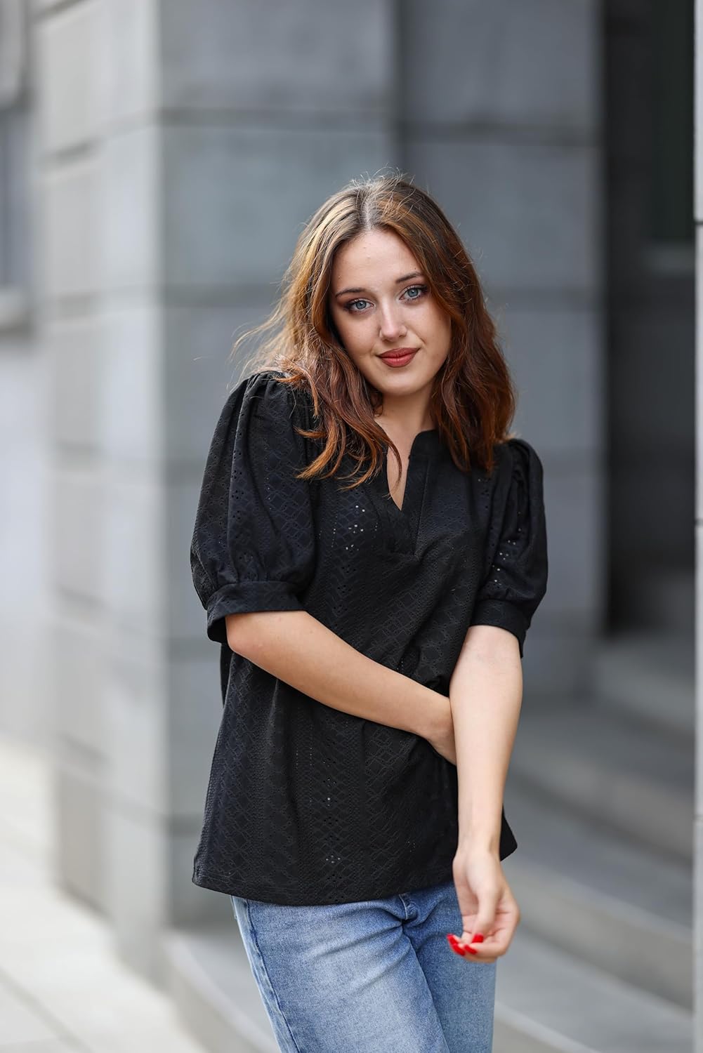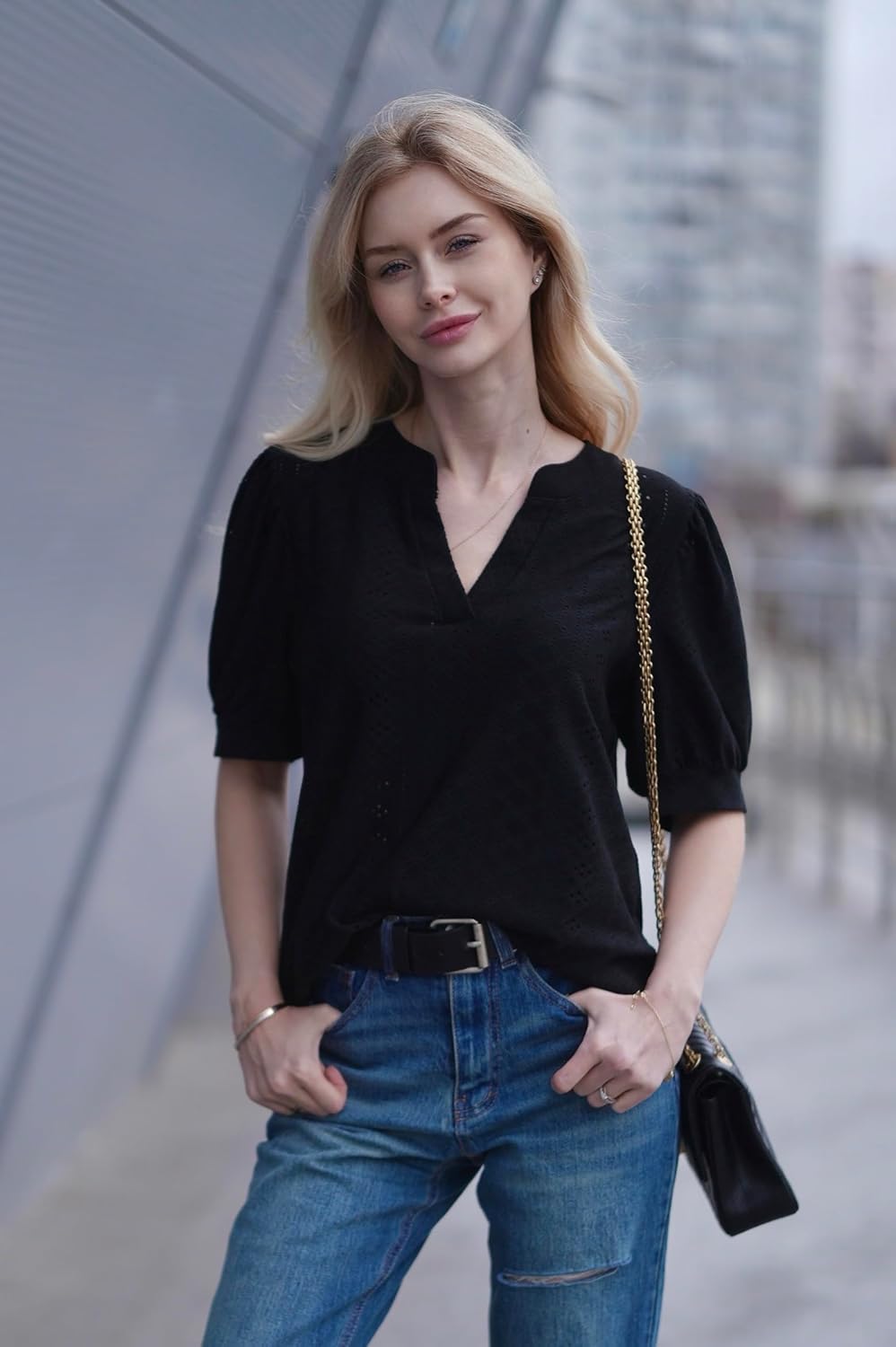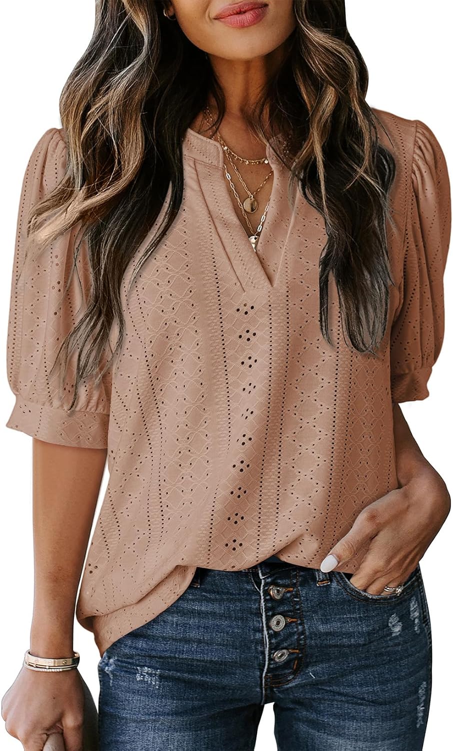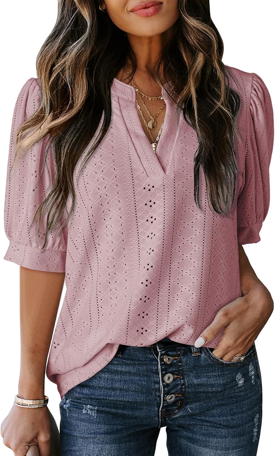 Dokotoo Summer Short Sleeve Tops for Women Trendy V Neck Blouses