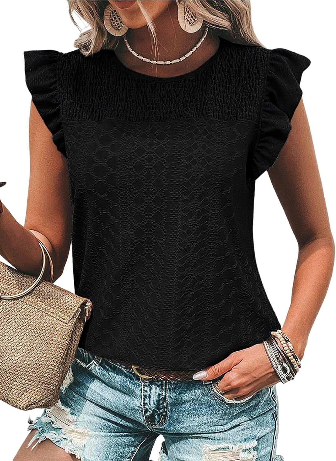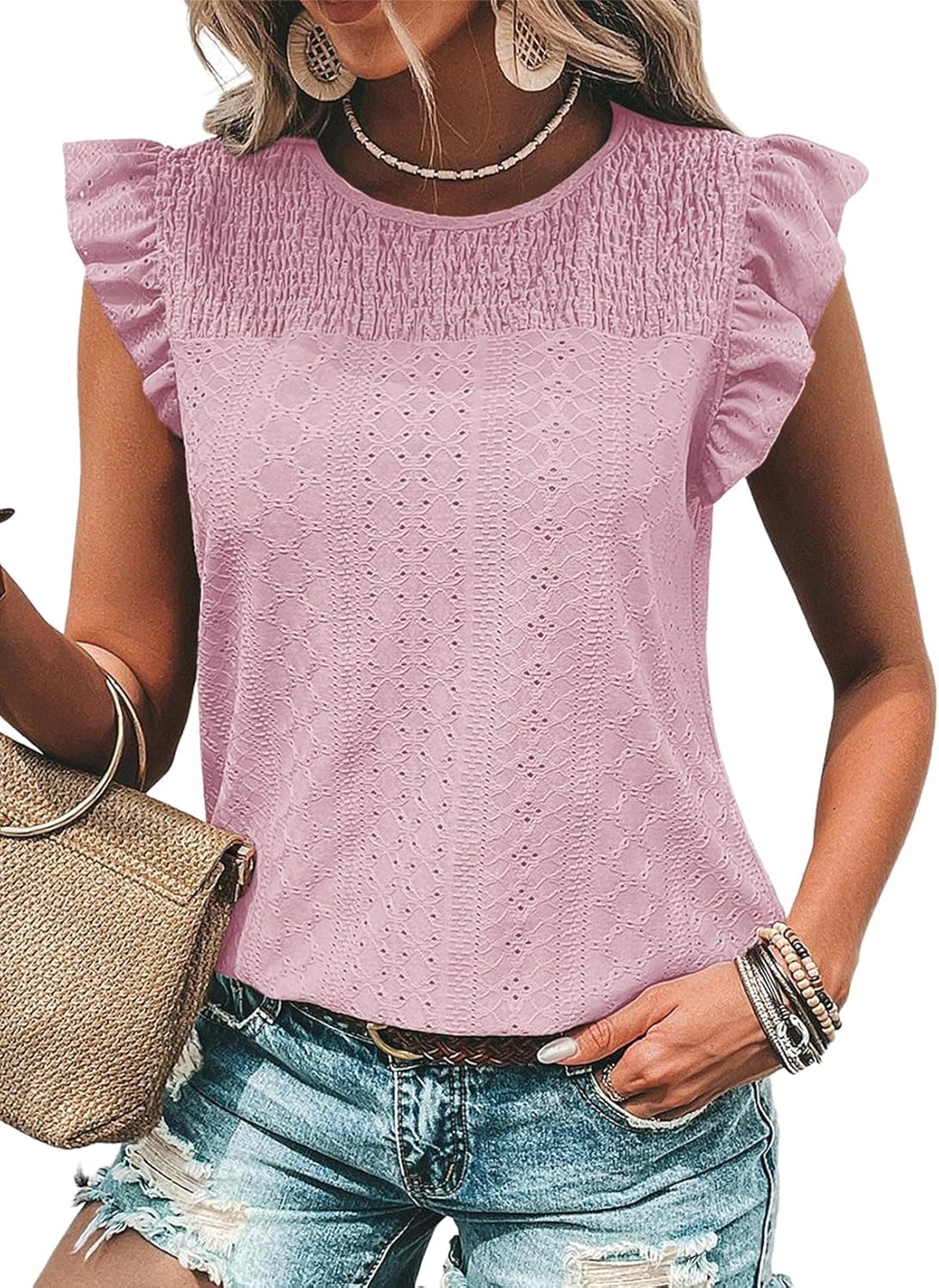 Ruffle Short Sleeve Crewneck Cute Summer Tops for Women