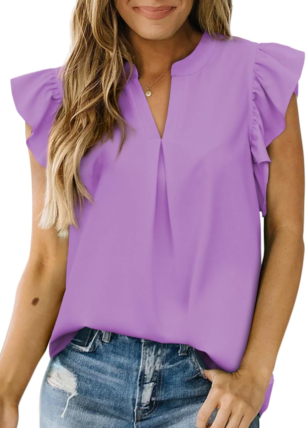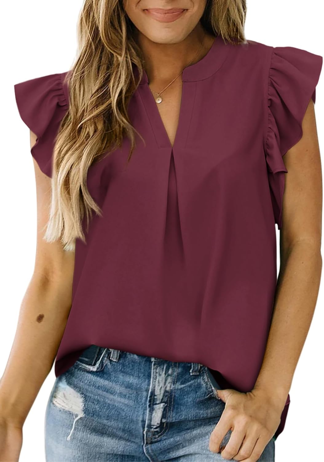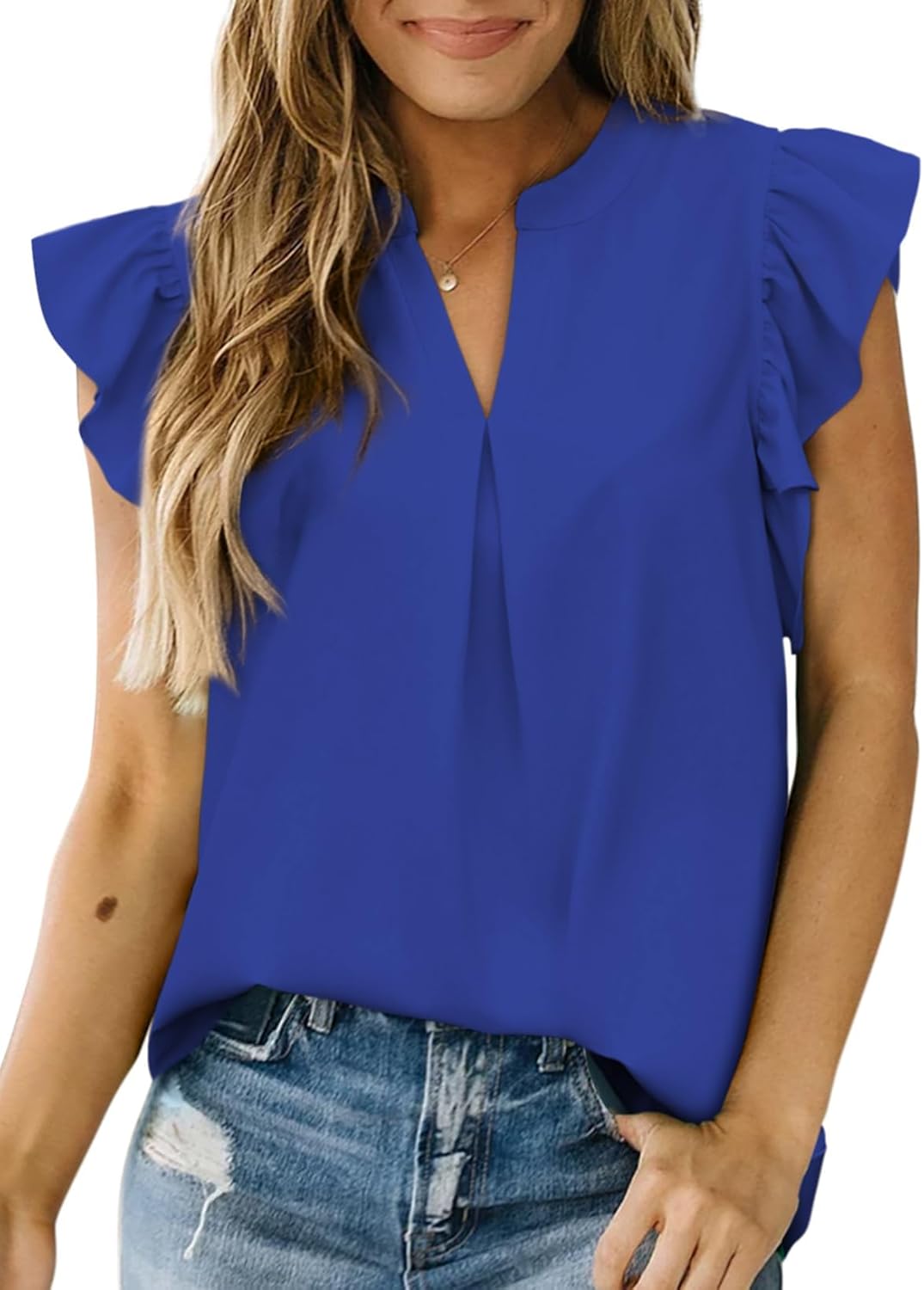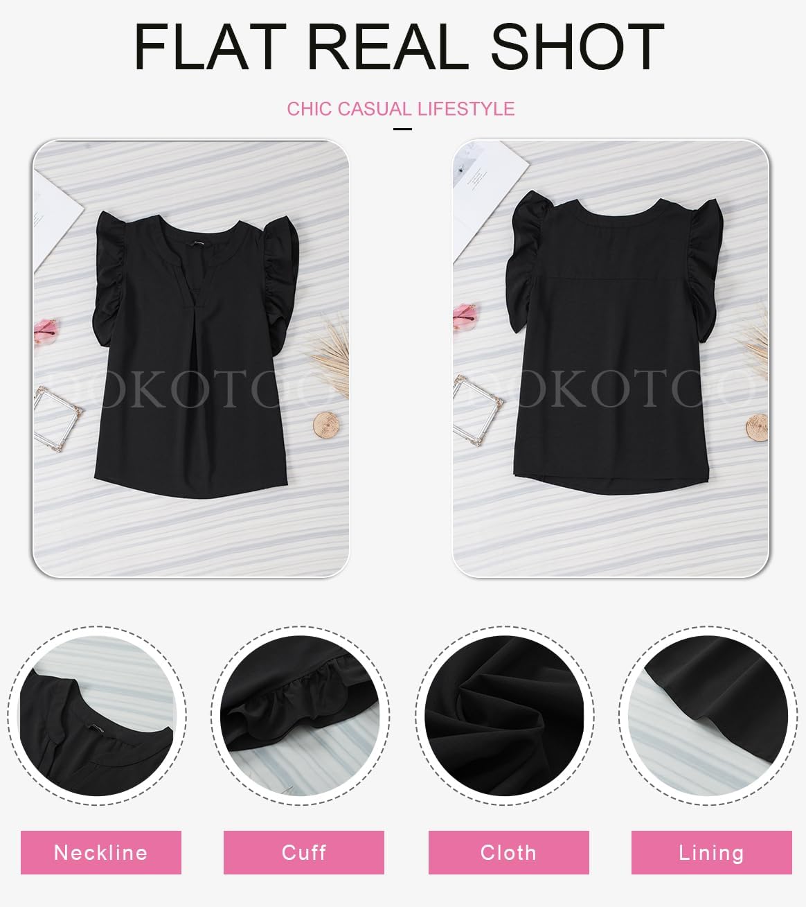 • Dokotoo Womens Summer Tops Dressy Casual V Neck Ruffle Short Sleeve Solid Blouses Tops