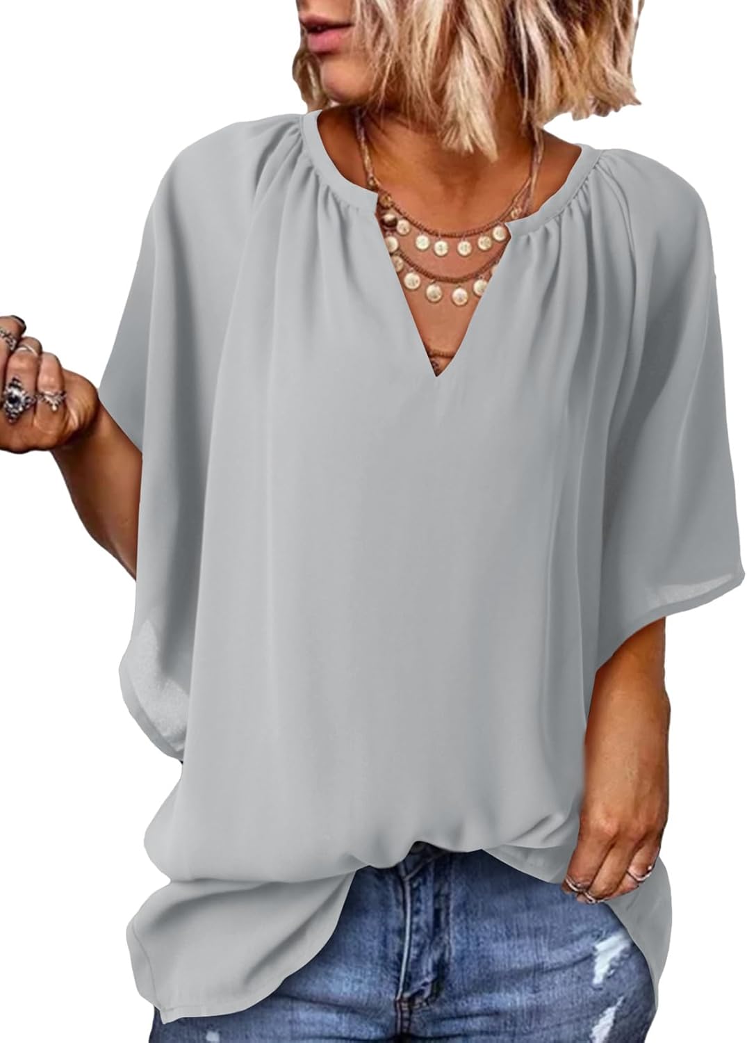 • Dokotoo Womens Summer Tops V Neck Short Sleeve Shirts Women Blouses Business Casual Outfits