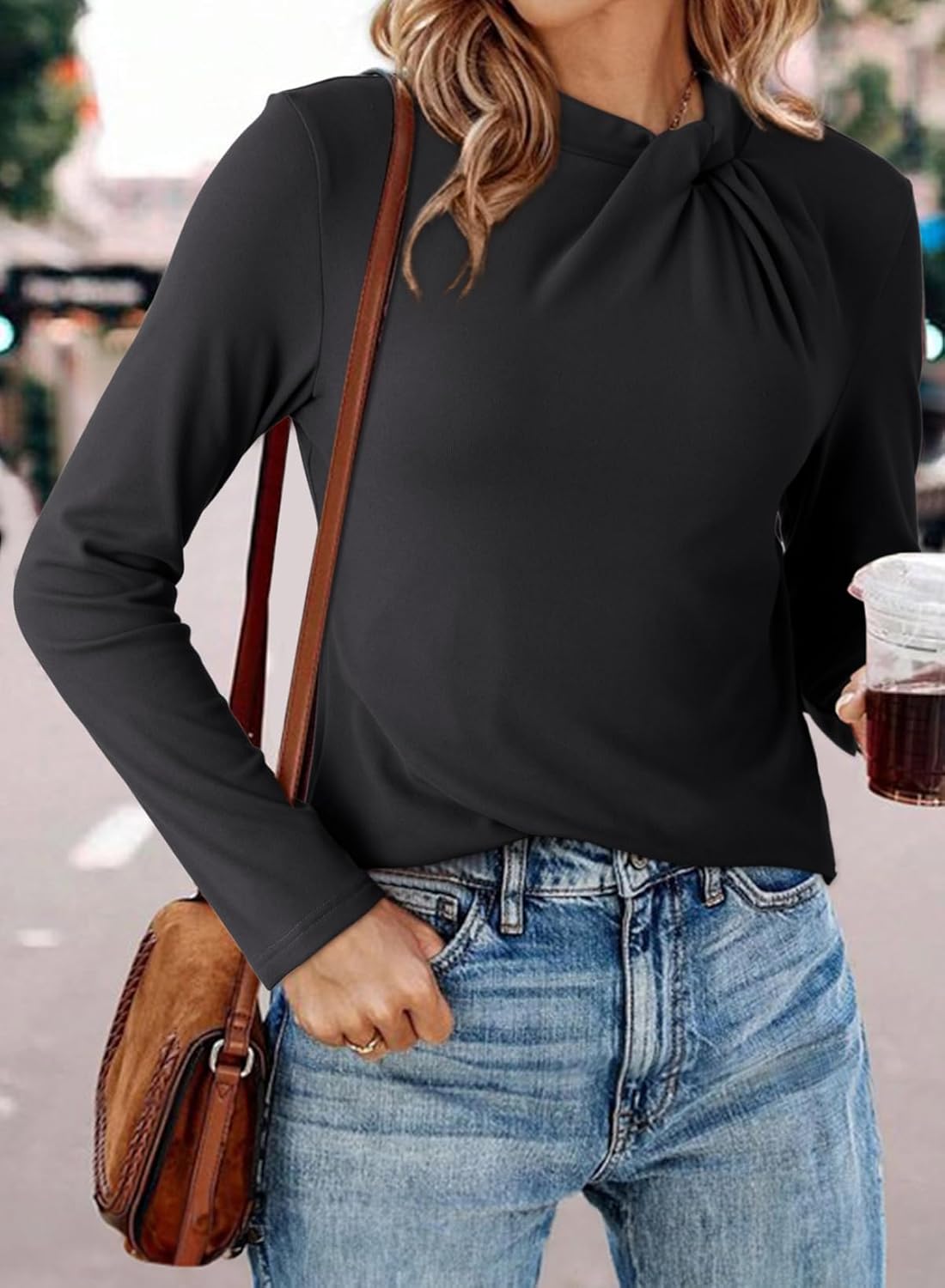 Dokotoo Womens Tops Business Casual Long Sleeve Shirts Mock Neck Slim Fit Blouse