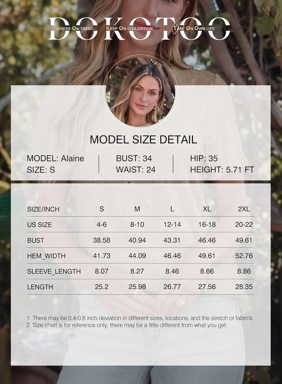 • Dokotoo Women's Tops Casual Scoop Neck Short Sleeve Eyelet Embroidered Hollow Out Blouses Shirts