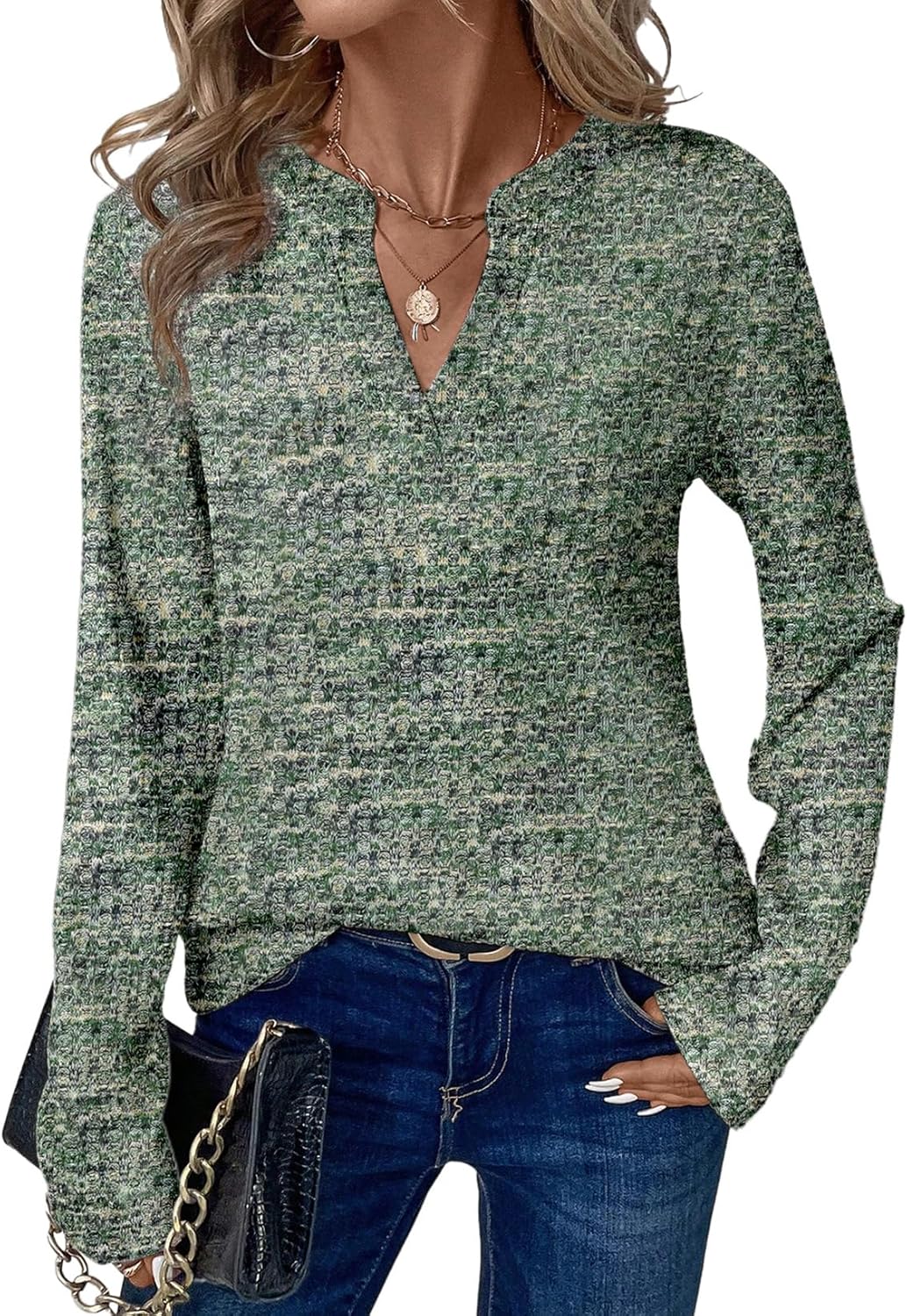 • Dokotoo Womens Waffle Knit Tops V Neck Long Sleeve Shirts Henley Dresy Casual Blouses Fall Outfits 2025