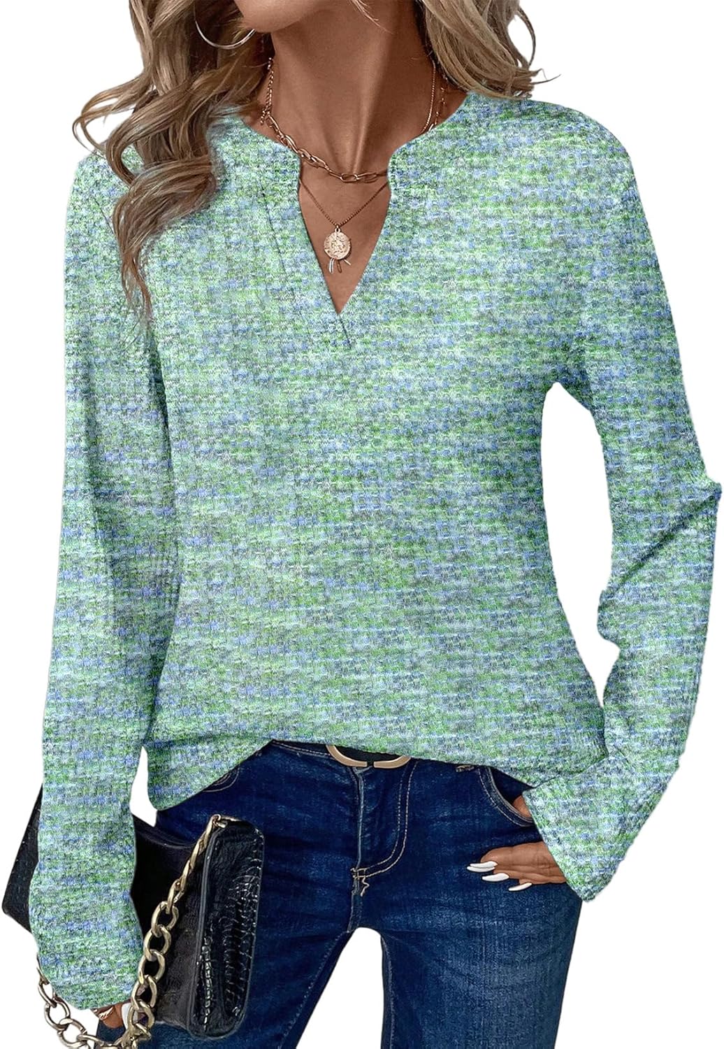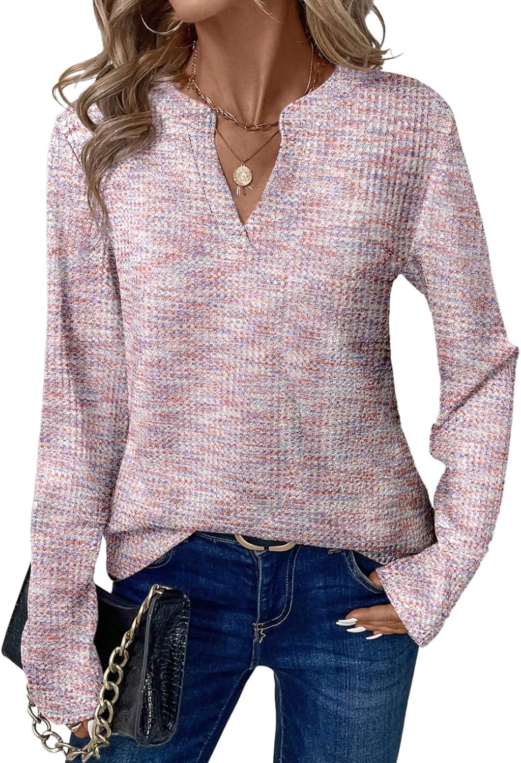Dokotoo Womens Waffle Knit Tops V Neck Long Sleeve Shirts Dresy Casual Blouses Fall Outfits 2025