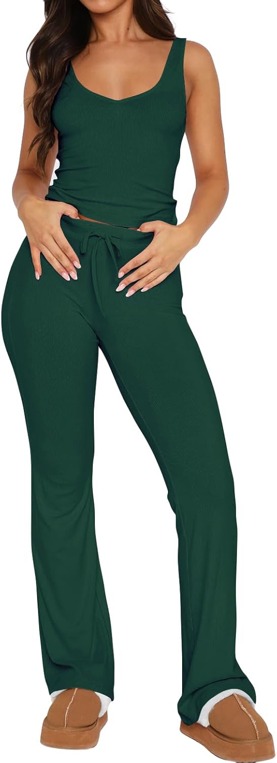 Sexy V-Neck Lounge Set 2-piece outfit with cropped tank & ribbed knit comfy!