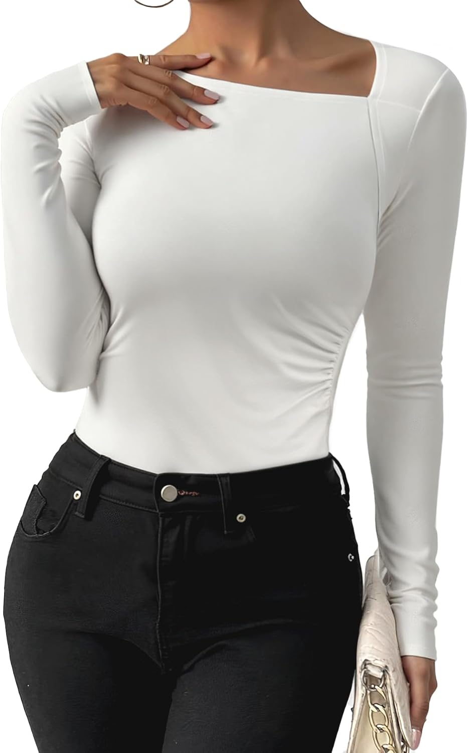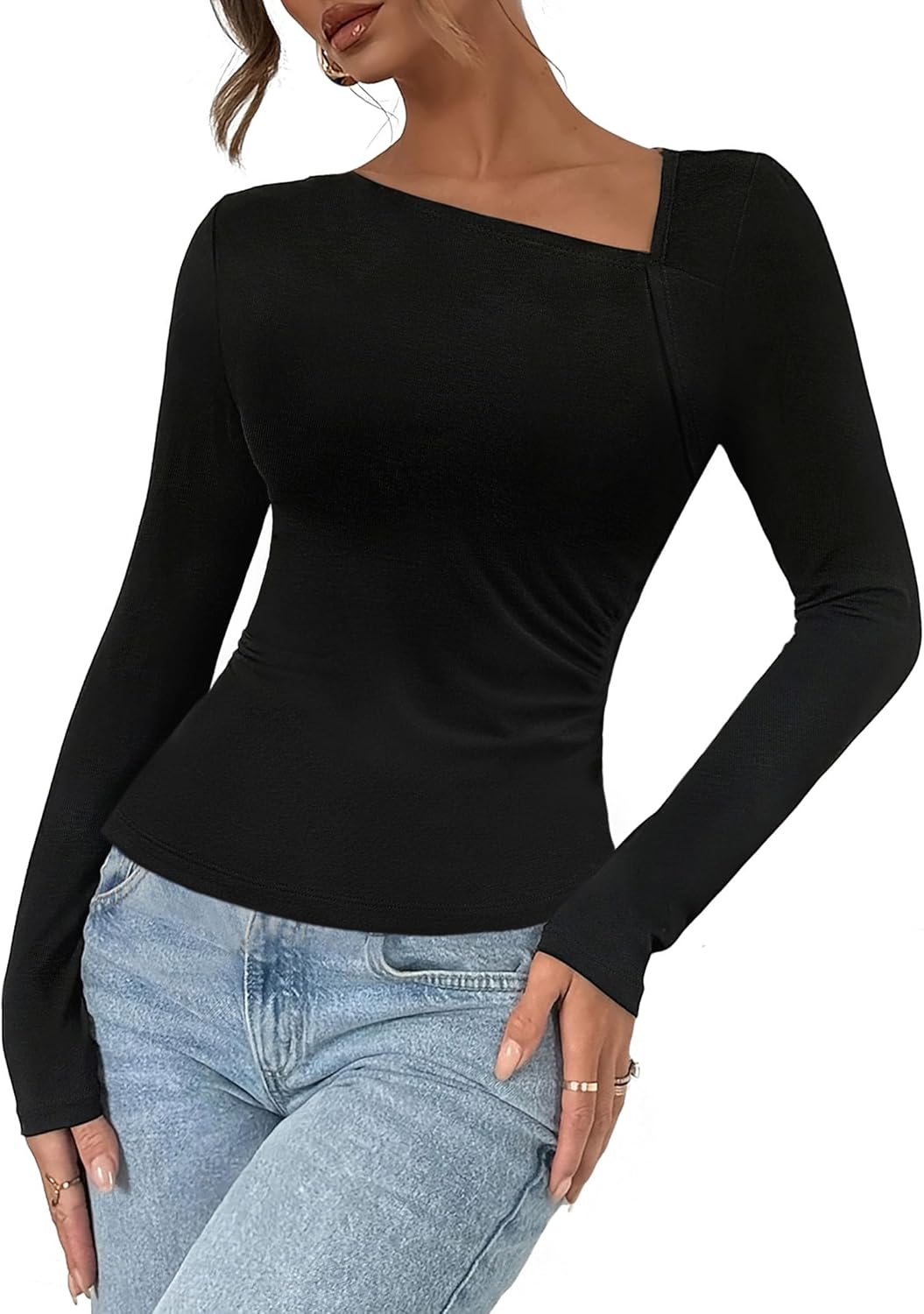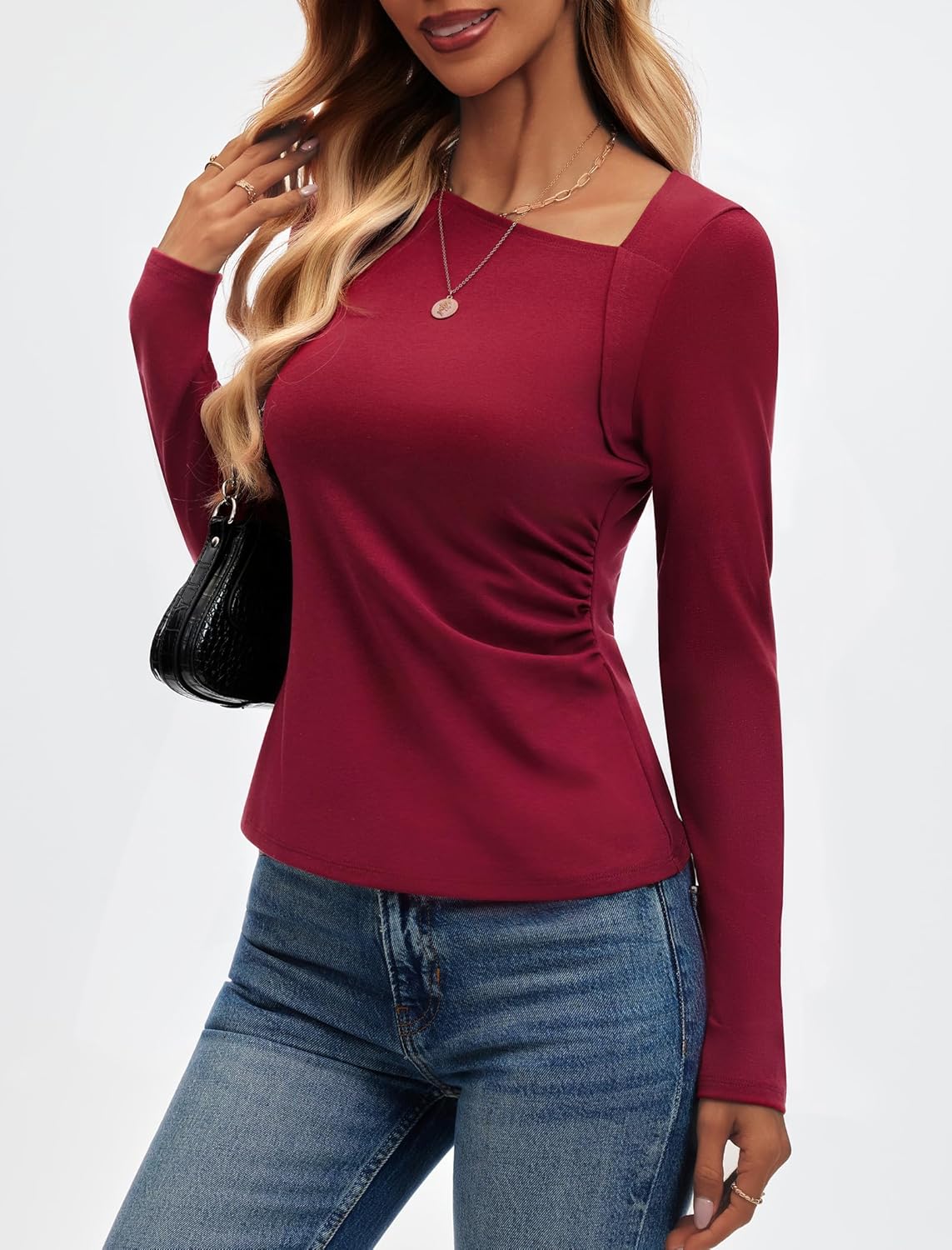 Women's Asymmetrical Neckline Long Sleeve Slimming Shirt for Work & Weekend