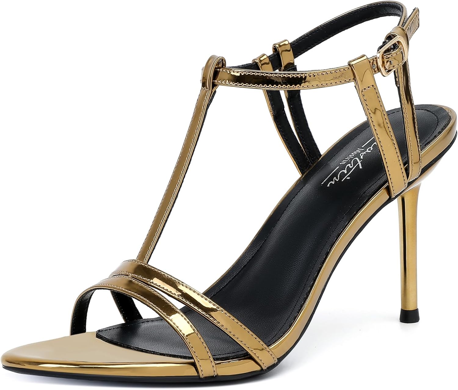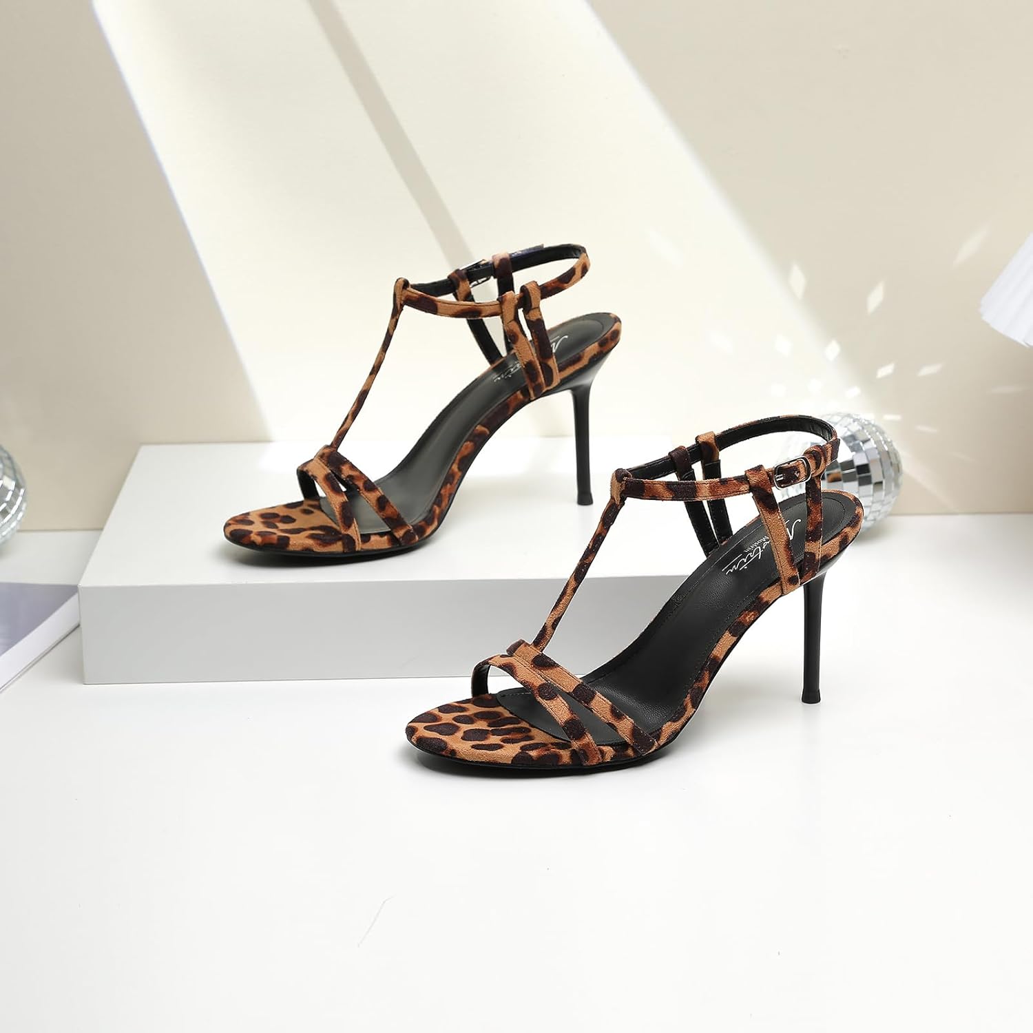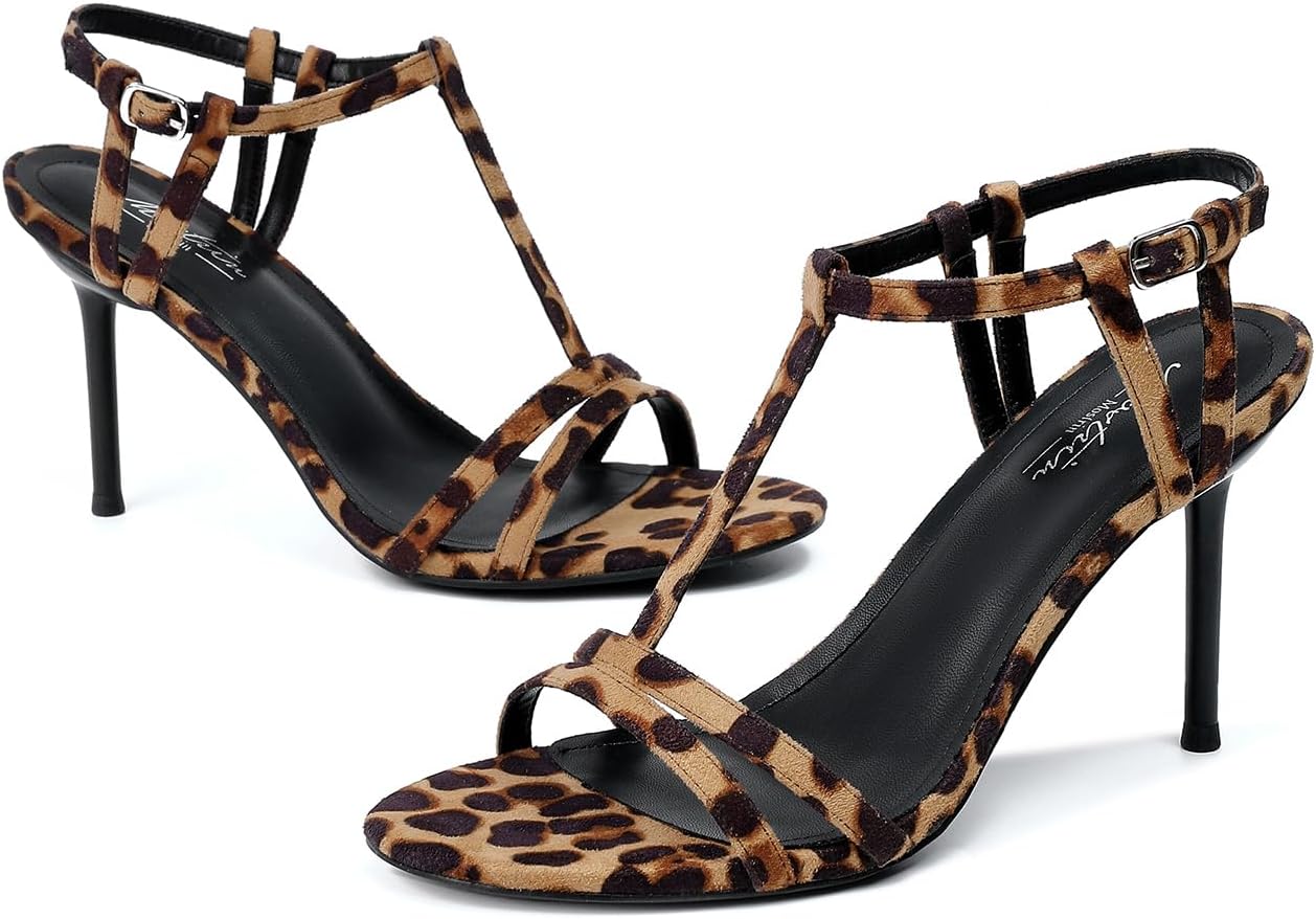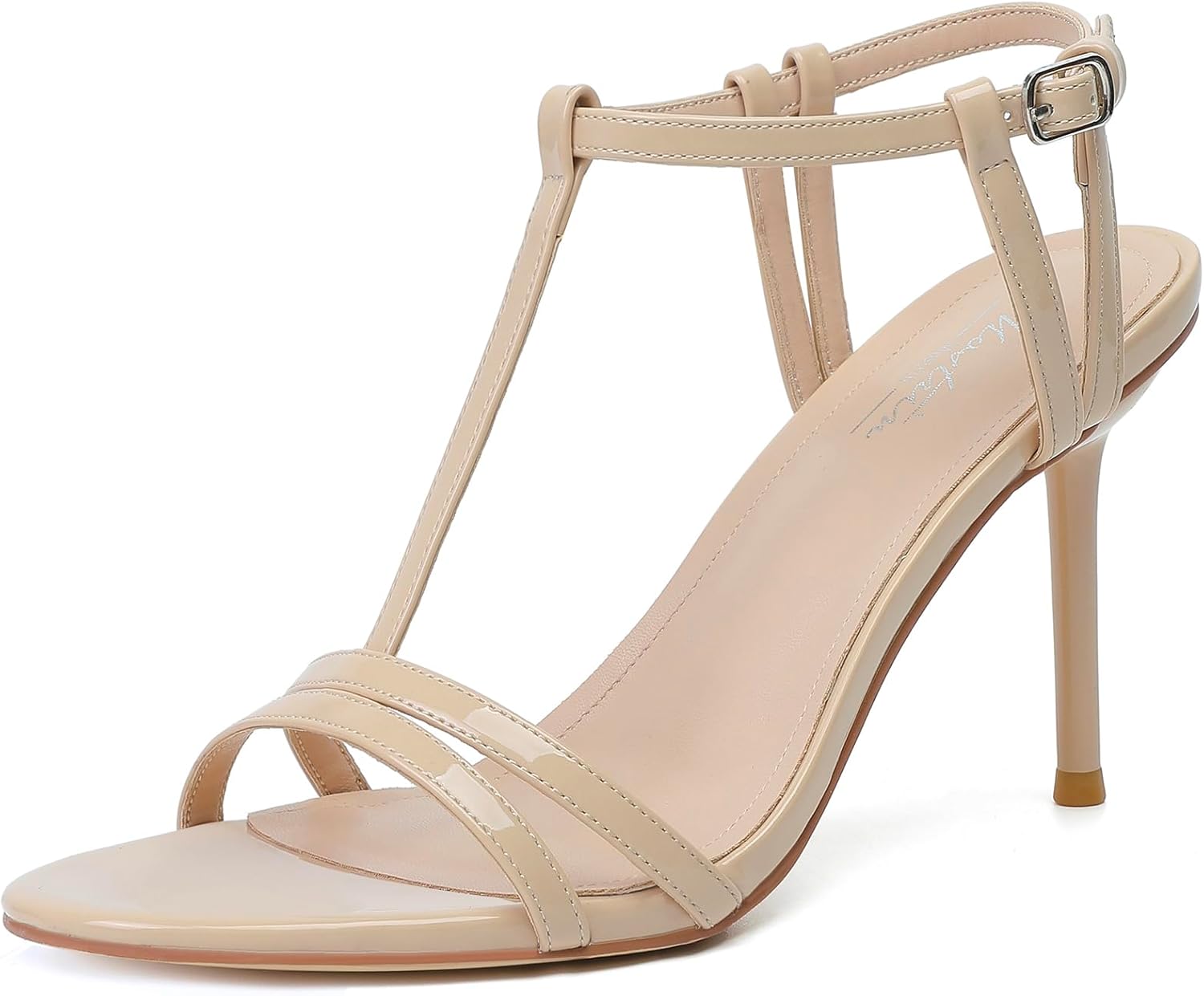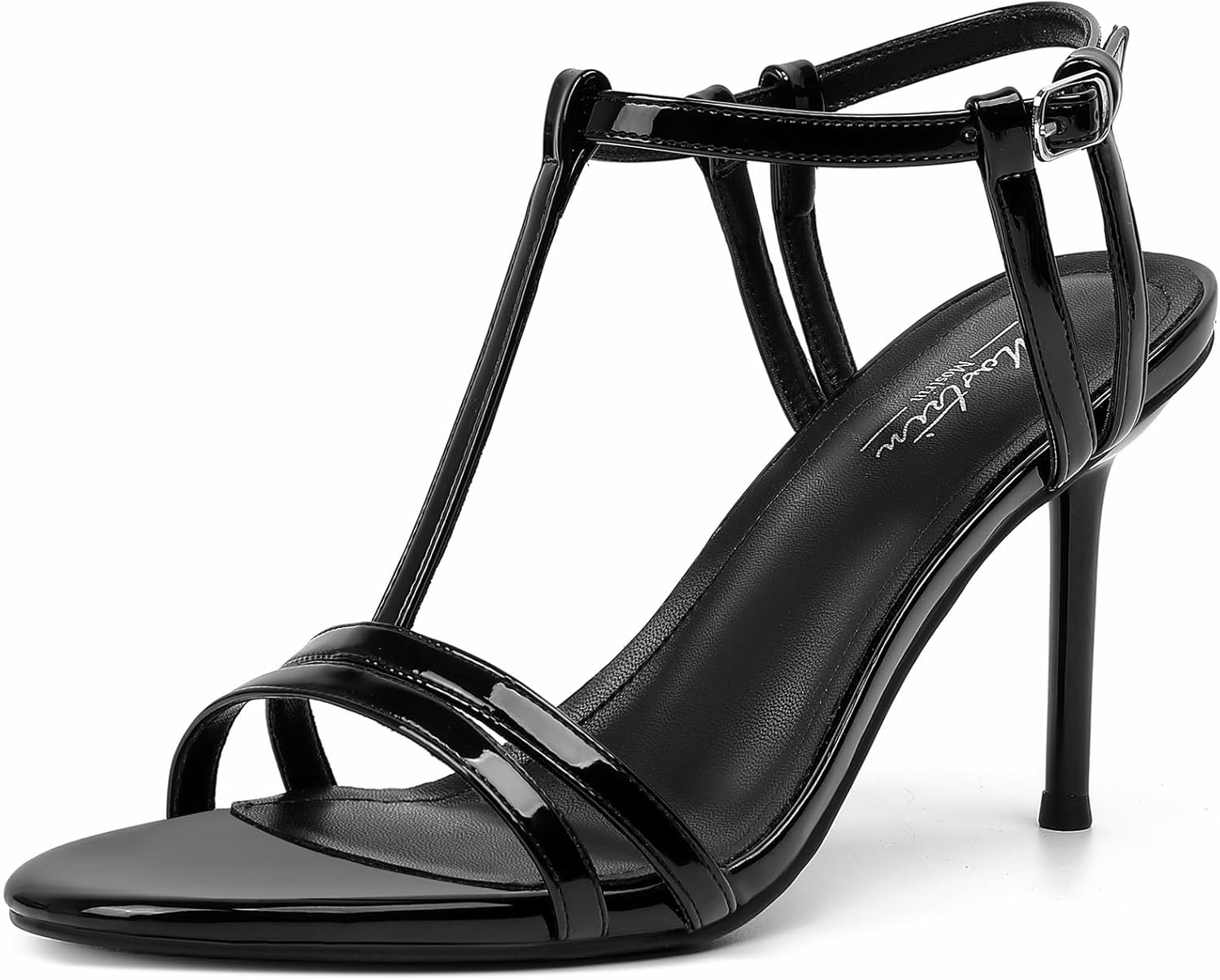 • Mostrin Strappy Heels for Women Round Open Toe Lace Up Heeled Sandals Ankle T Strap Stiletto High Heels Dress Shoes
