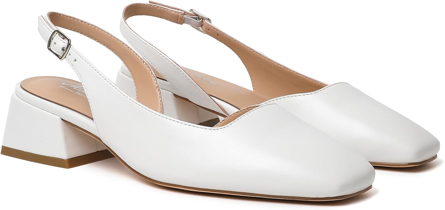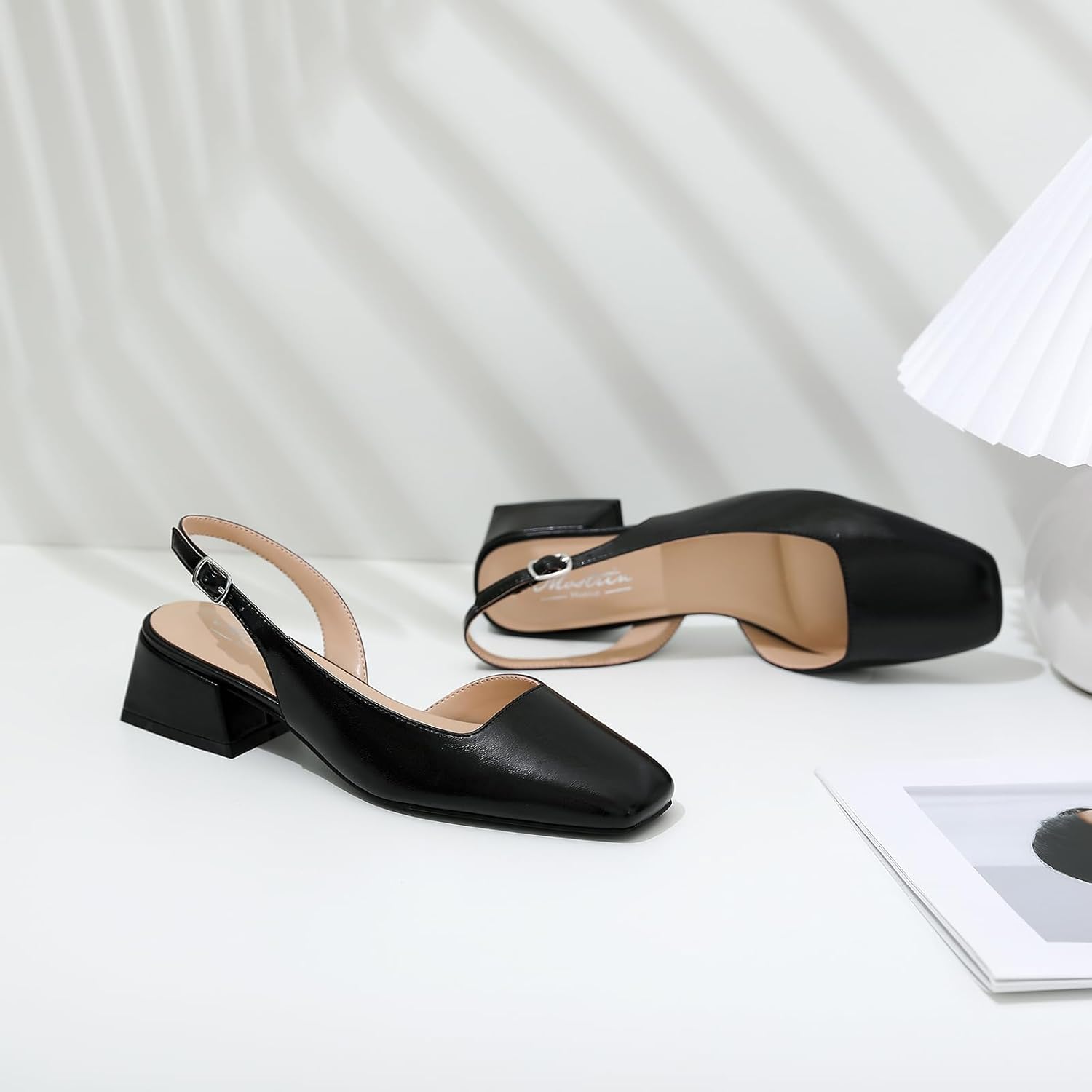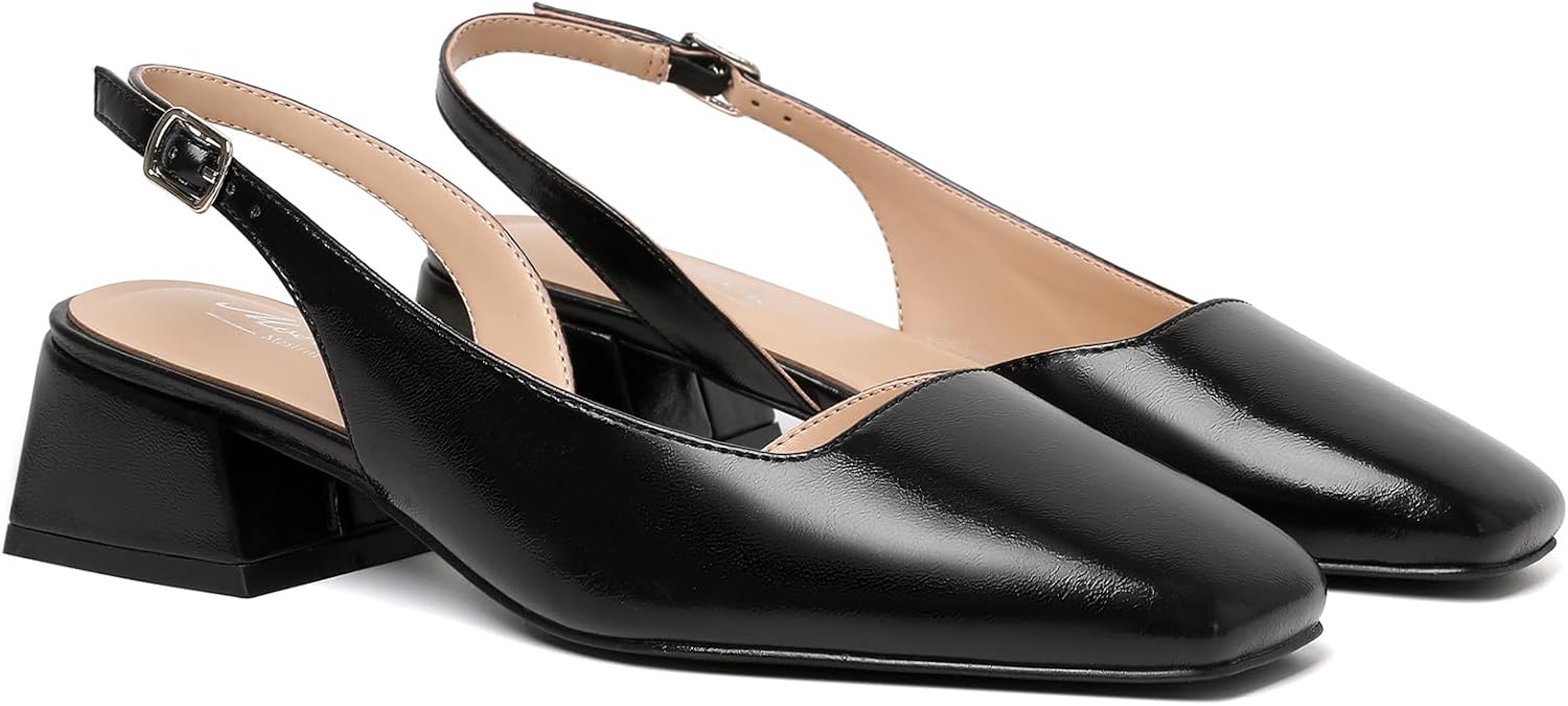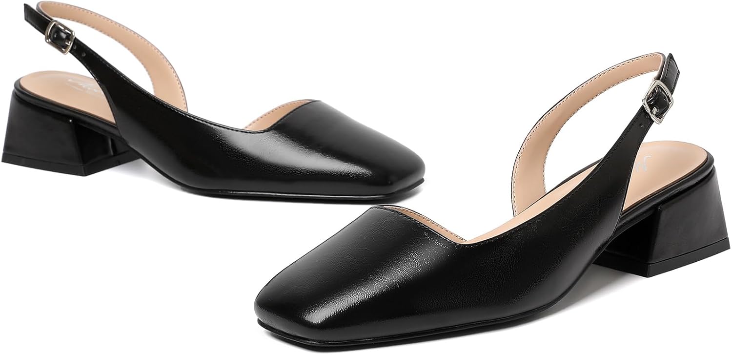 • Mostrin Womens Chunky Low Heels D'Orsay Slingback Block Heel Pumps Closed Square Toe Dress Shoes for Work Office Daily Wedding
