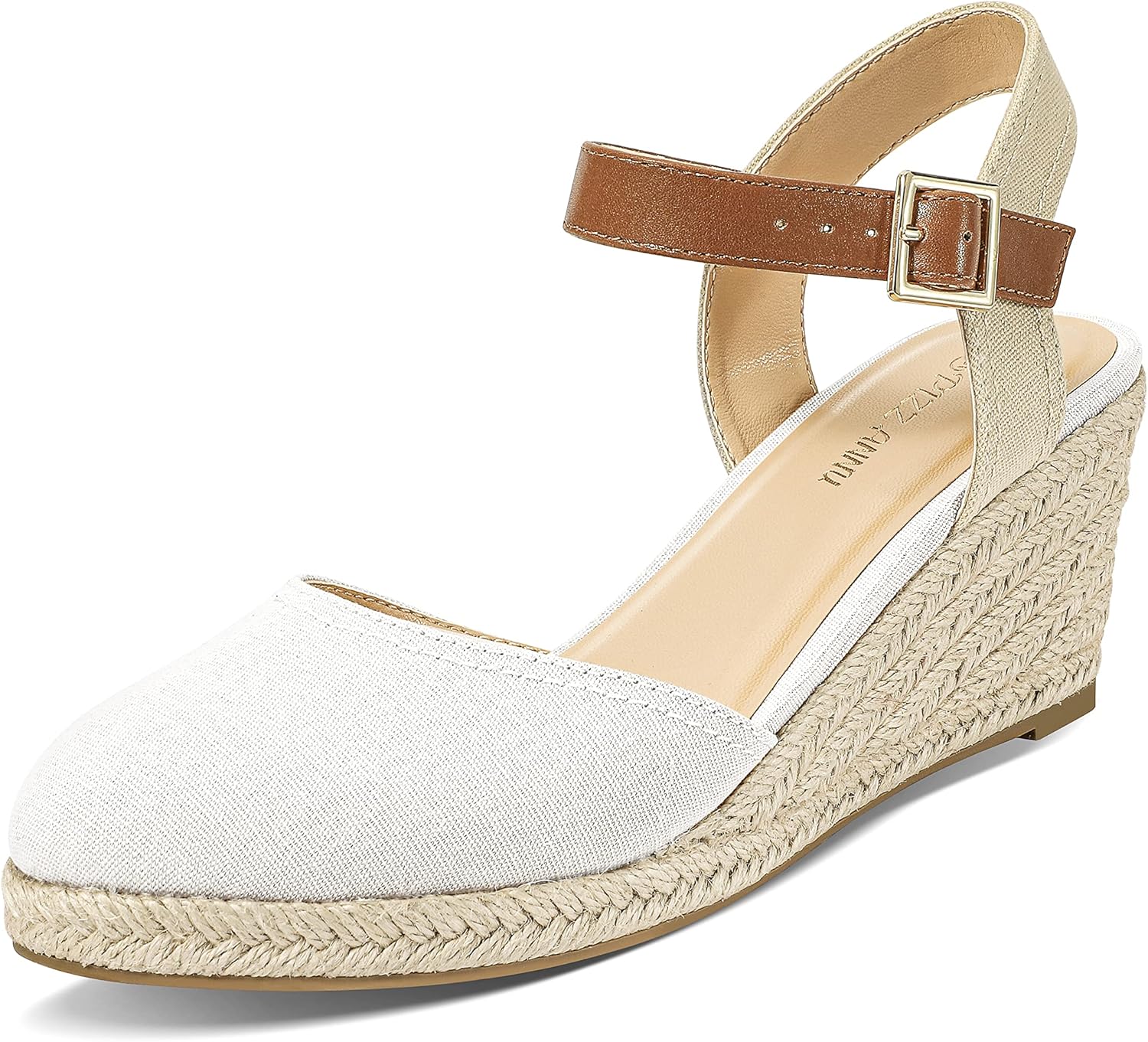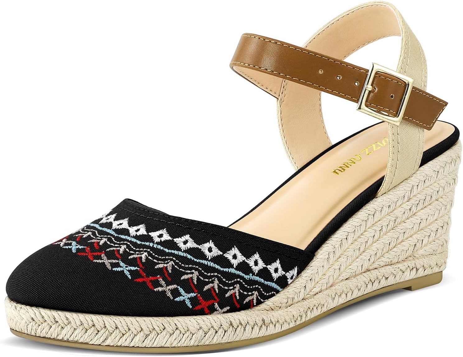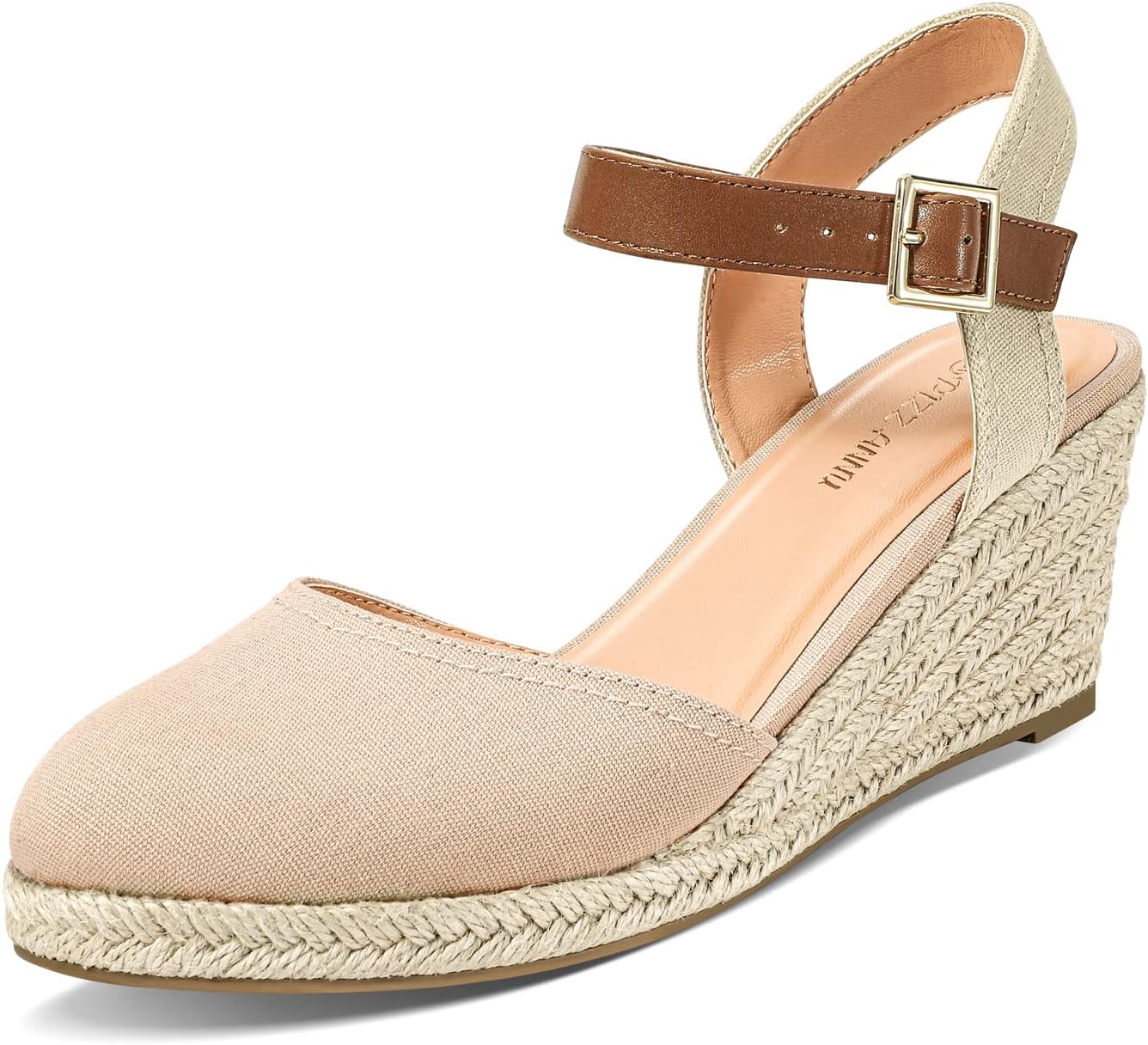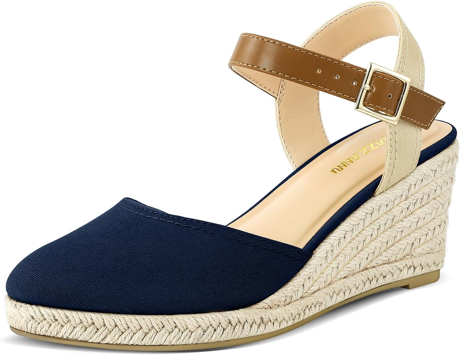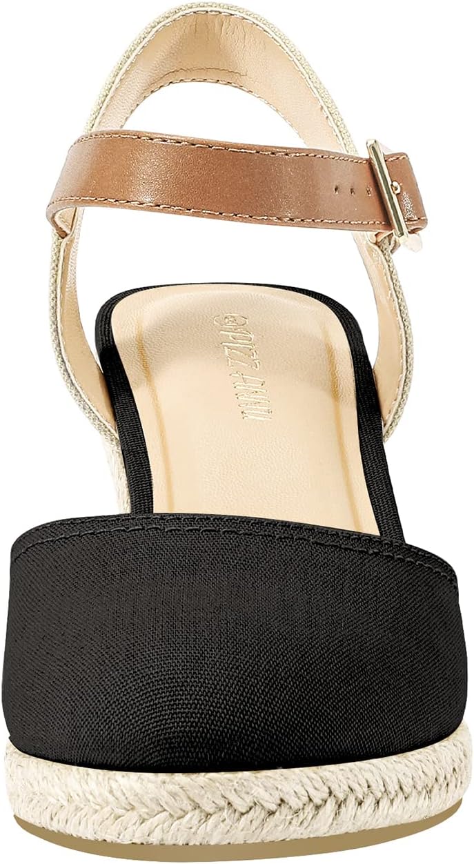 PIZZ ANNU Women's Espadrille Low Wedge Heel Sandals with Buckle Ankle Strap Close Toe Casual Dressy Summer Platform Shoes