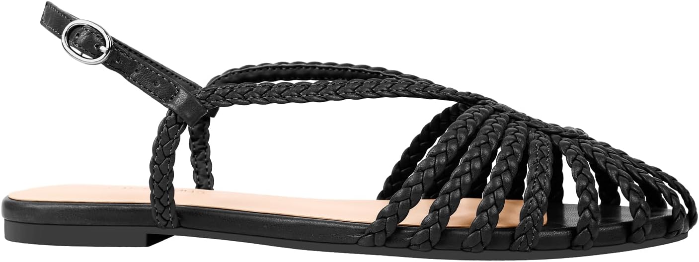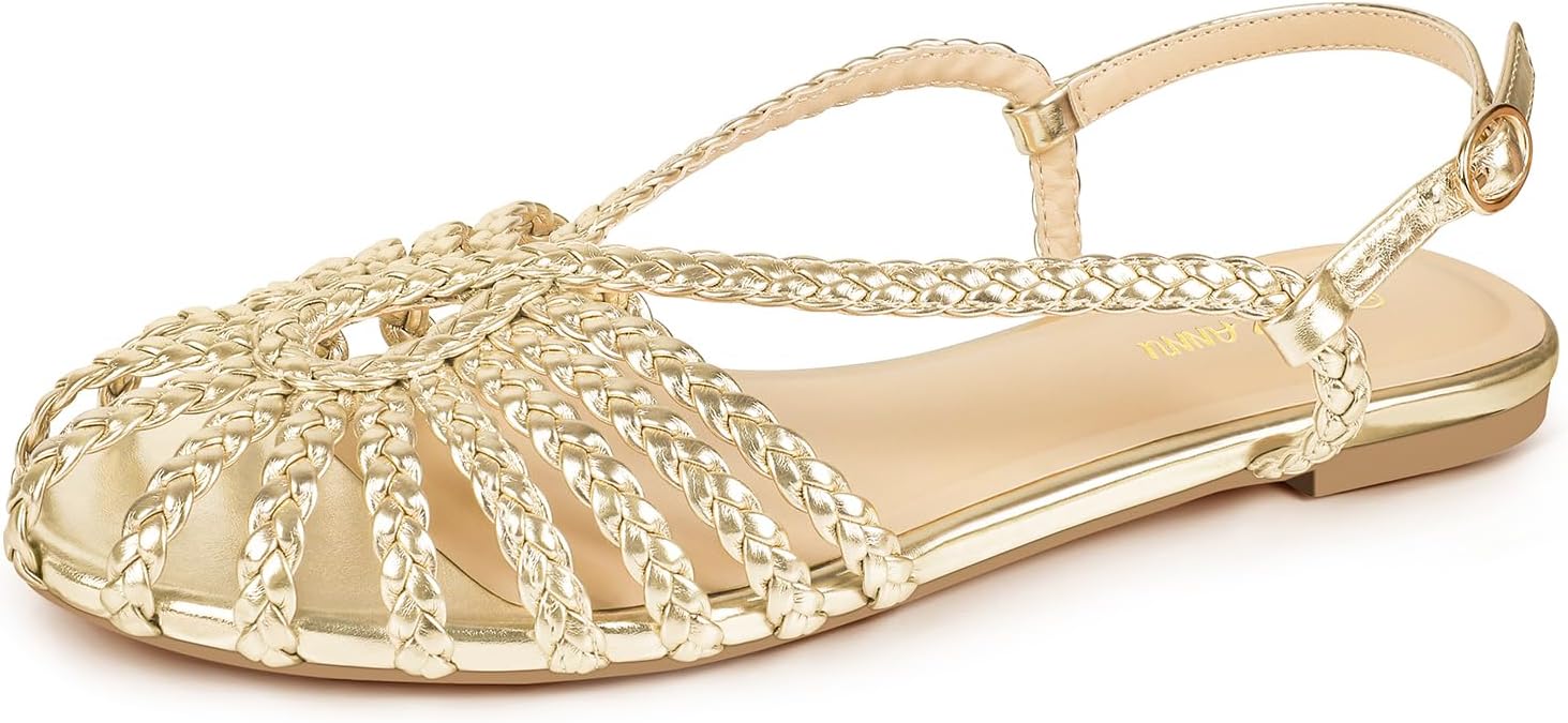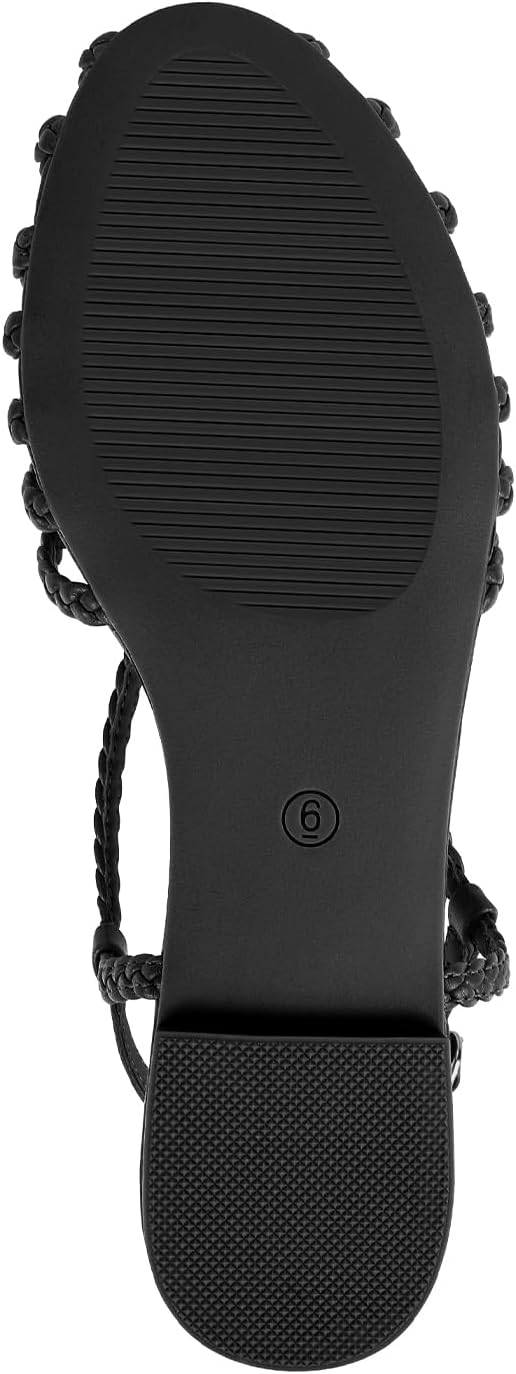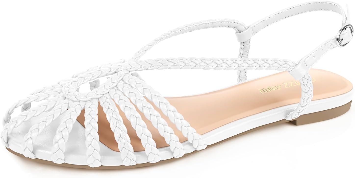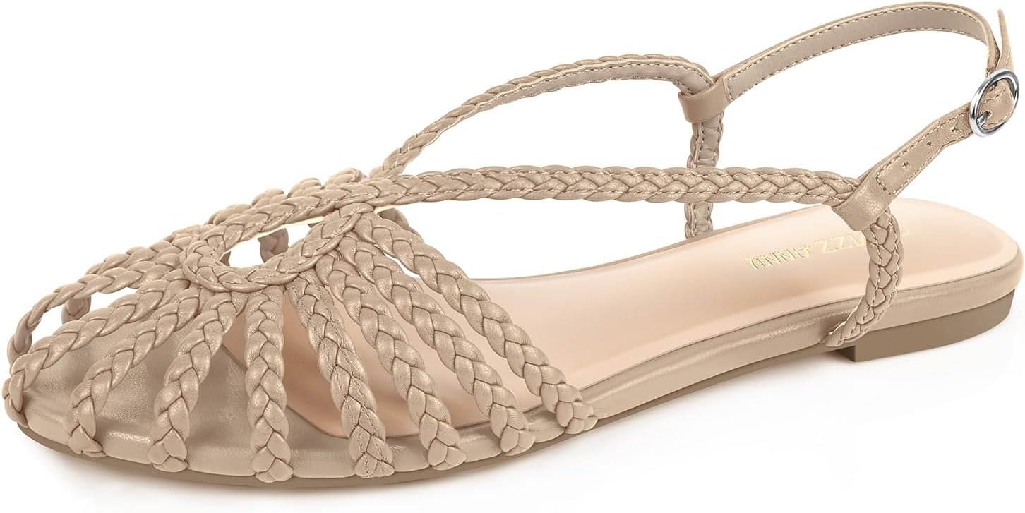 PIZZ ANNU Women's Sophia Braided Flat Sandals Comfortable Memory Foam Walking Shoes Summer Gladiator Slingback Ankle Strap Strappy Sandals