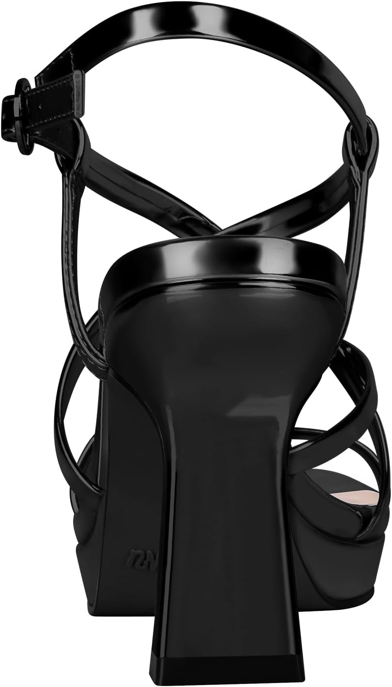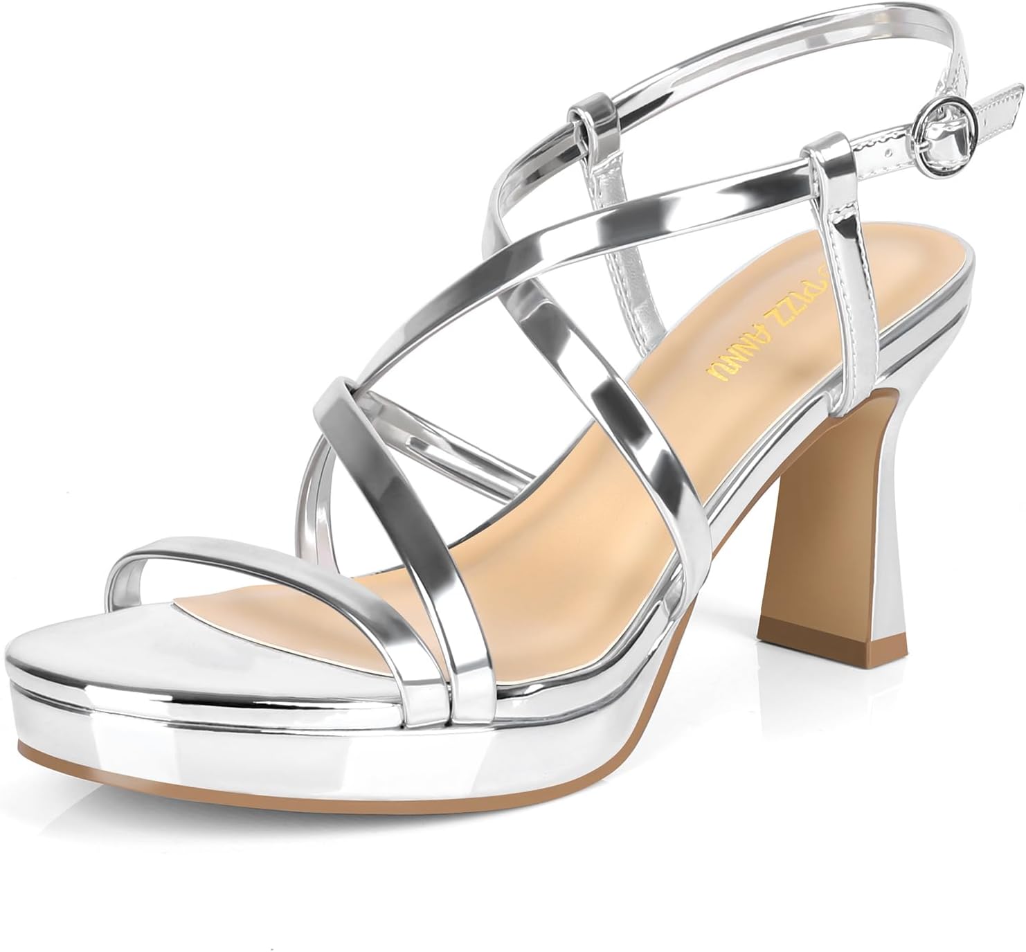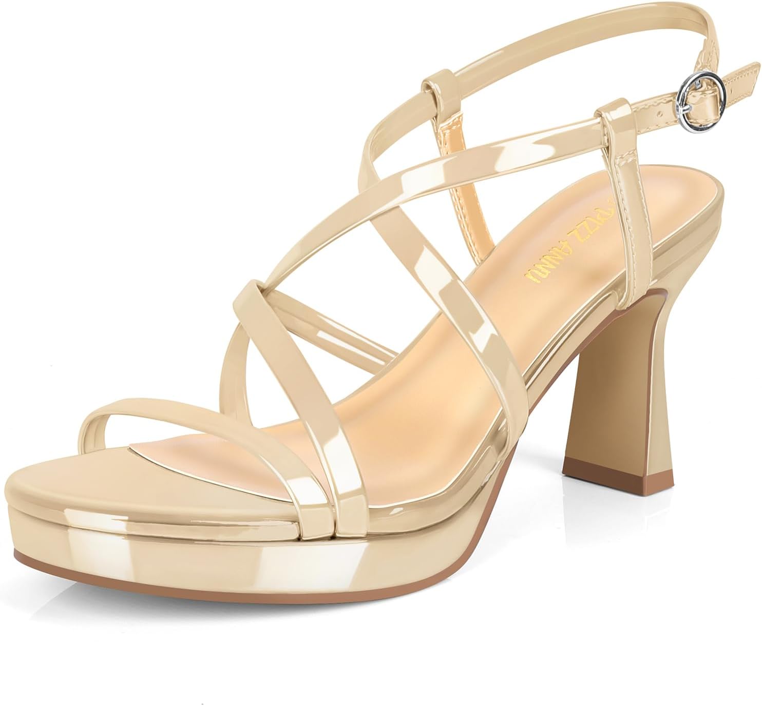 PIZZ ANNU Women's Vela Platform Heels Sandals Chunky Block Comfort Strappy Slingback Open Toe Heeled Sandals with Buckle Ankle Strap for Wedding Party Dress Pump Shoes