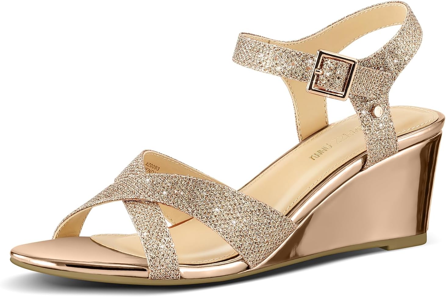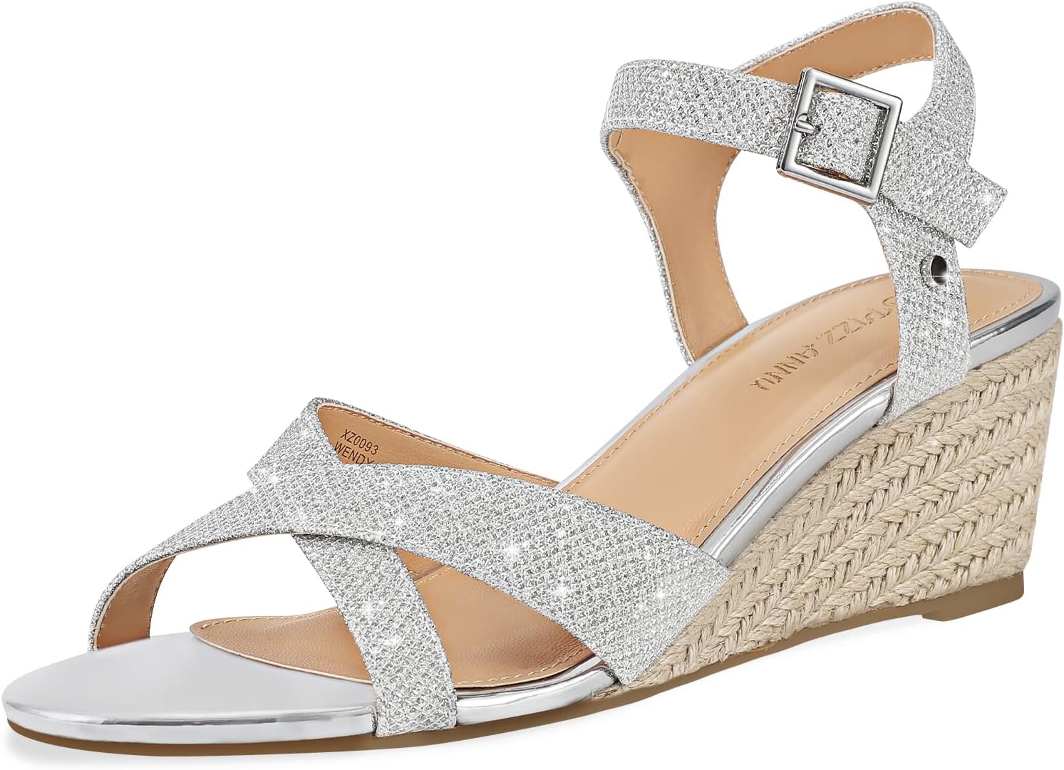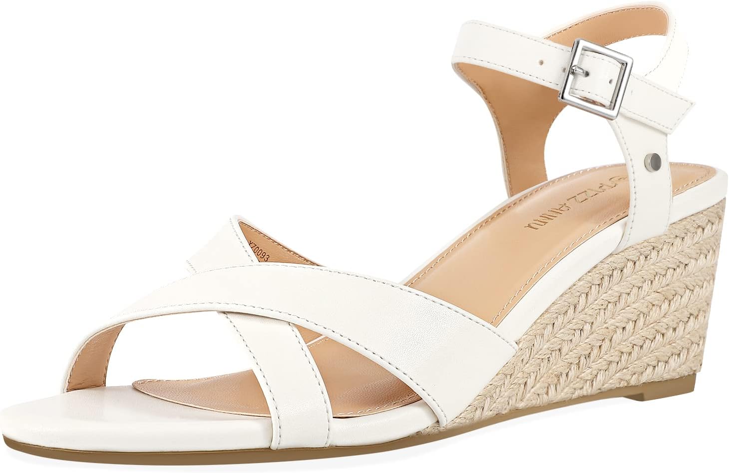 PIZZ ANNU Women's Wendy Low Wedge Sandals Ankle Strap Espadrille Open Toe Casual Summer Women Wedge Heels Shoes