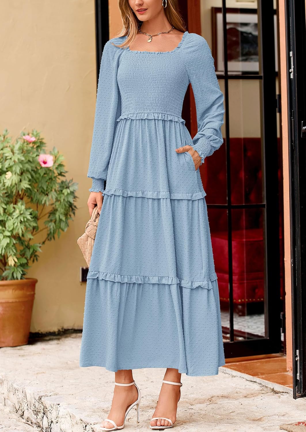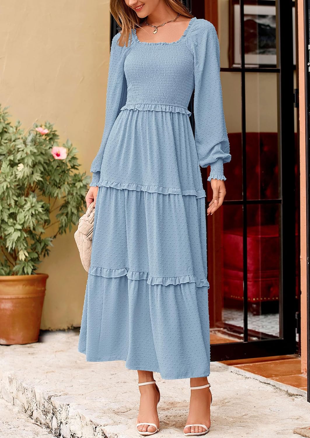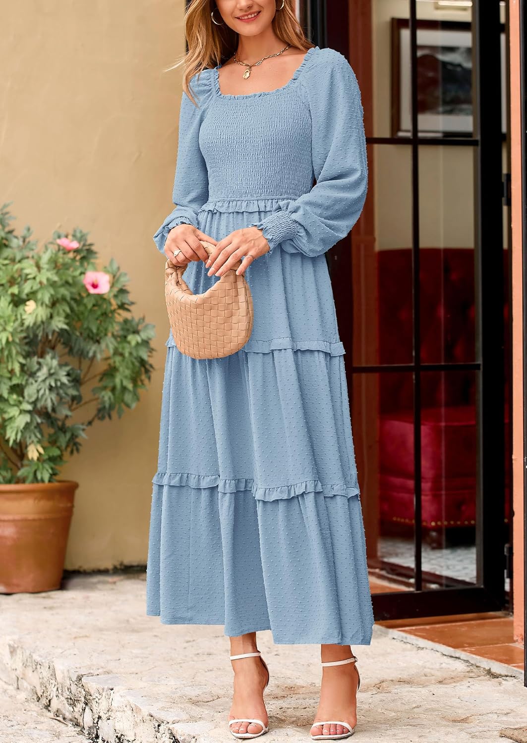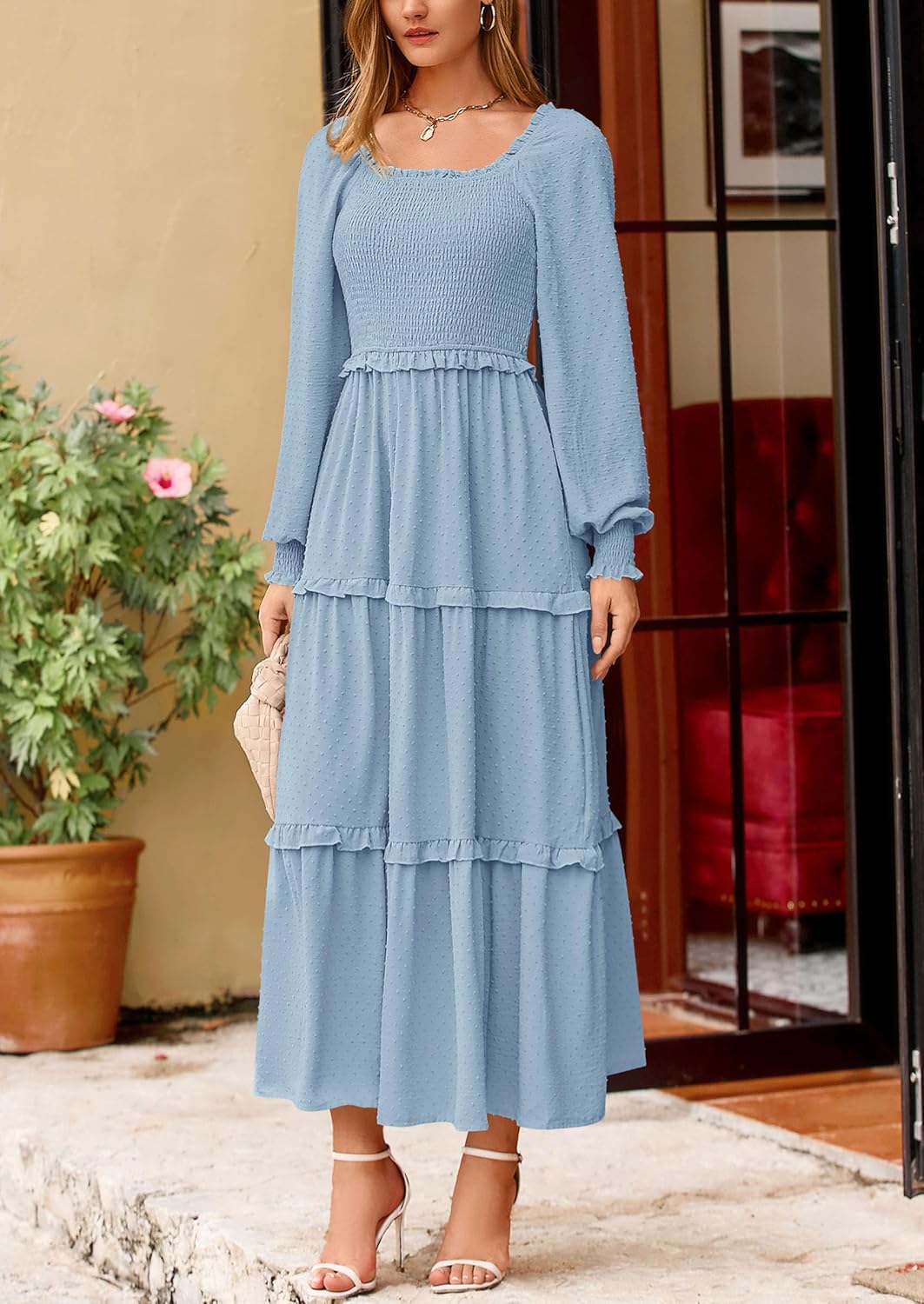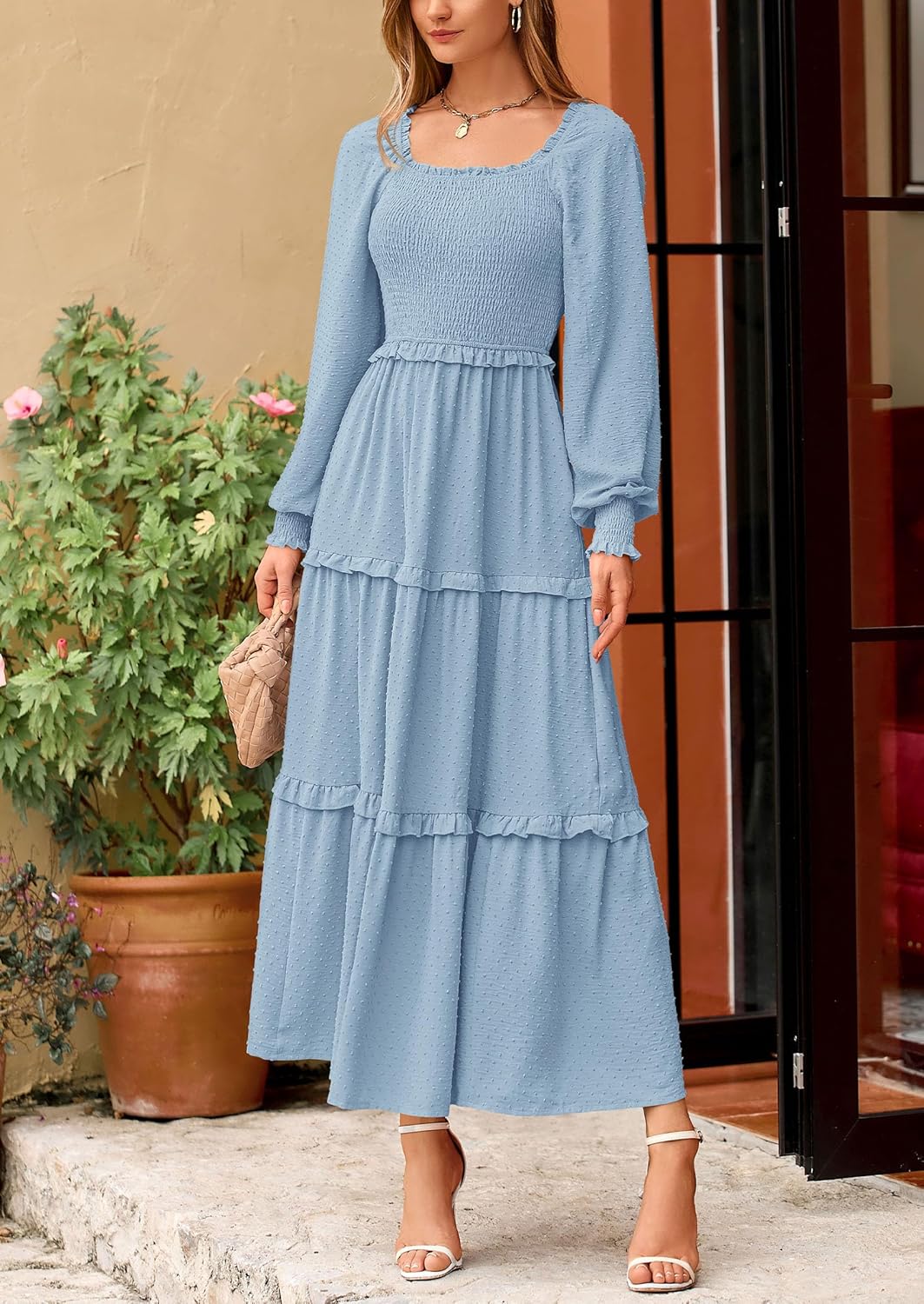 PRETTYGARDEN Womens Fall Spring Fashion Long Sleeve Maxi Dresses Smocked Dress