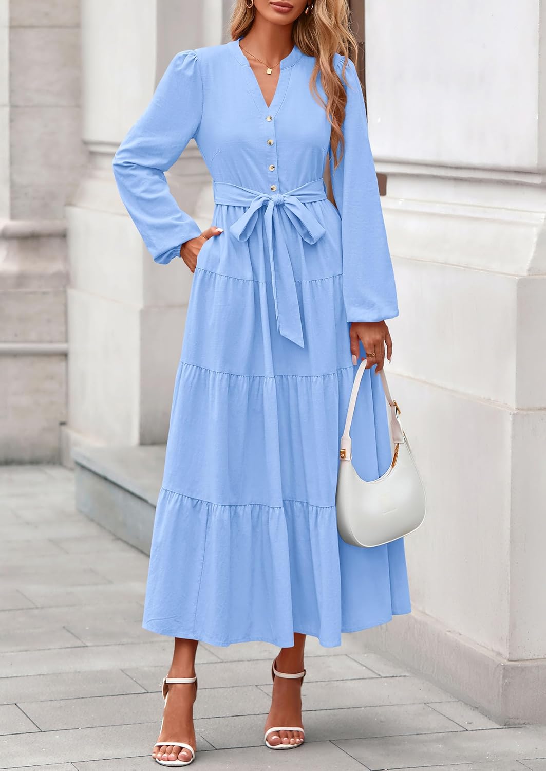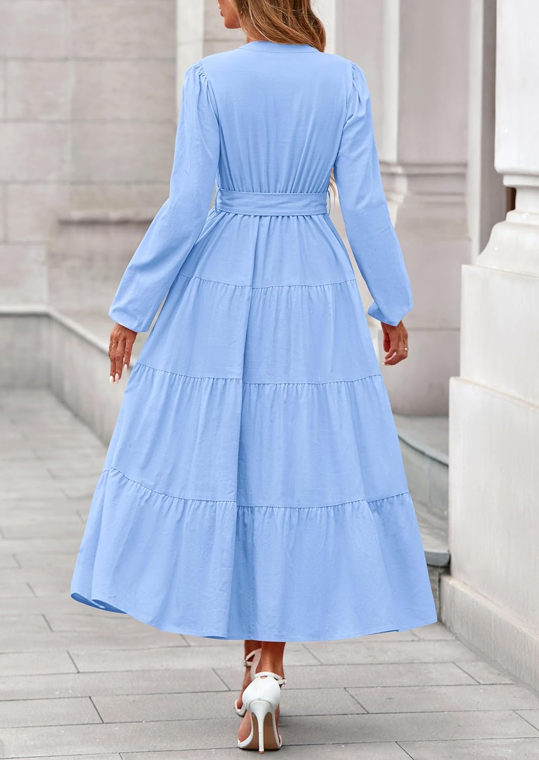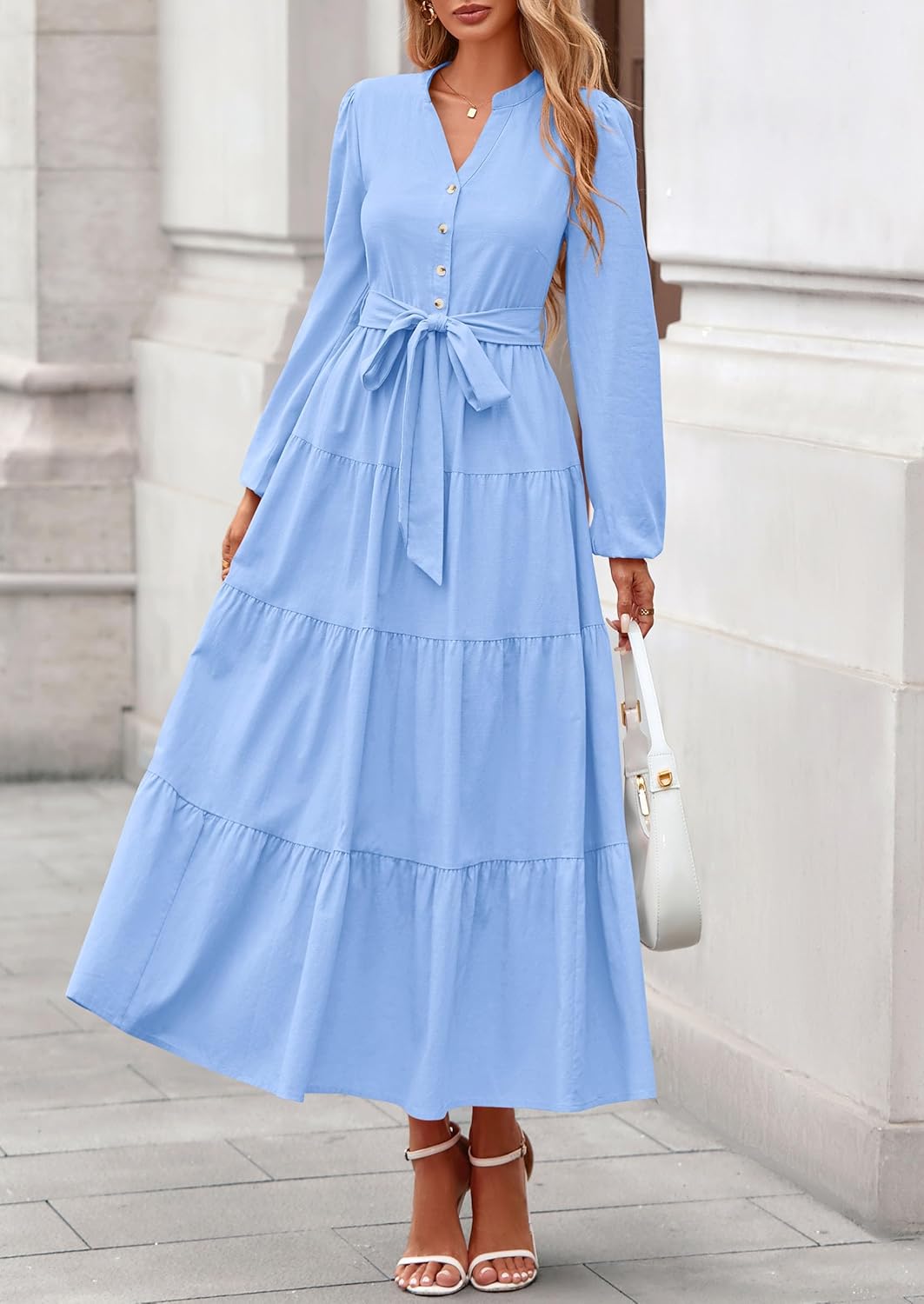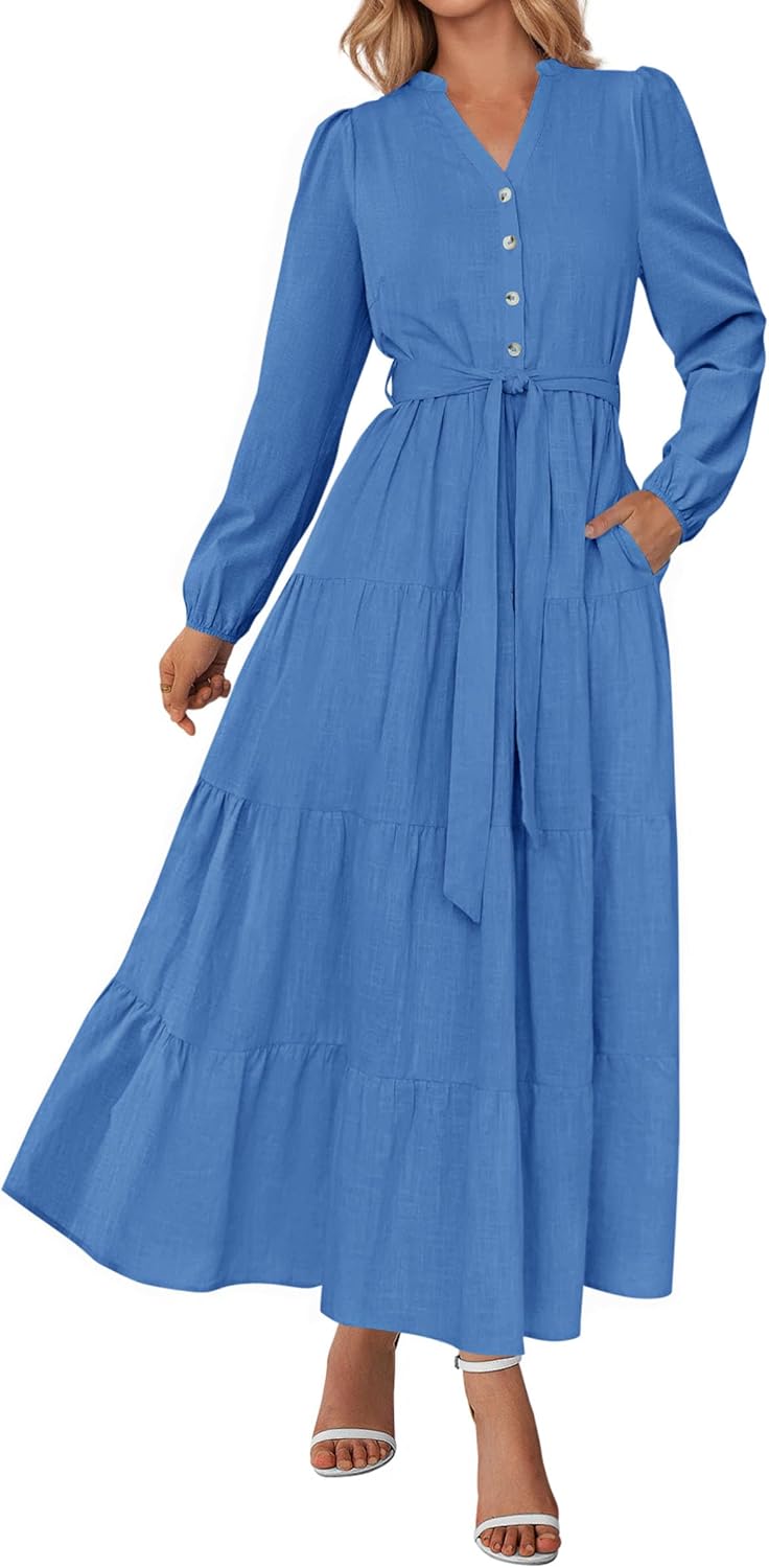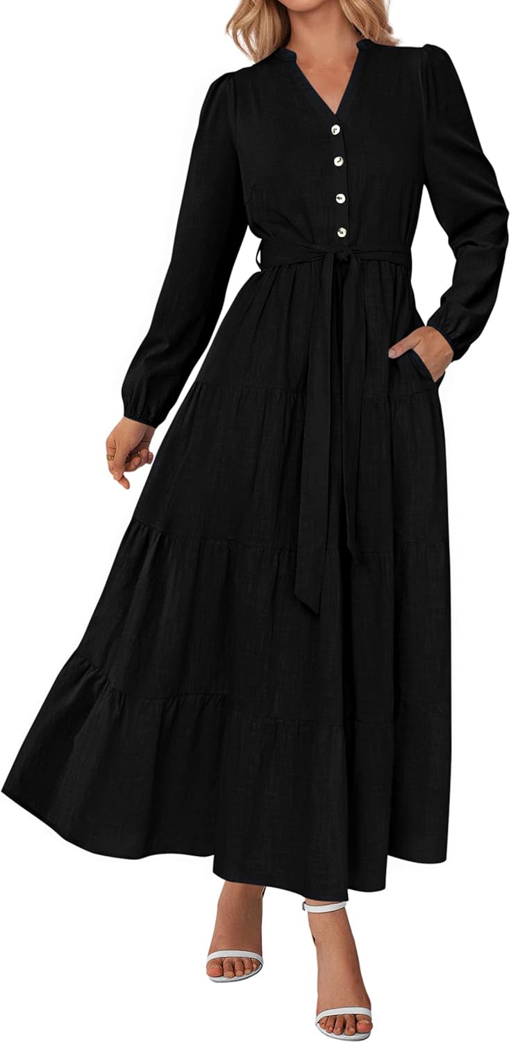 PRETTYGARDEN Long Dresses for Women V Neck Fall Wedding Guest Dress