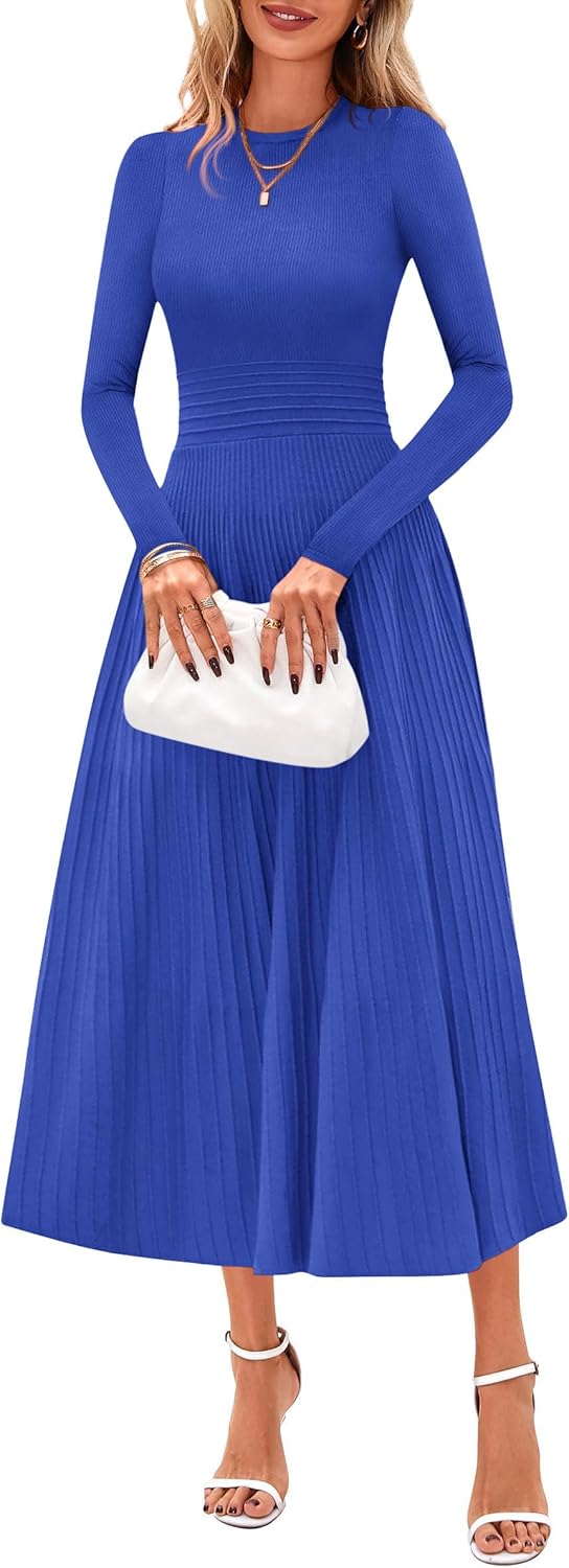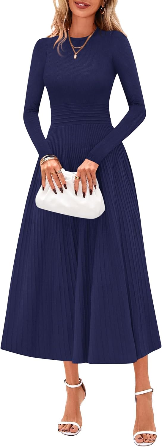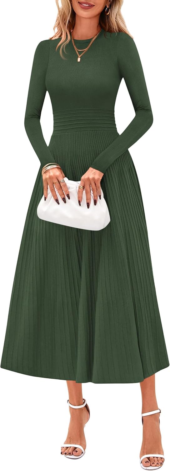 PRETTYGARDEN Women's Long Sleeve Pleated Dresses Swing A Line Knit Sweater Dress