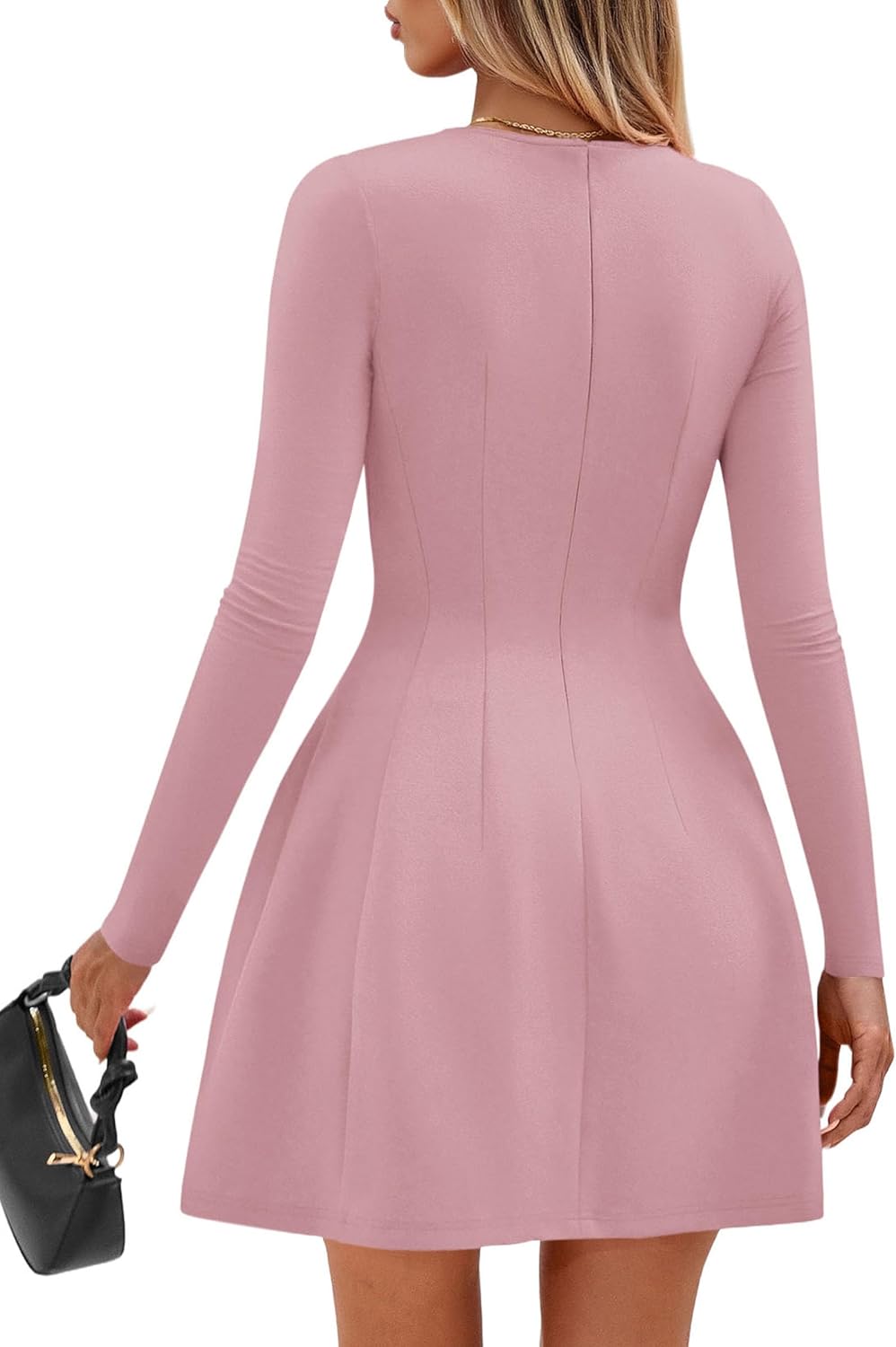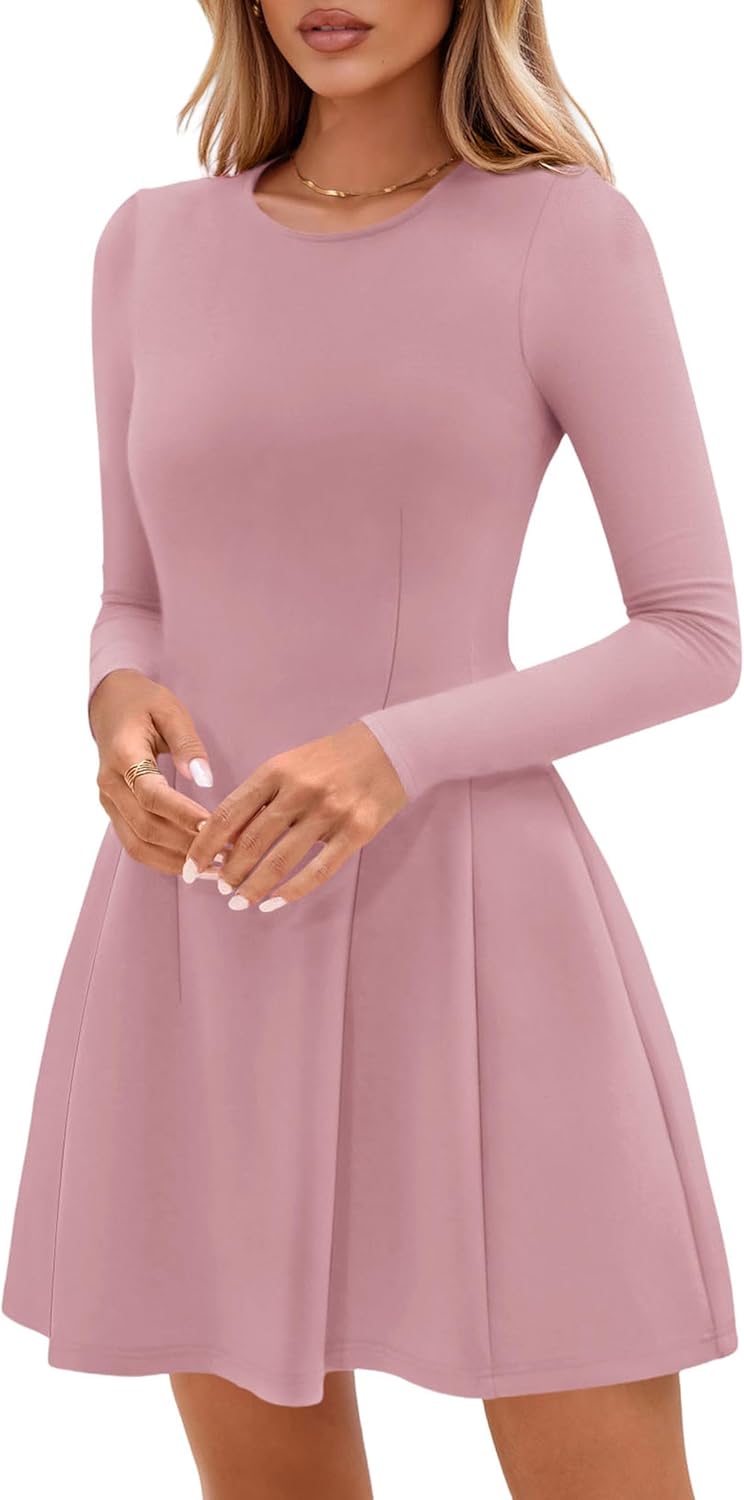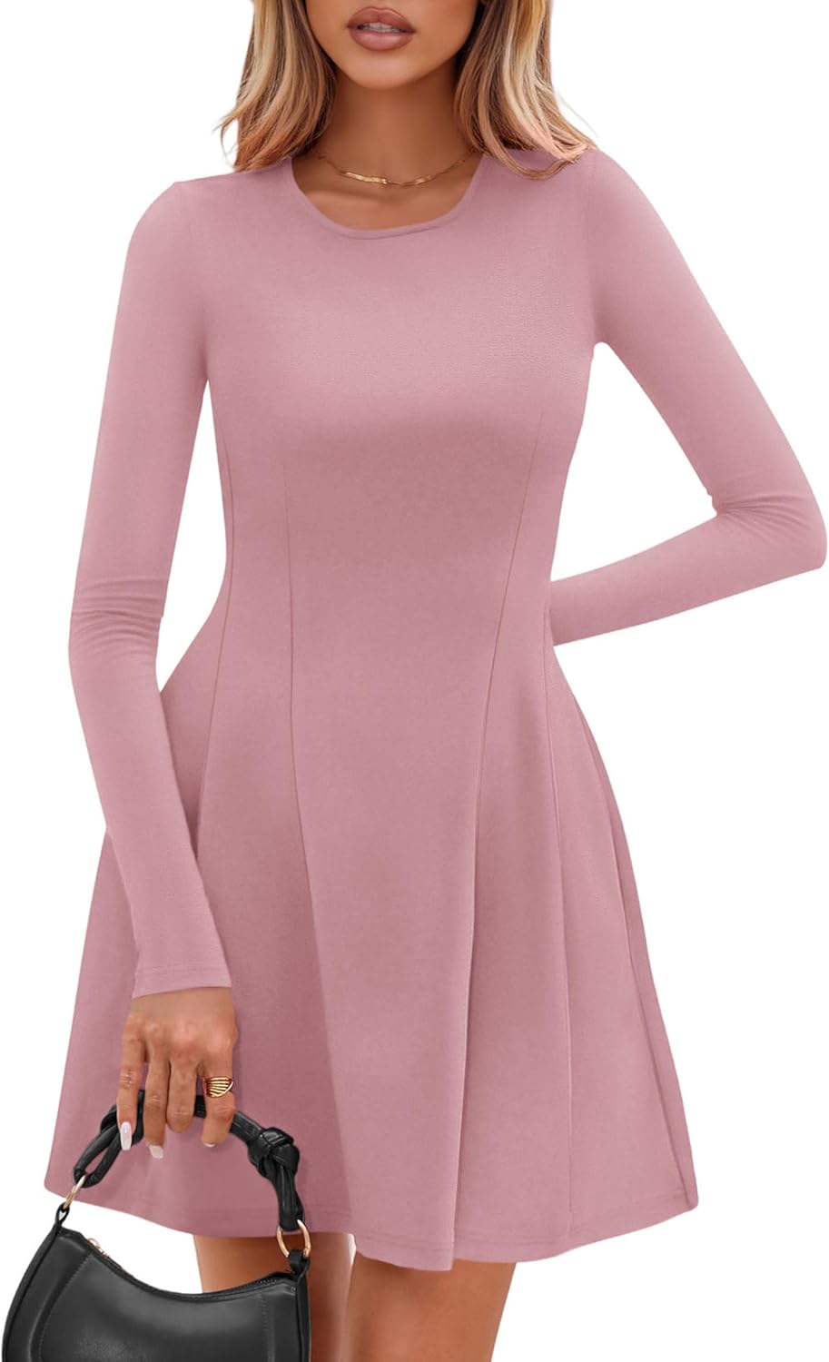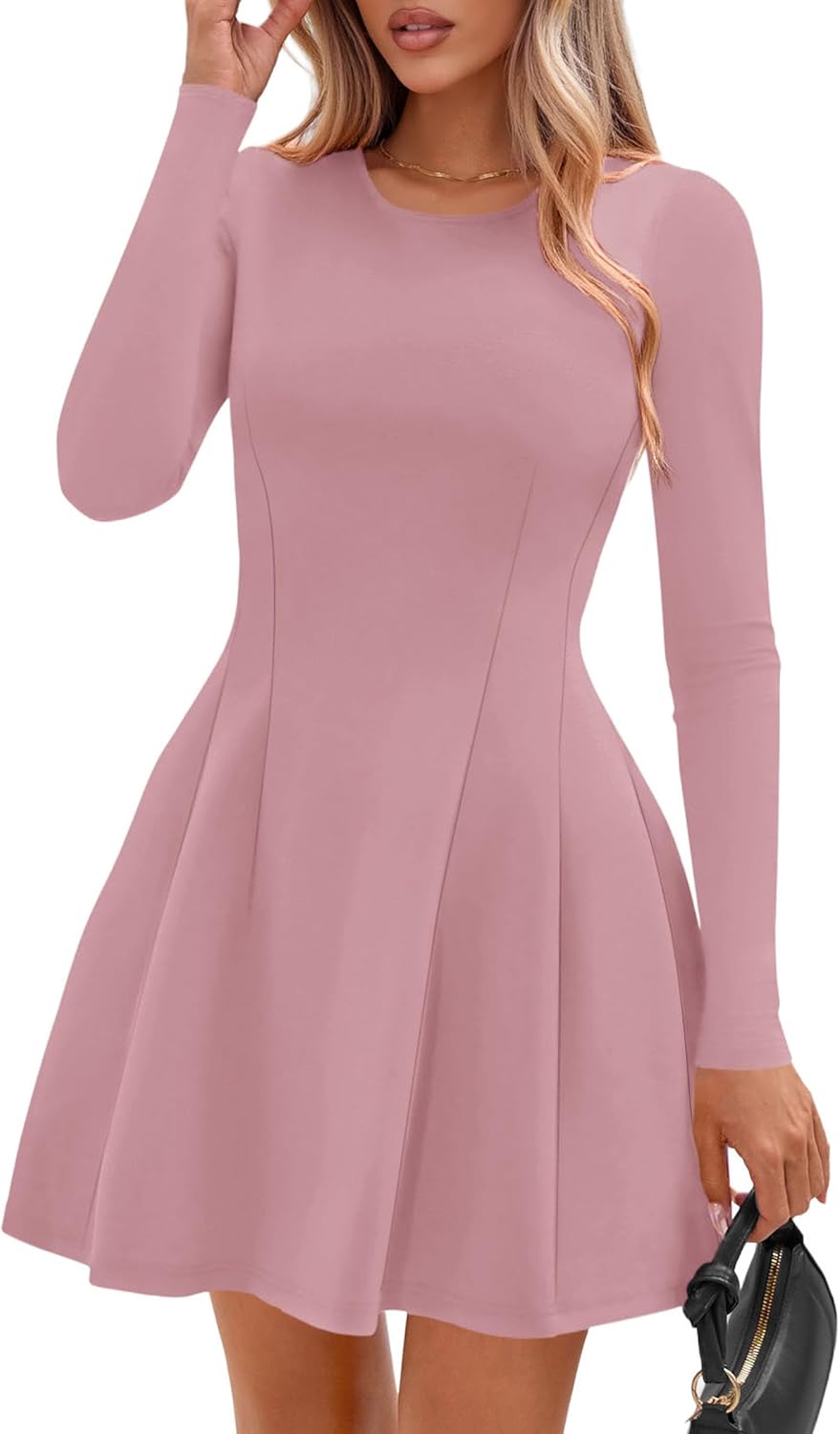 PRETTYGARDEN Womens Long Sleeve Dresses Crew Neck A Line Mini Dress