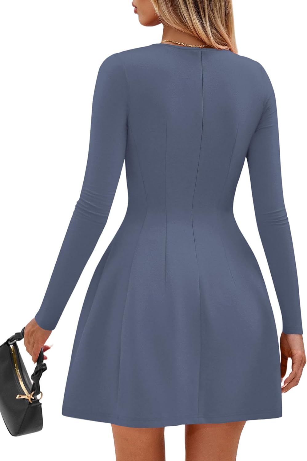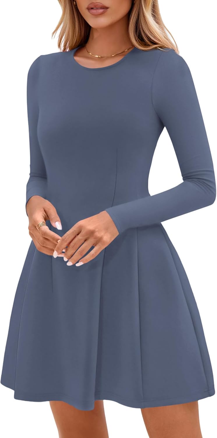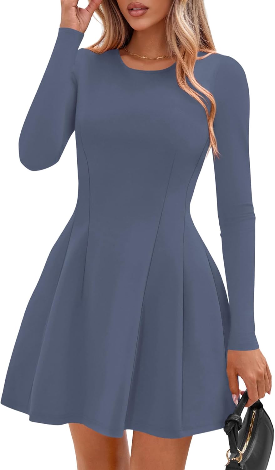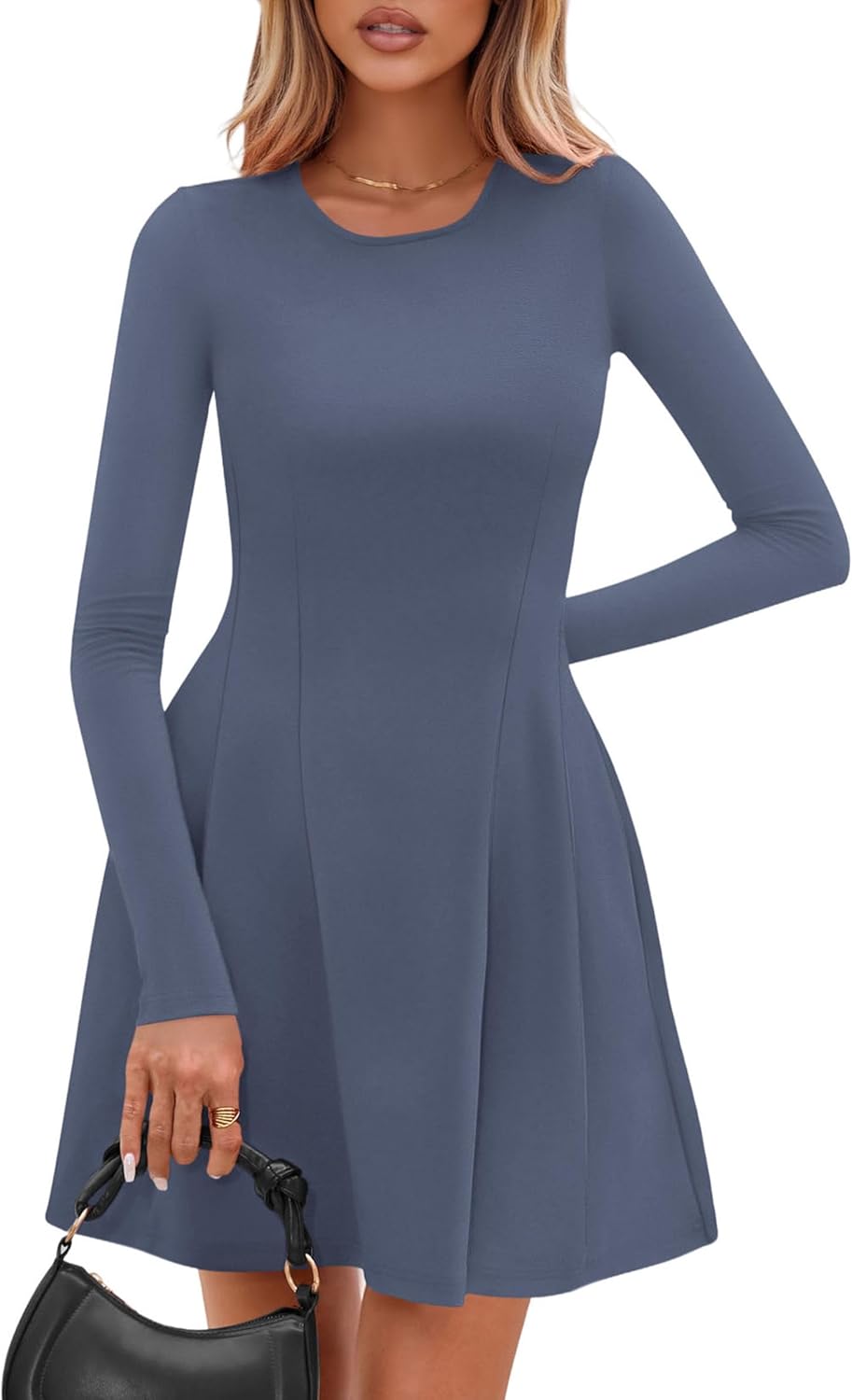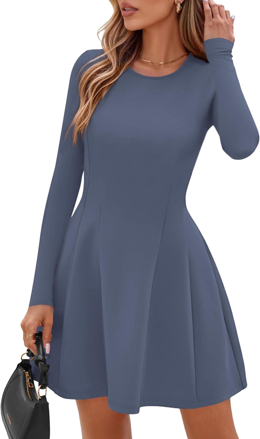 PRETTYGARDEN Womens Long Sleeve Dresses Crew Neck A Line Mini Dress