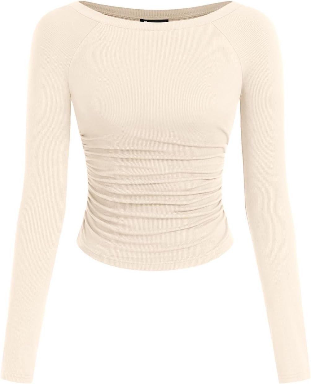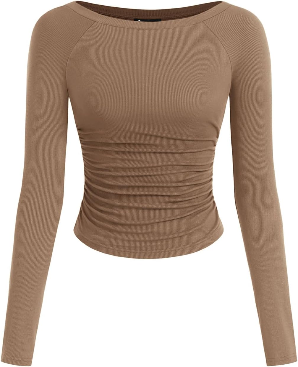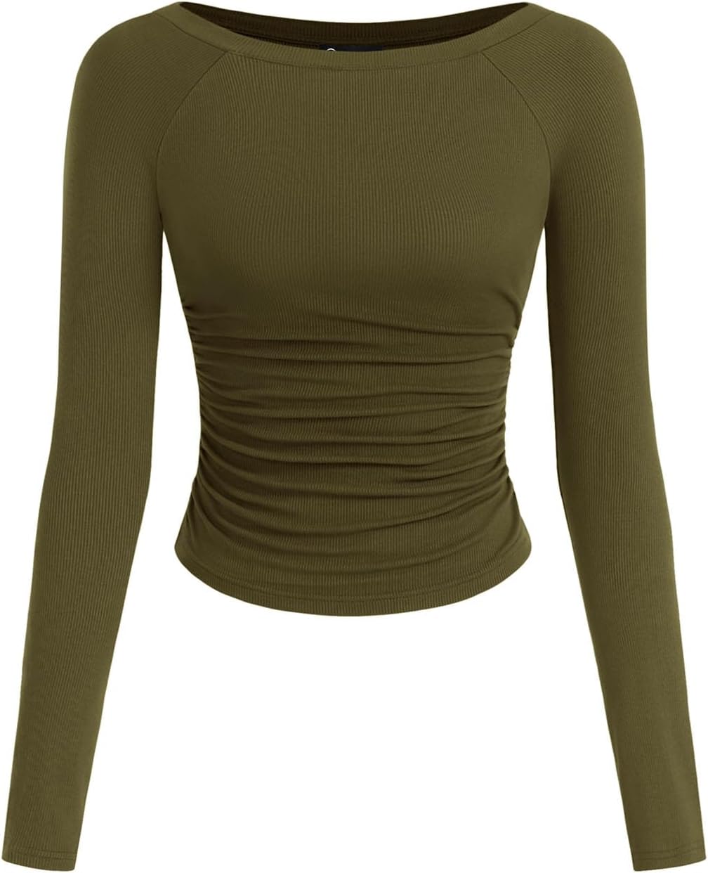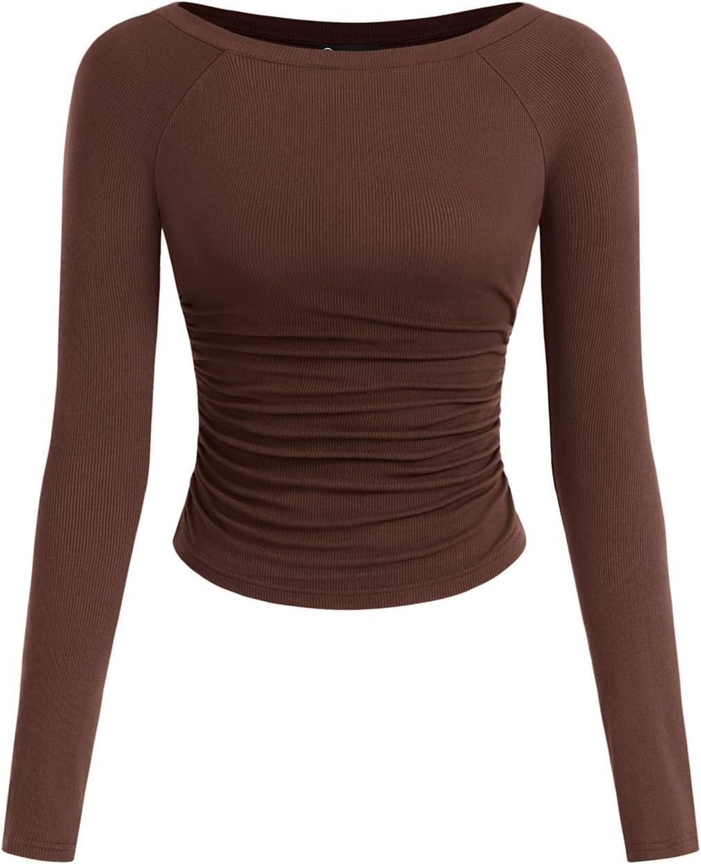 PRETTYGARDEN Fitted Long Sleeve Shirt Women Ruched Tops 2025 Fall Tees