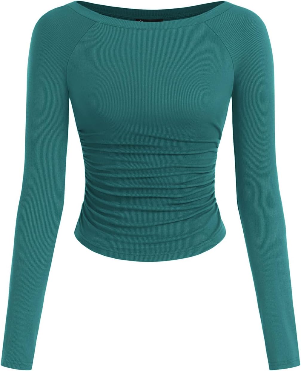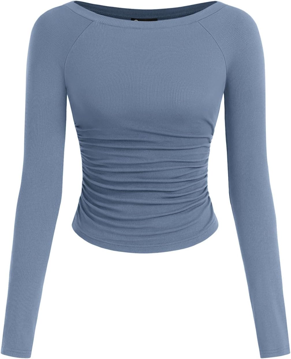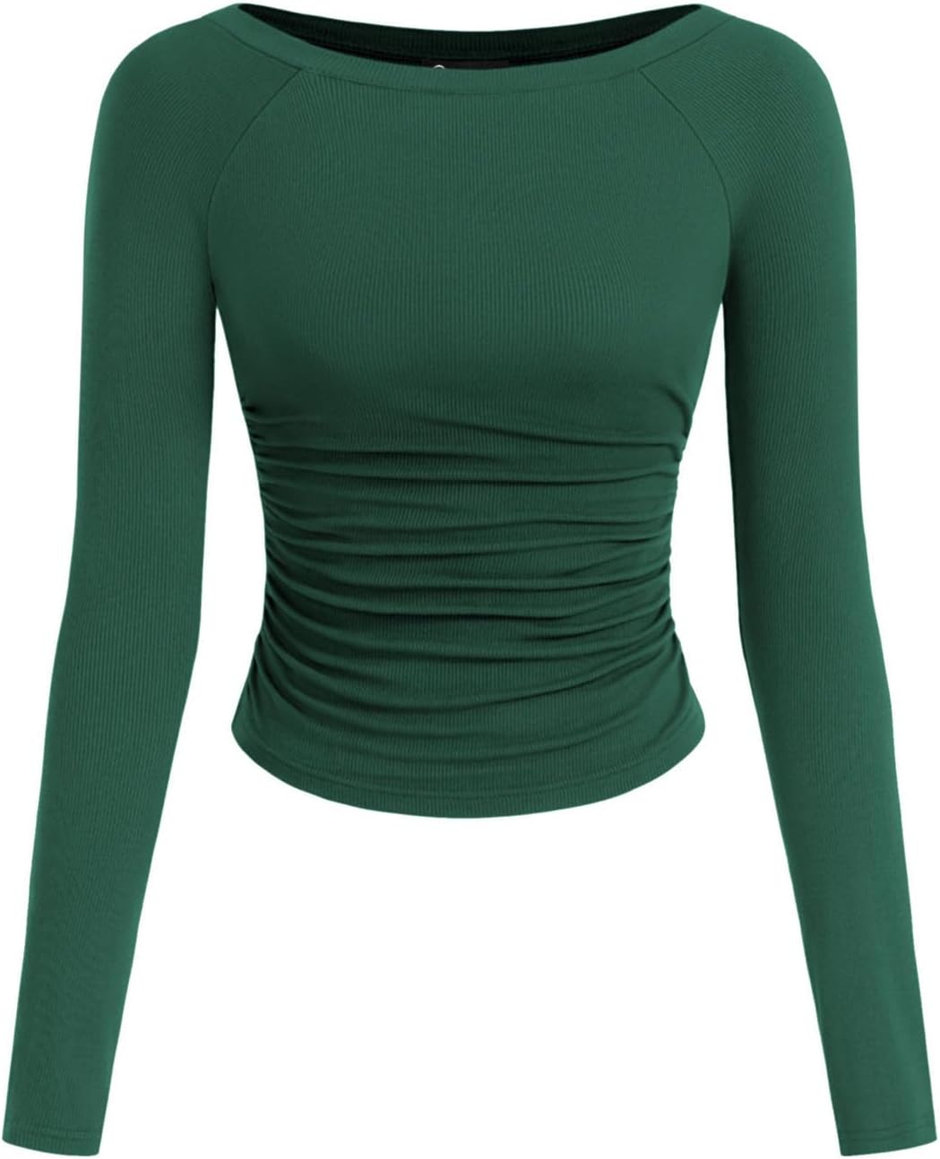 PRETTYGARDEN Fitted Long Sleeve Shirt Women Ruched Tops 2025 Fall Tees