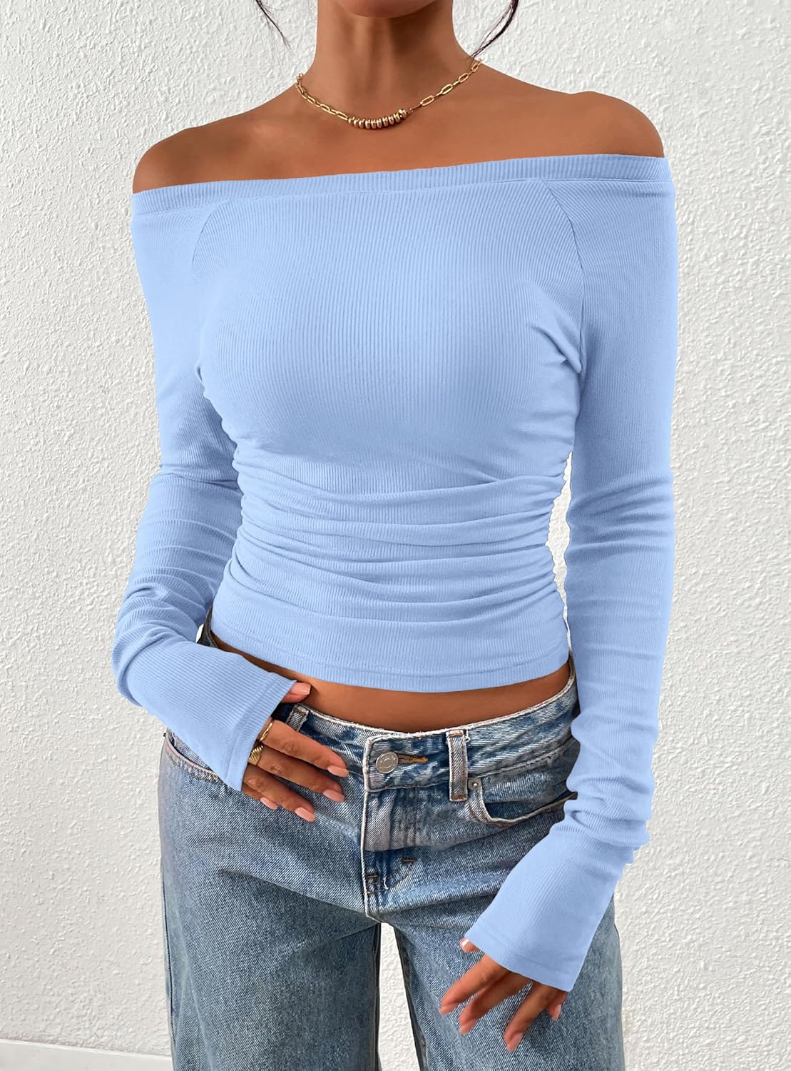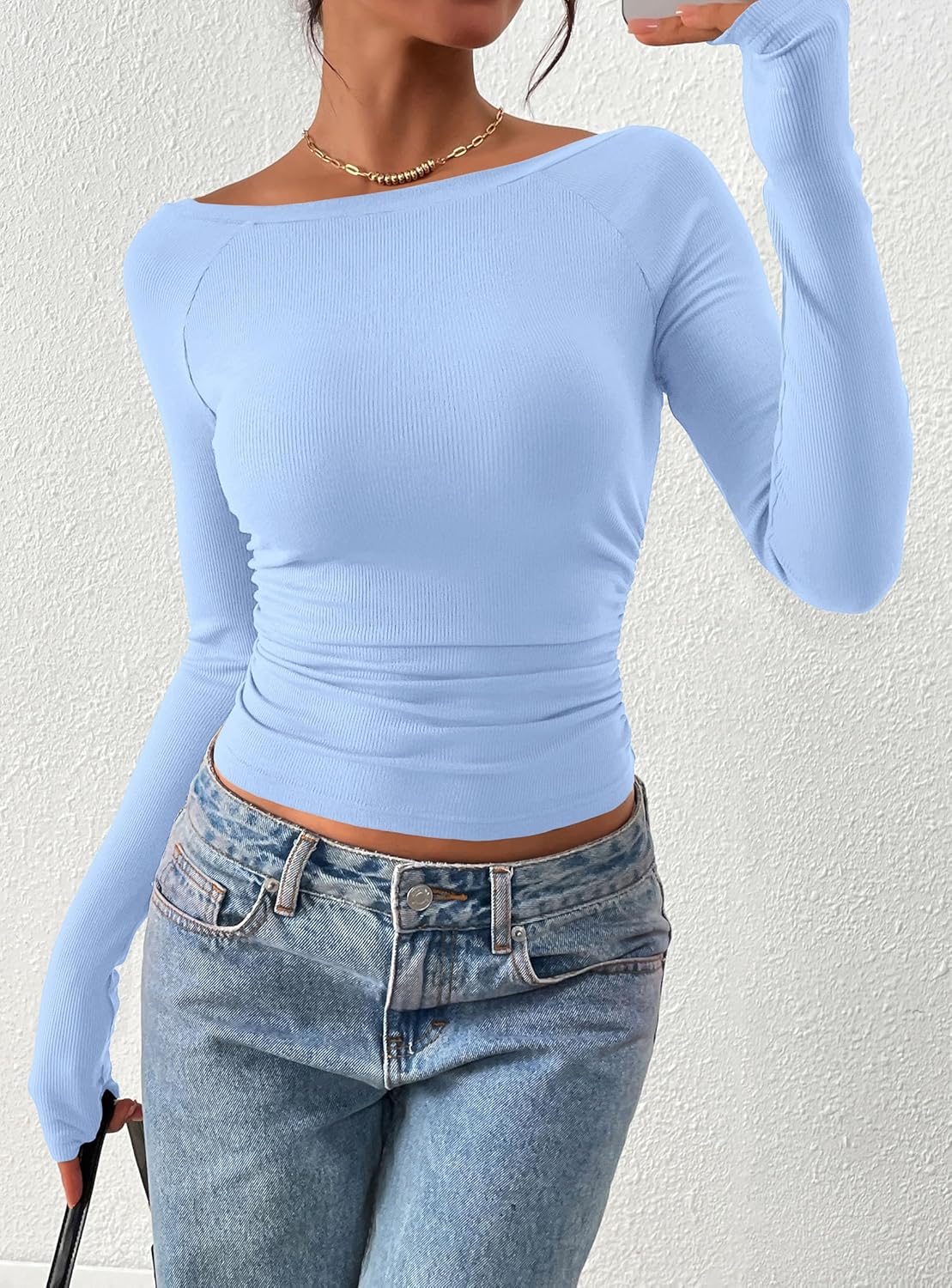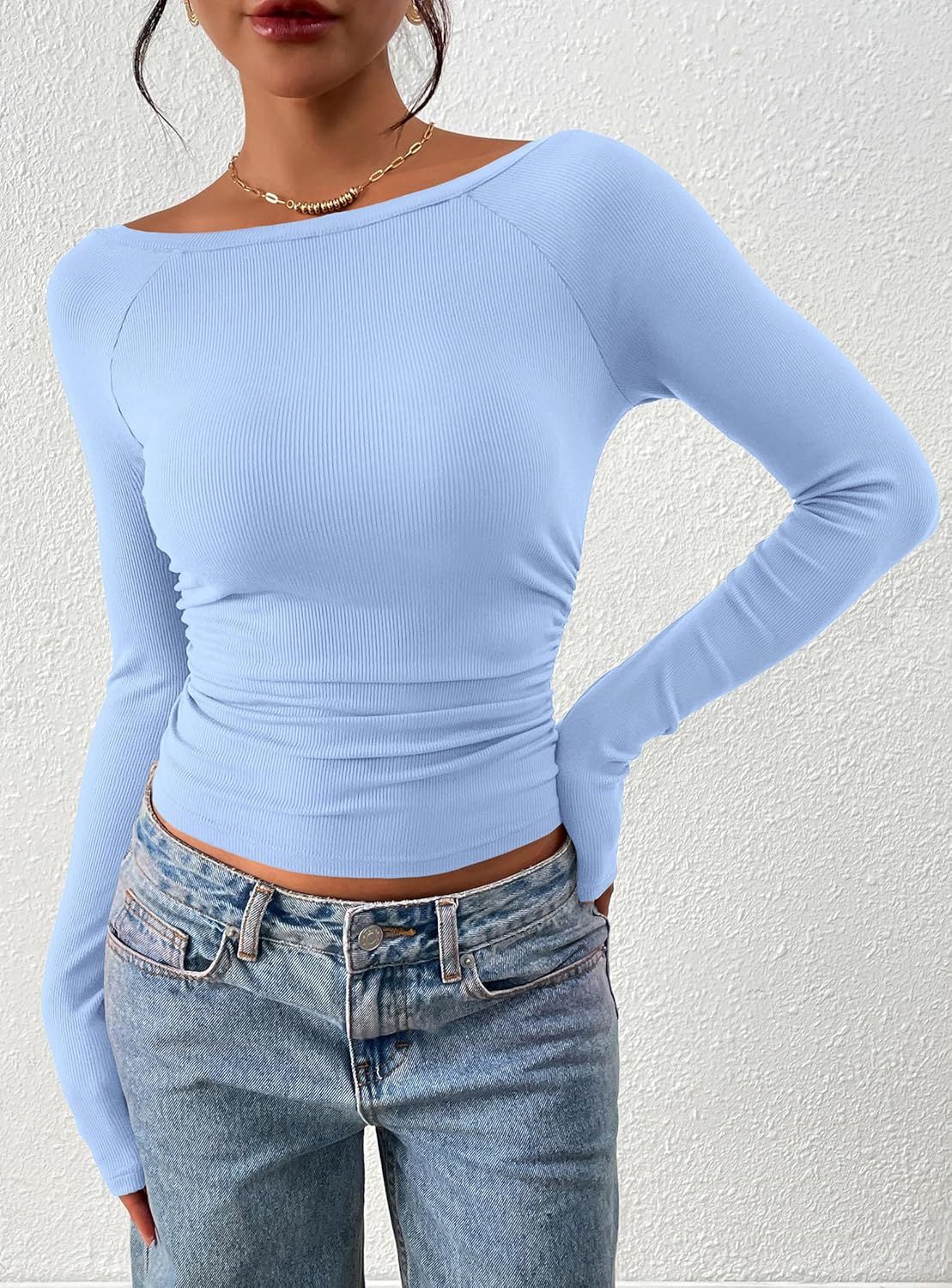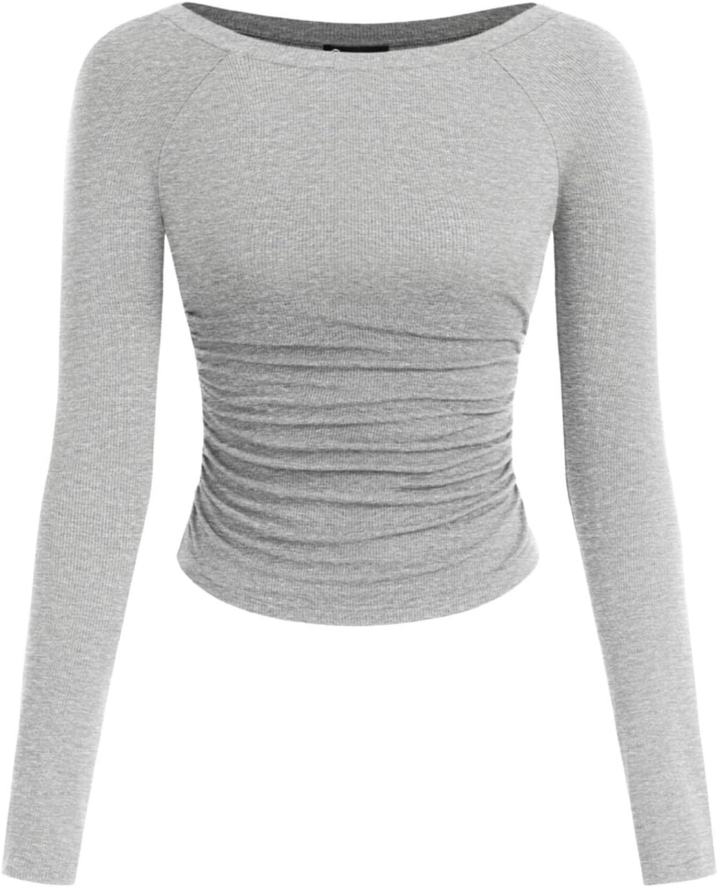 PRETTYGARDEN Fitted Long Sleeve Shirt Women Ruched Tops 2025 Fall Tees