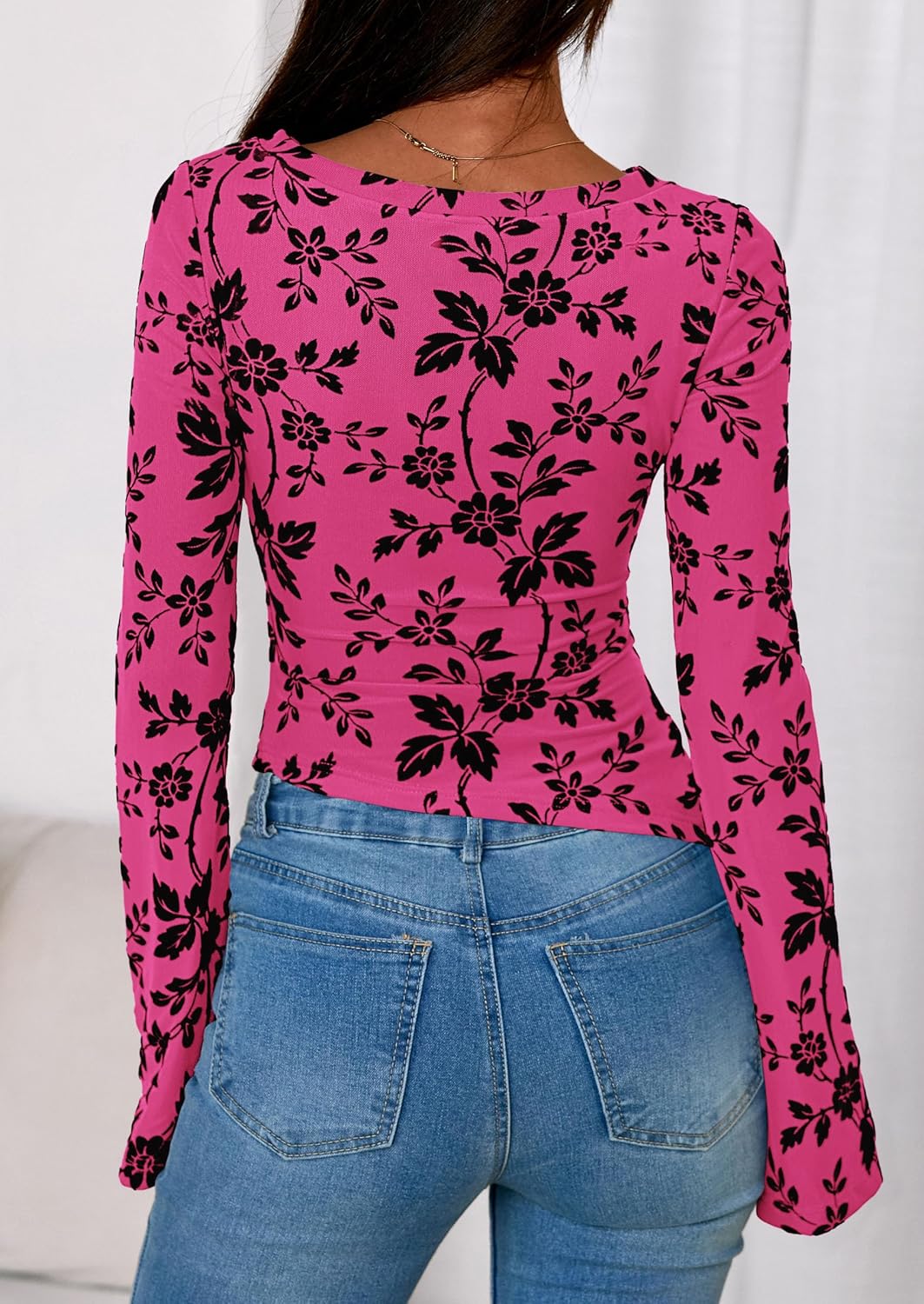 PRETTYGARDEN Womens Fall Fashion Floral Print Blouse Trendy Going Out Tops