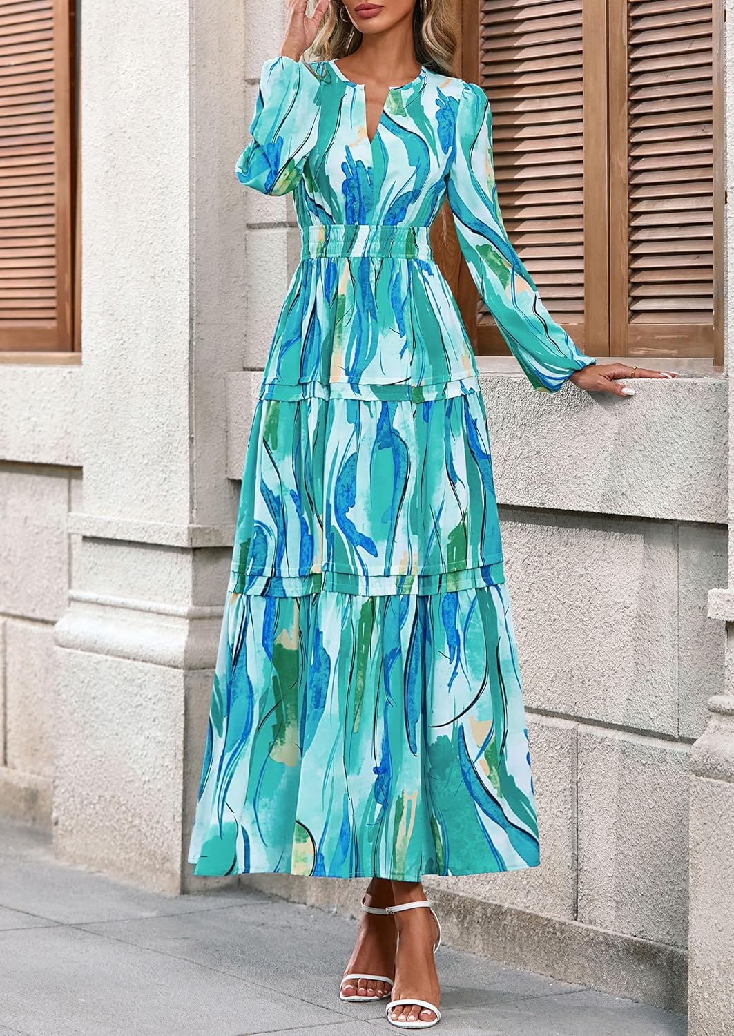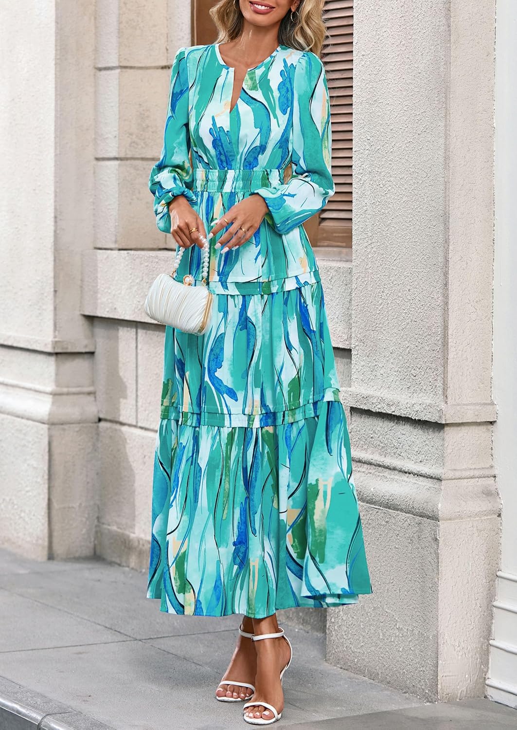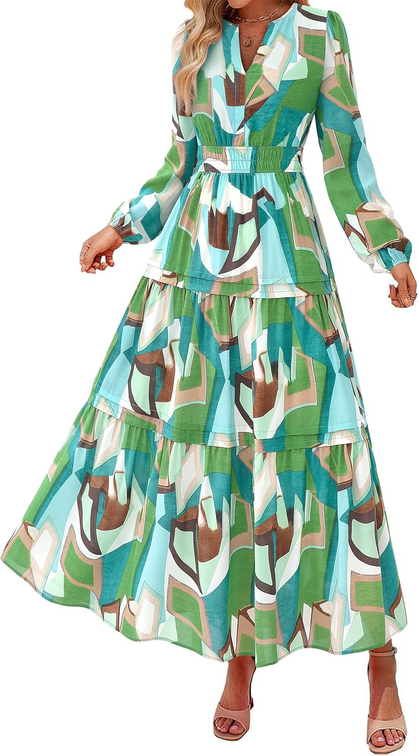 PRETTYGARDEN Printed Flowy Long Dresses for Women Womens Fall Clothes