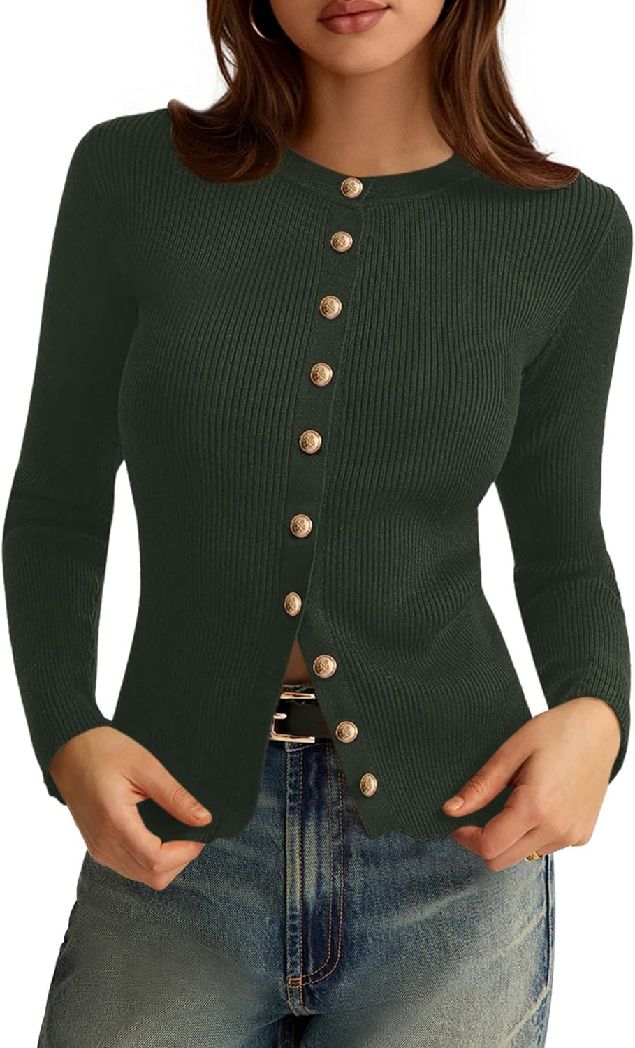 PRETTYGARDEN Womens Cardigan Sweaters Ribbed Knit Long Sleeve Tops