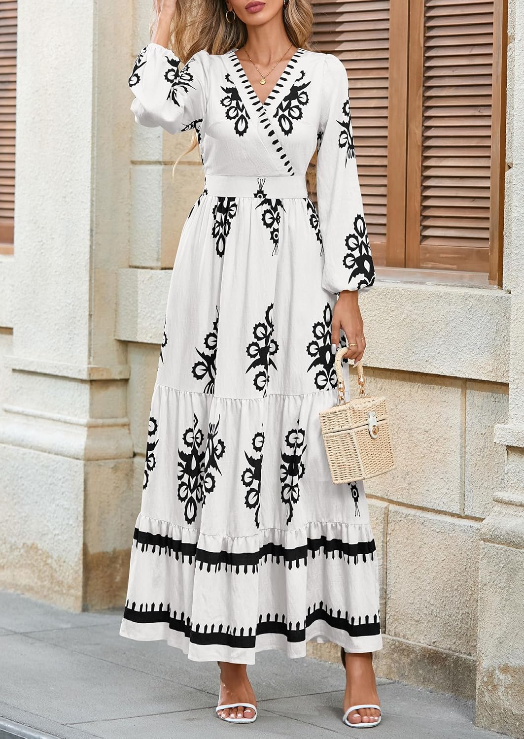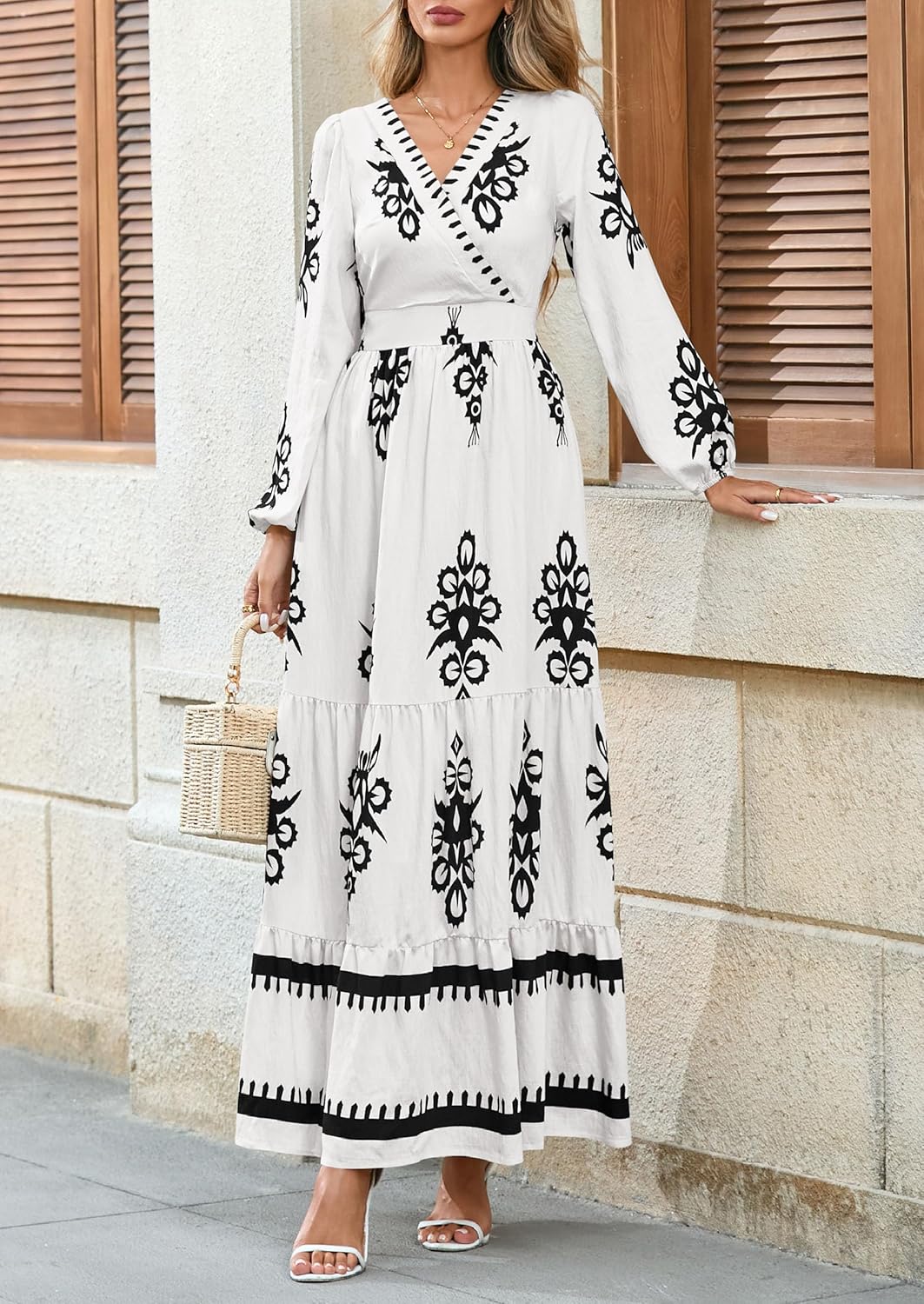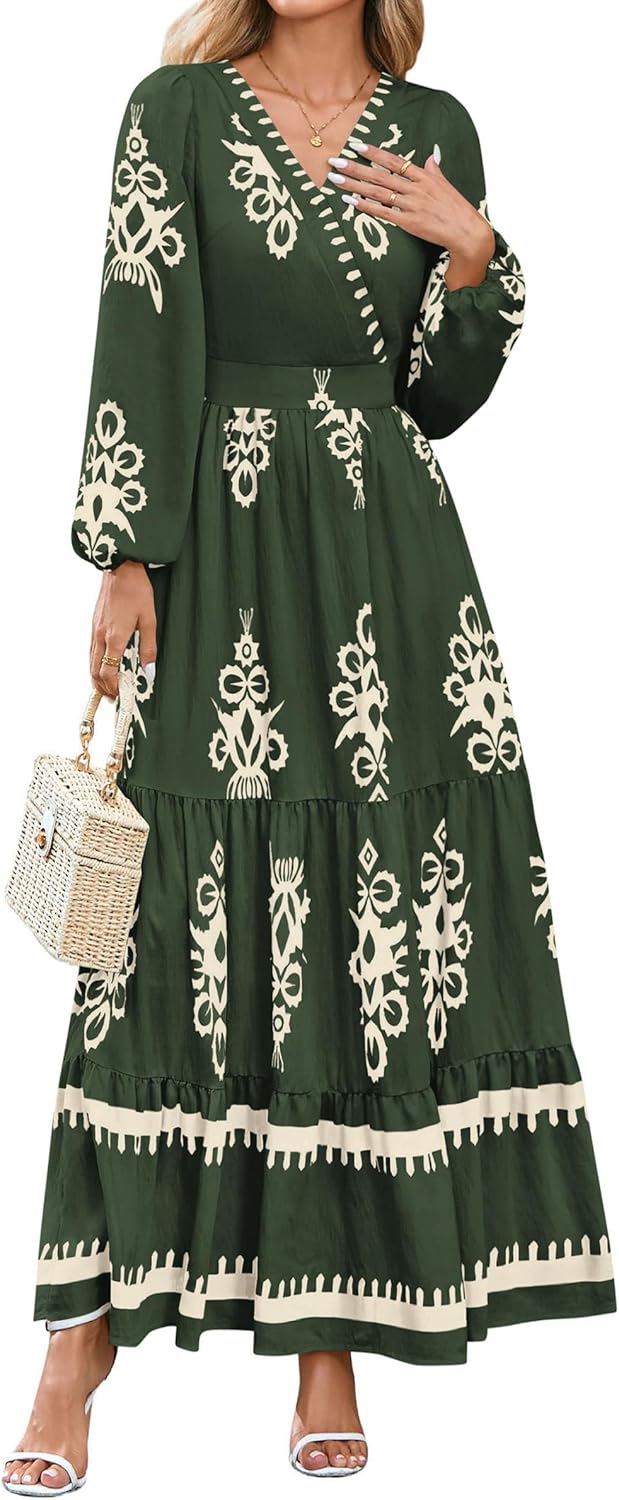 PRETTYGARDEN Elegant Fall Dresses for Women Long Sleeve V Neck Maxi Dress