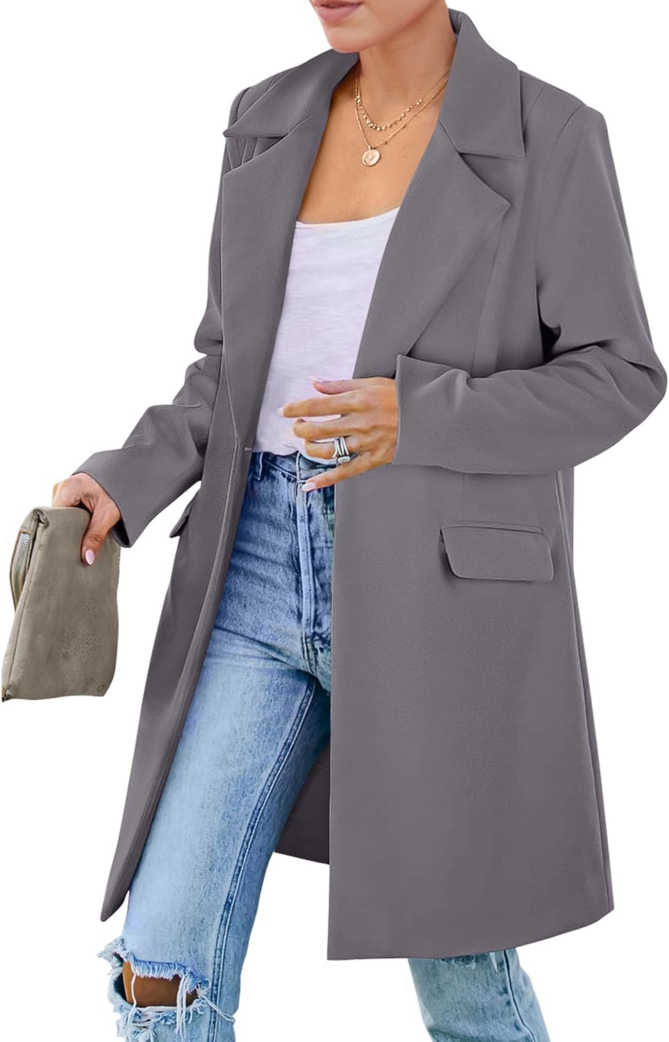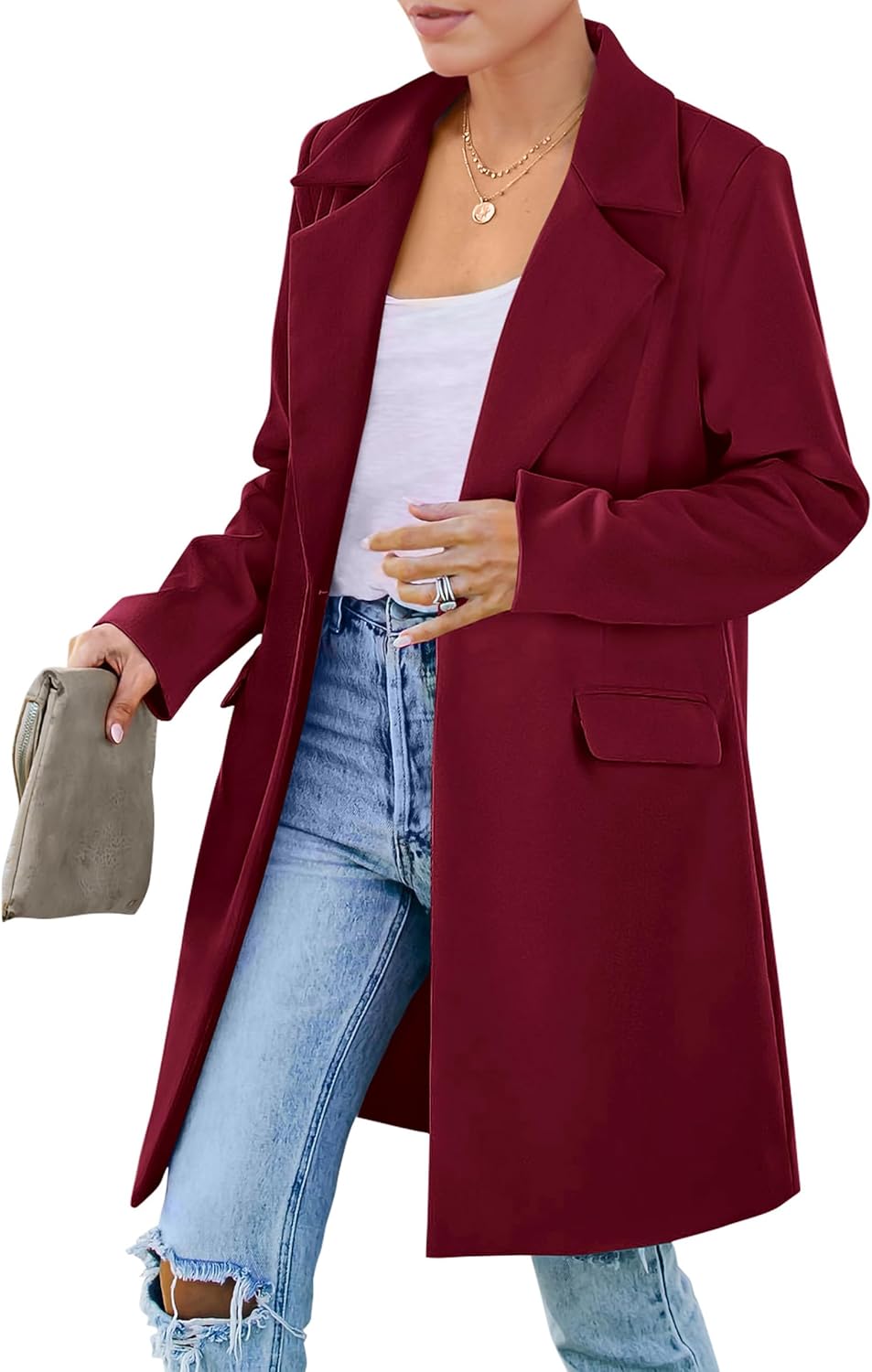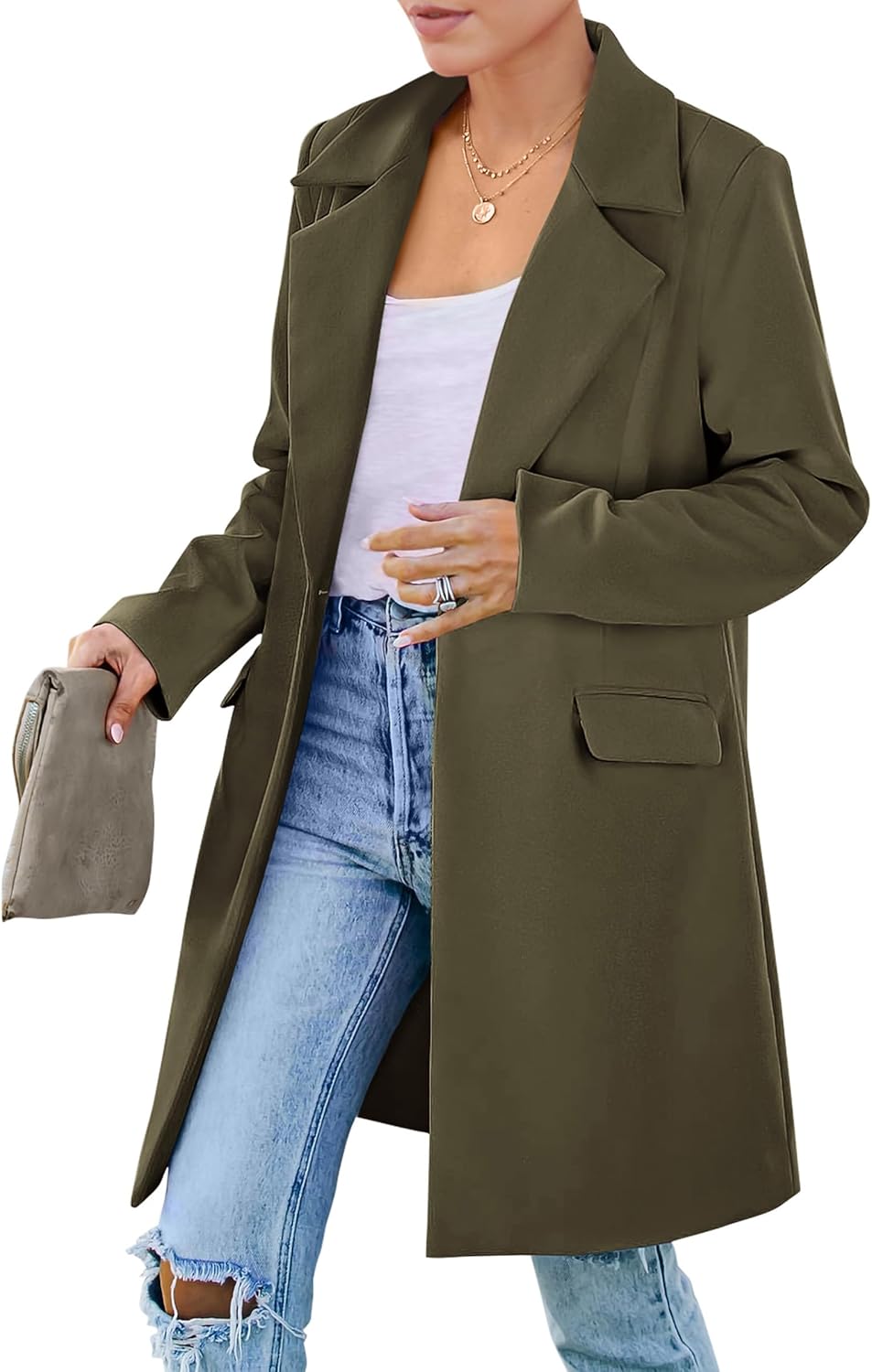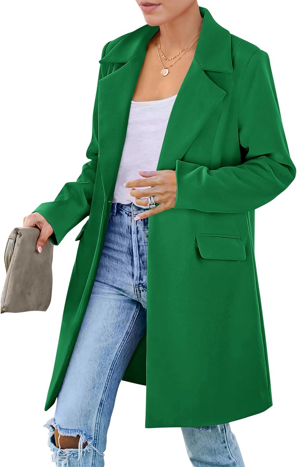 PRETTYGARDEN Womens Long Blazers Fashion Casual Open Front Womens Fall Jackets