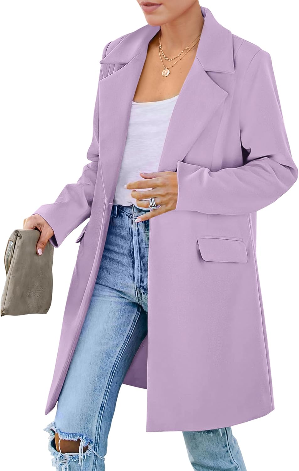 PRETTYGARDEN Lightweight Long Winter Coats Womens Blazers For Work Professional