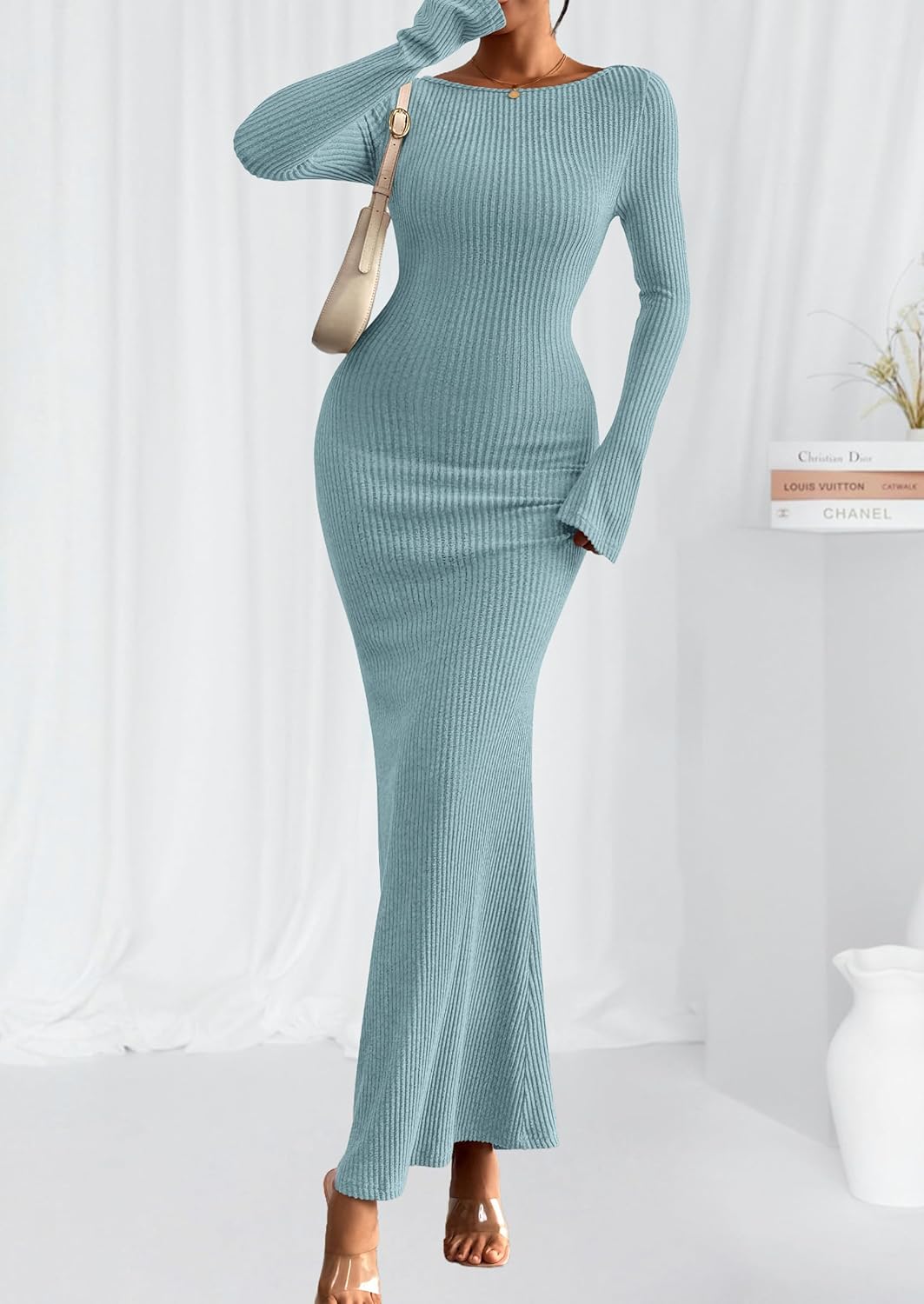 Casual Bell Sleeve Slimming Fitted Maxi Dresses