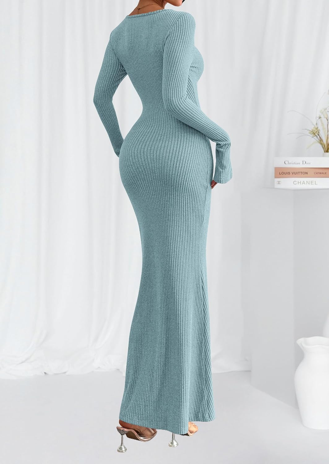 PRETTYGARDEN Casual Bell Sleeve Slimming Fitted Maxi Dresses for Women