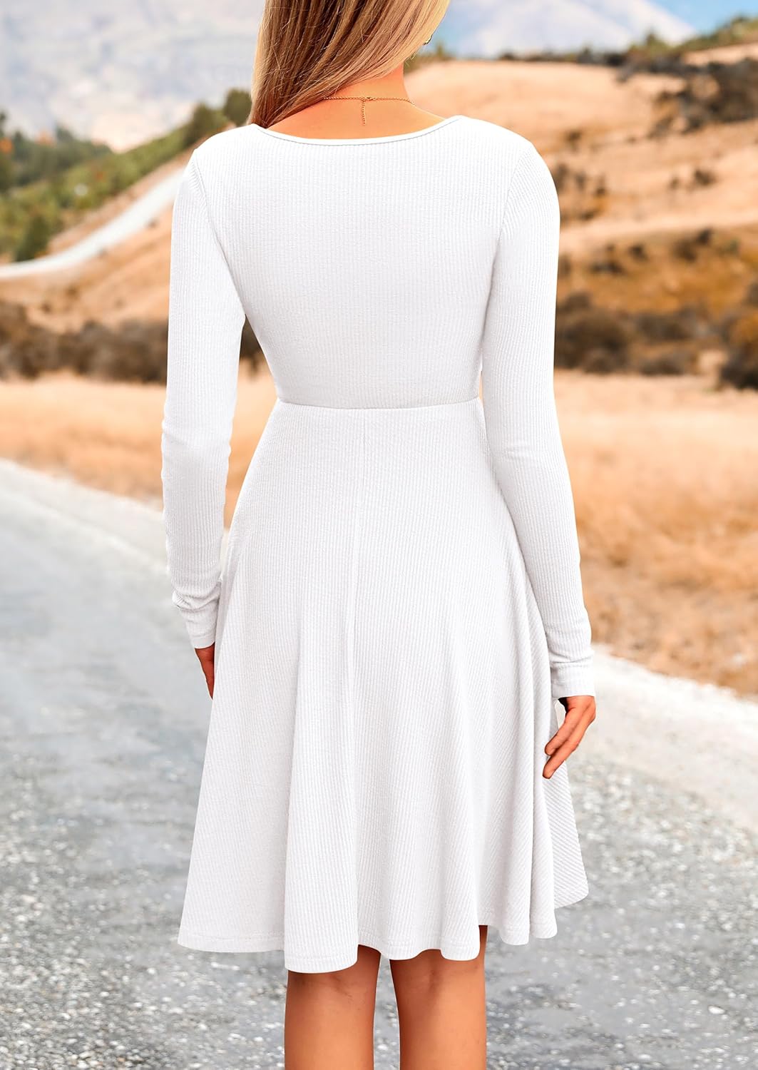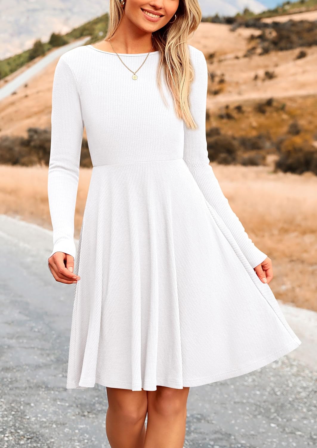 PRETTYGARDEN Fall Dresses for Women Casual Long Sleeve Ribbed Knit Dress