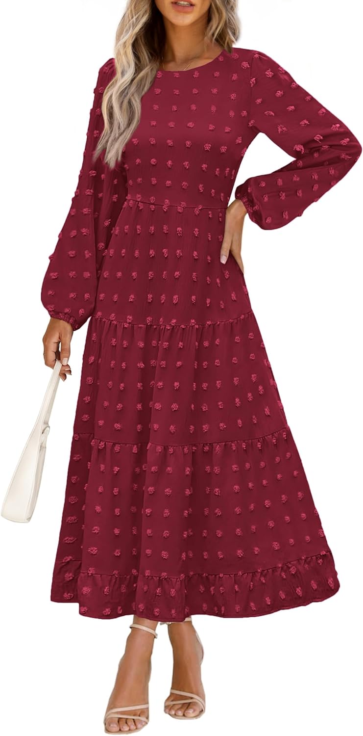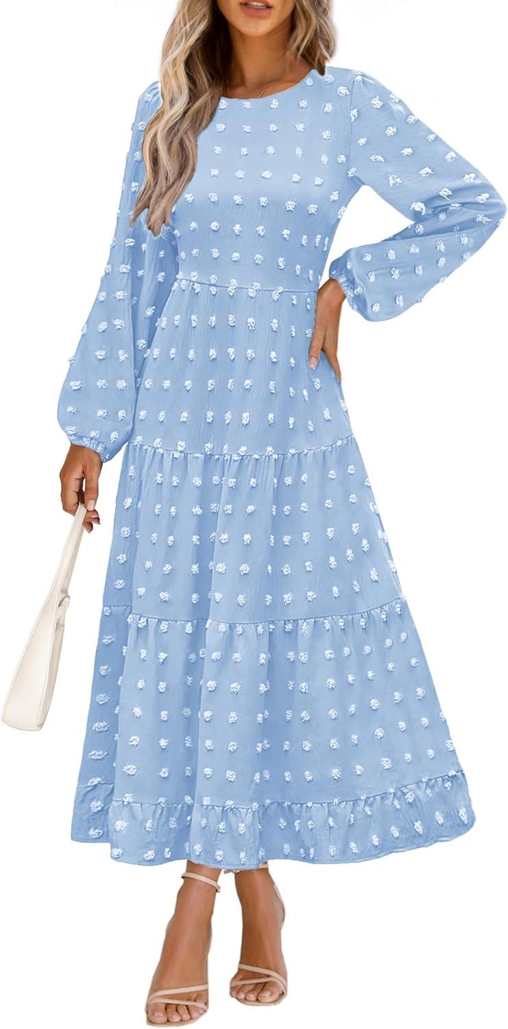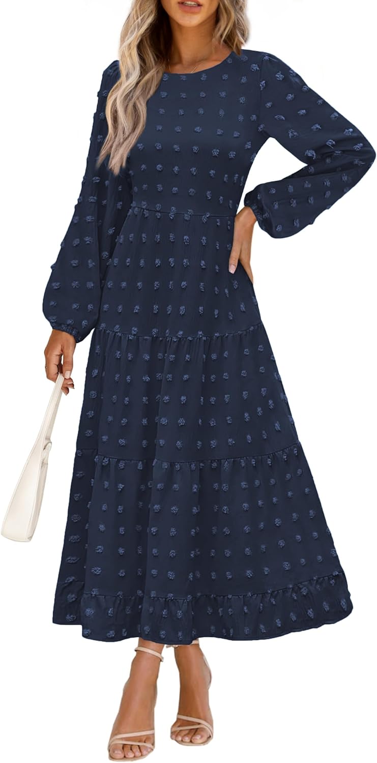 PRETTYGARDEN Long Sleeve Maxi Dresses for Women Fashion Swiss Dot Dress